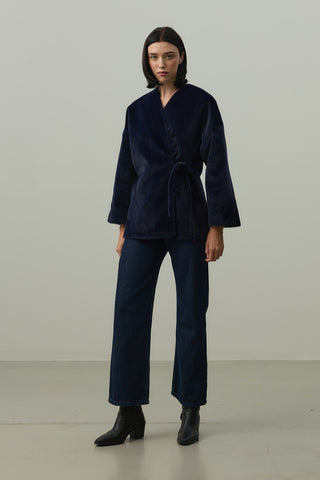 Fularlı Dokulu Kaşe Ceket Yağ Yeşili