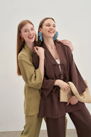 Model Ölçüleri Boy: 1; 74 cm, Beden: 36; 1(36/38) Beden:Üst Uzunluk:76cm, Kol Uzunluğu: 42cm, Göğüs:59cm, İki Omuz Arası Mesafe:57cm Alt Uzunluk:106cm, Bel:34cm, Basen:54cm 2(40/42) Beden:Üst Uzunluk:76cm, Kol Uzunluğu: 42cm, Göğüs:59cm, İki Omuz Arası Mesafe:60cm Alt Uzunluk: 110cm, Bel:34cm, Basen:55cm;
