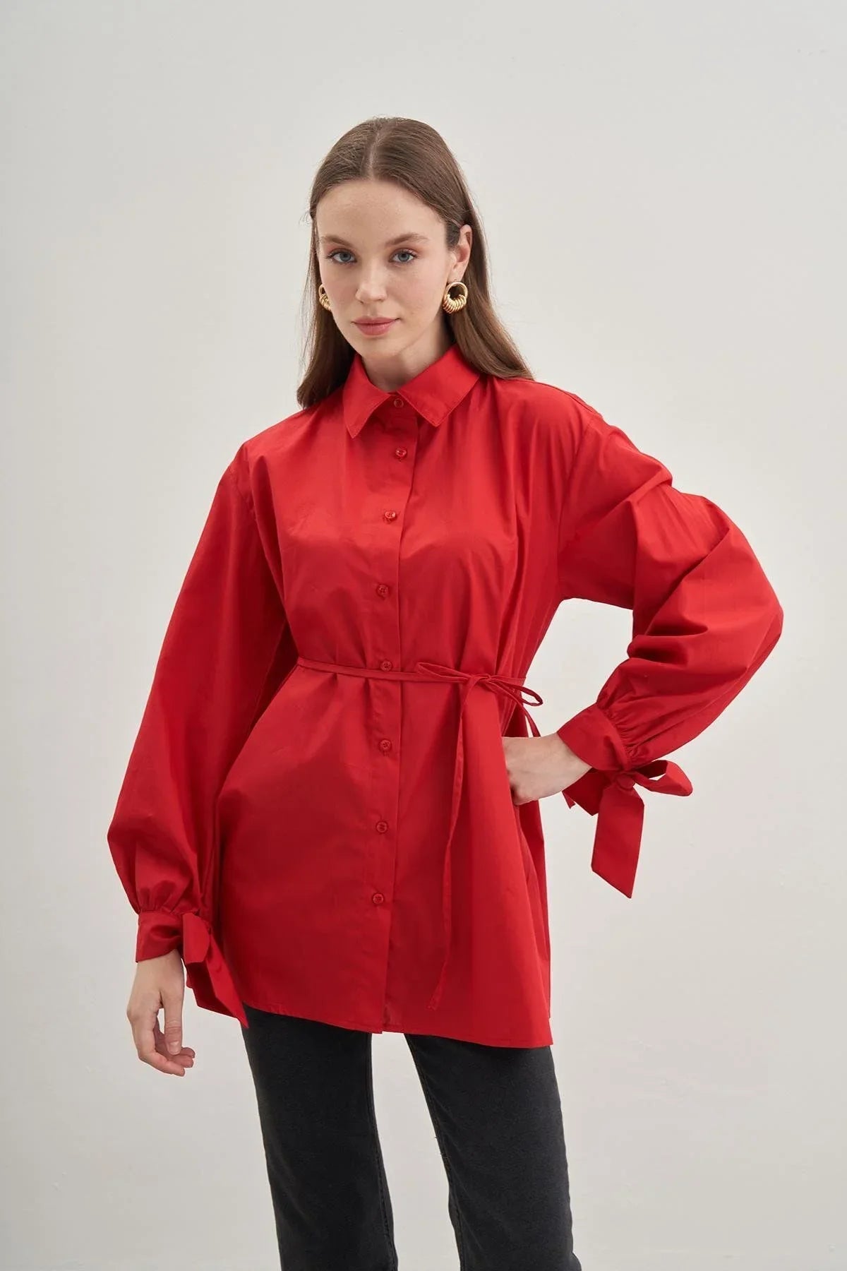 Bağlamalı Gömlek Kırmızı