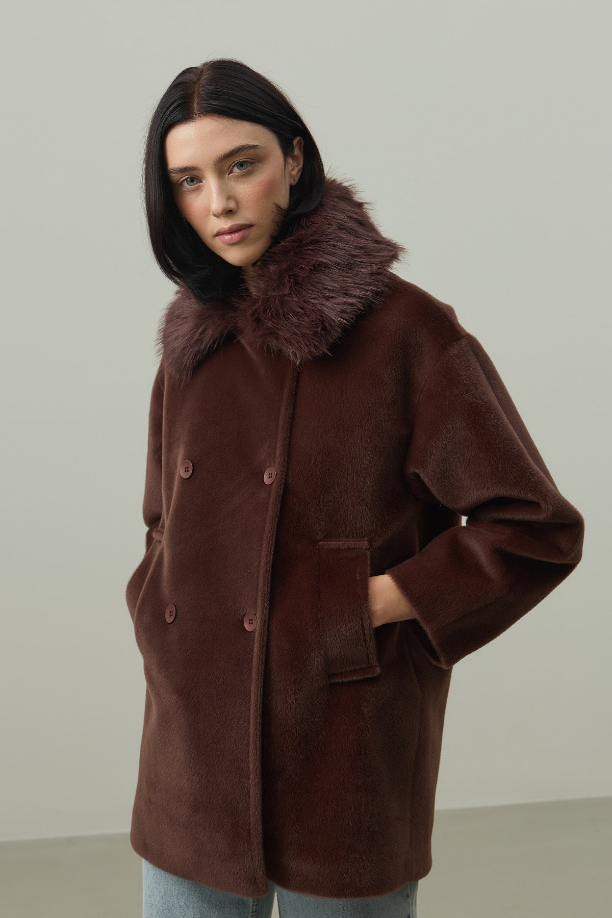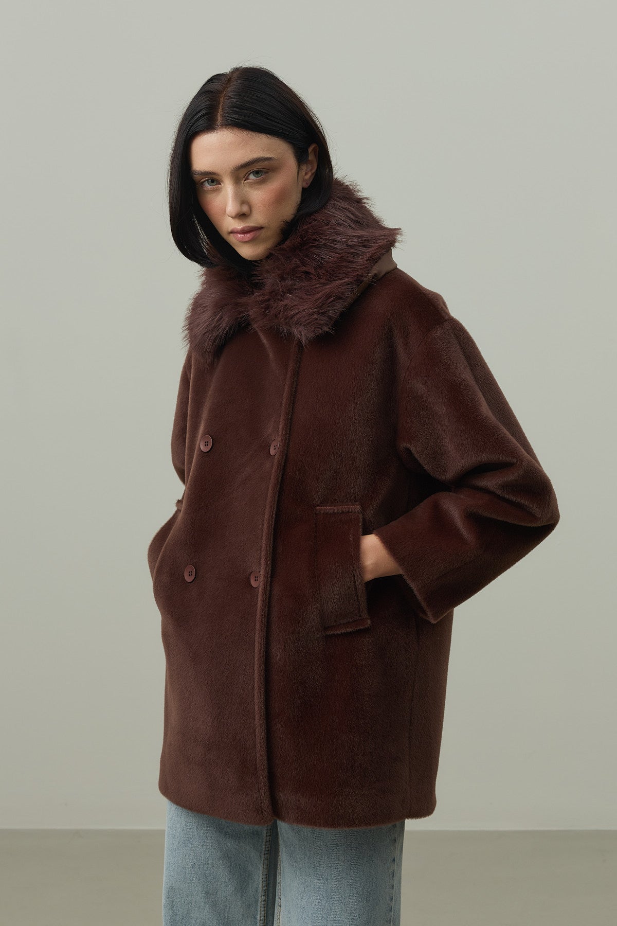 Çıkarılabilir Kürklü Bomb Kaban Kahverengi