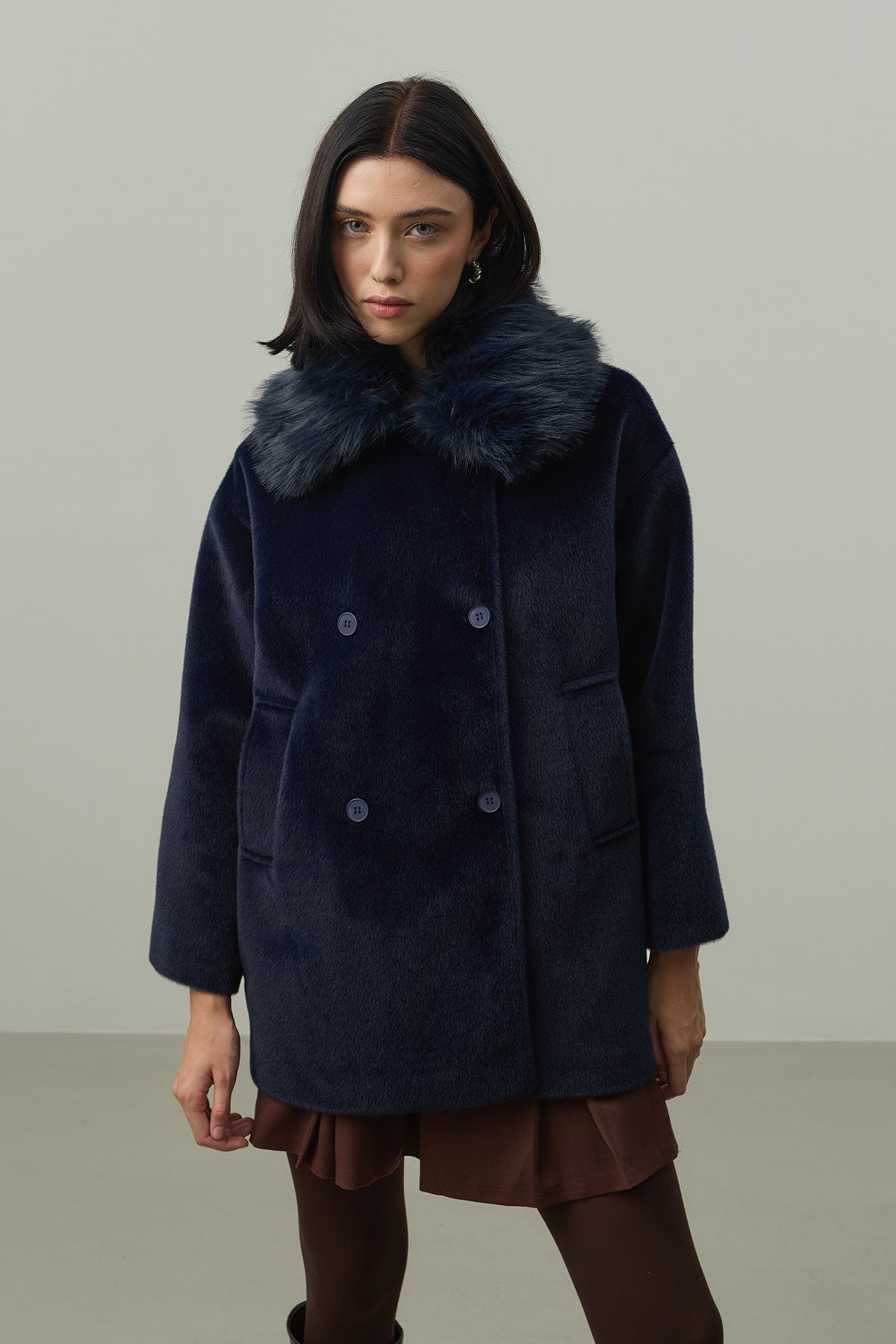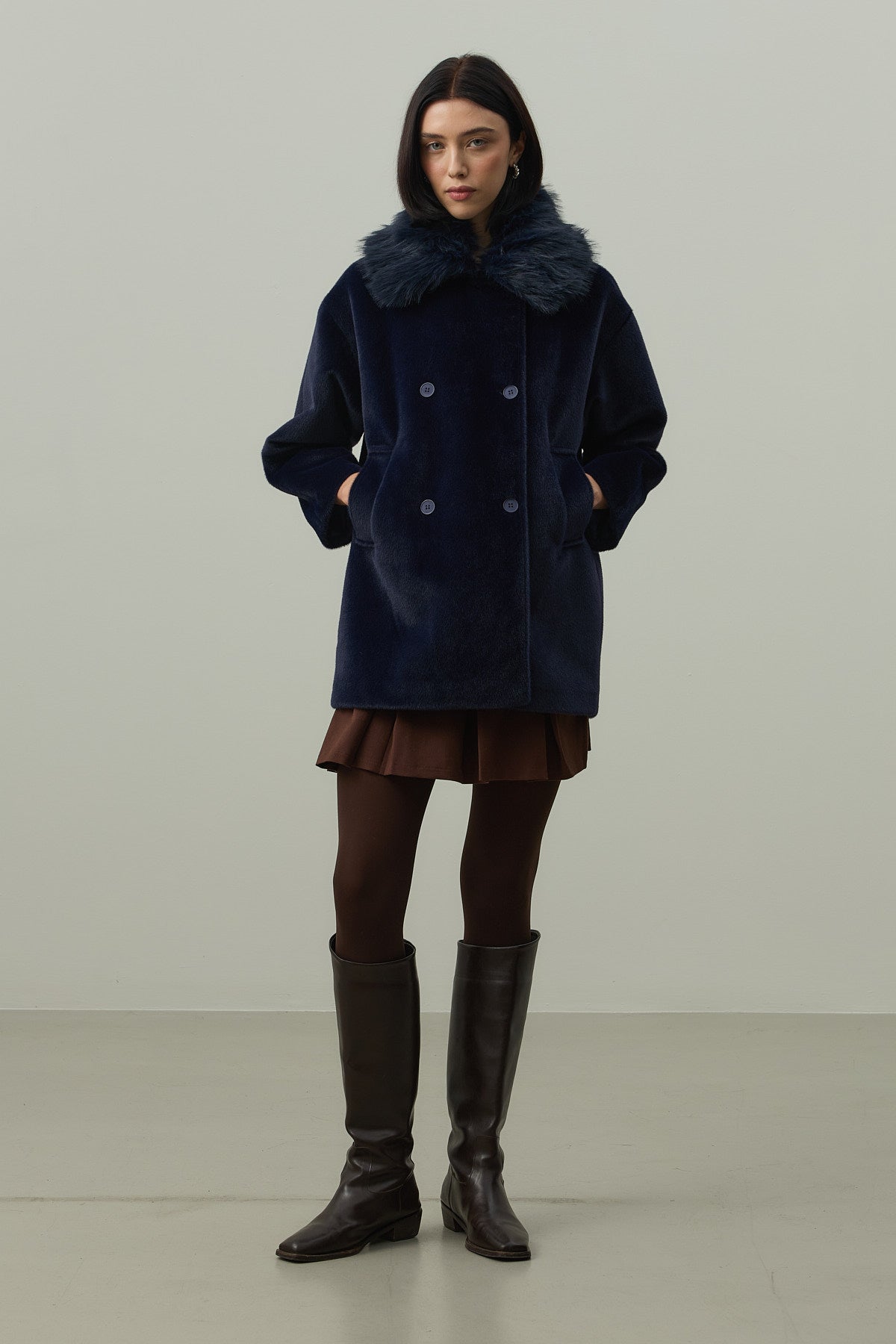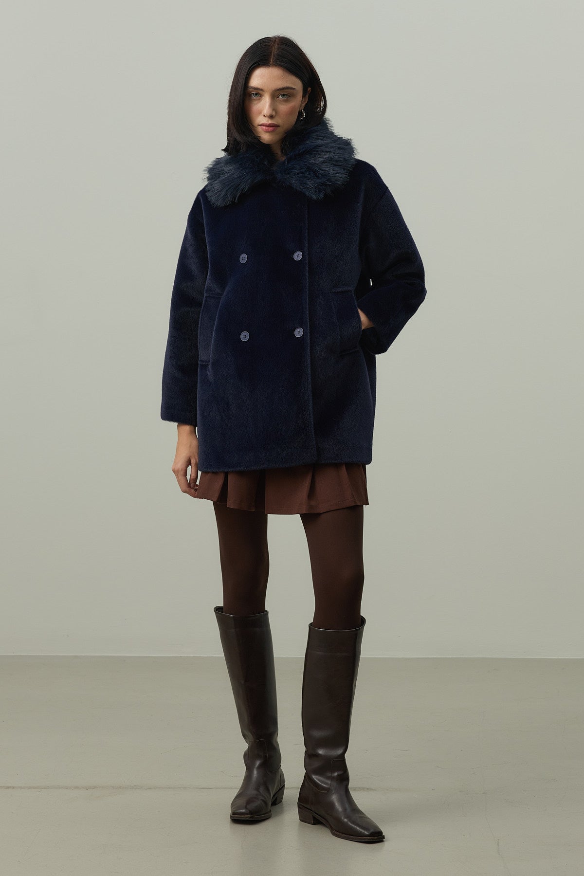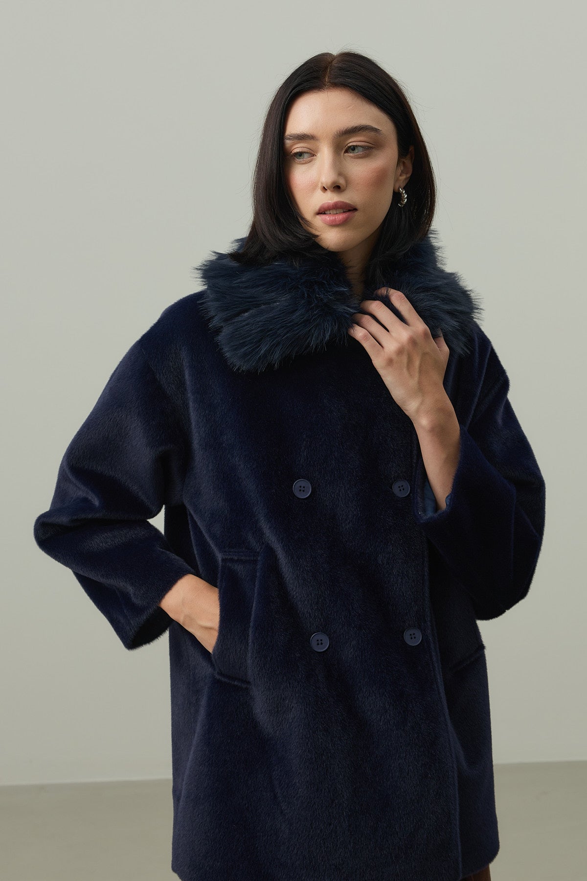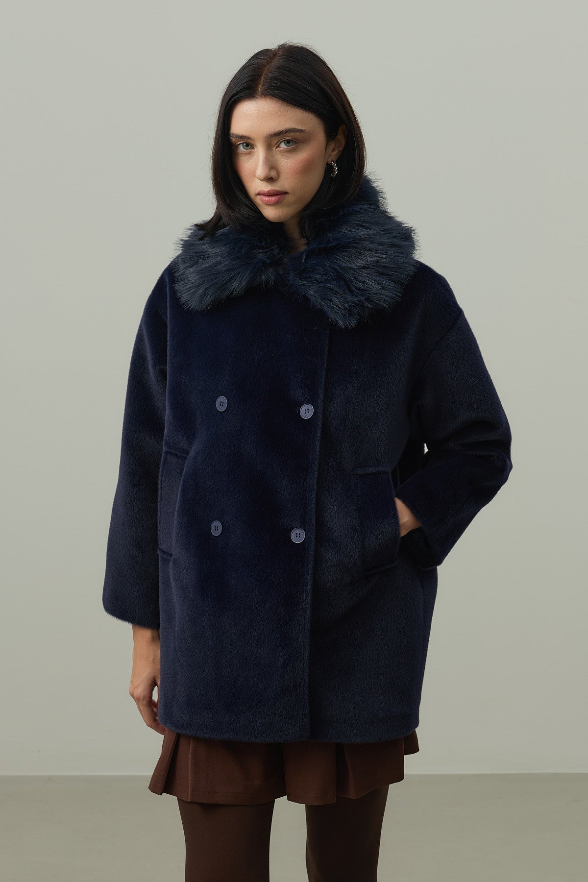 Çıkarılabilir Kürklü Bomb Kaban Lacivert