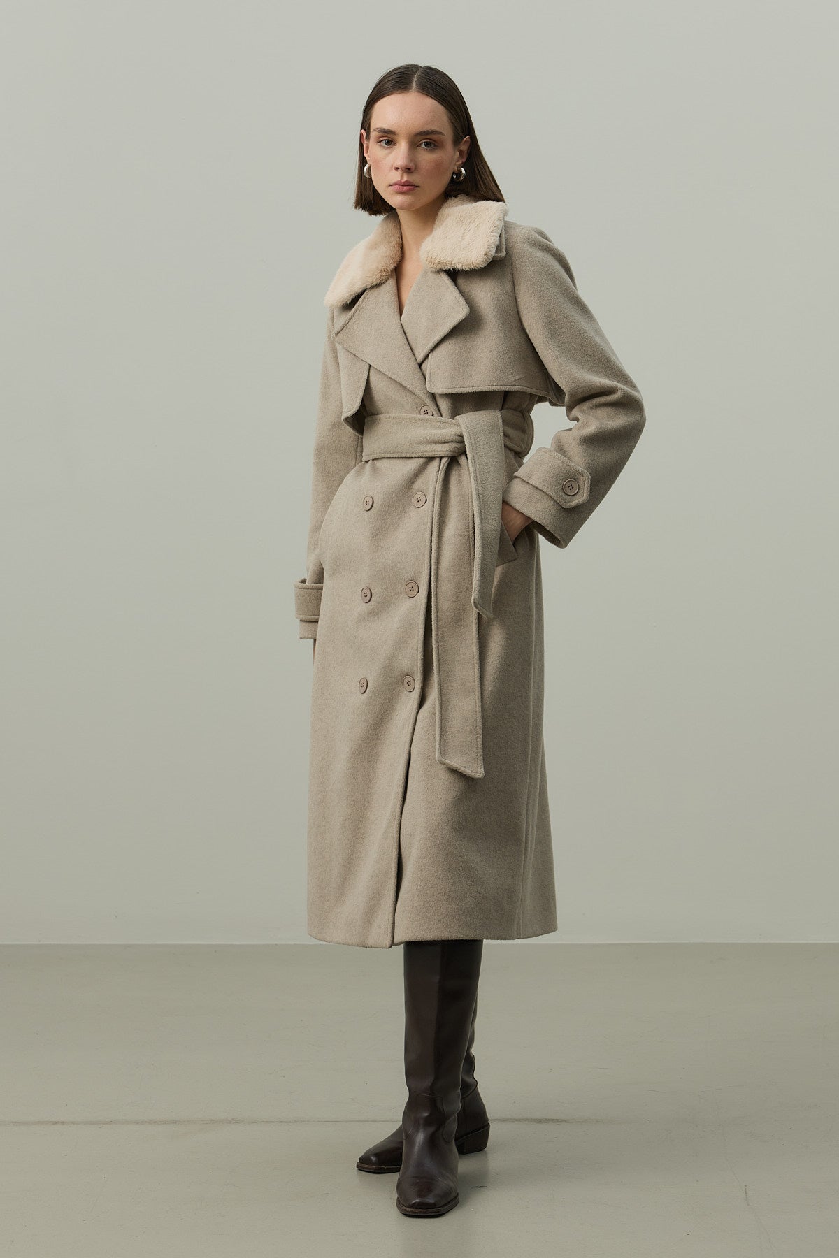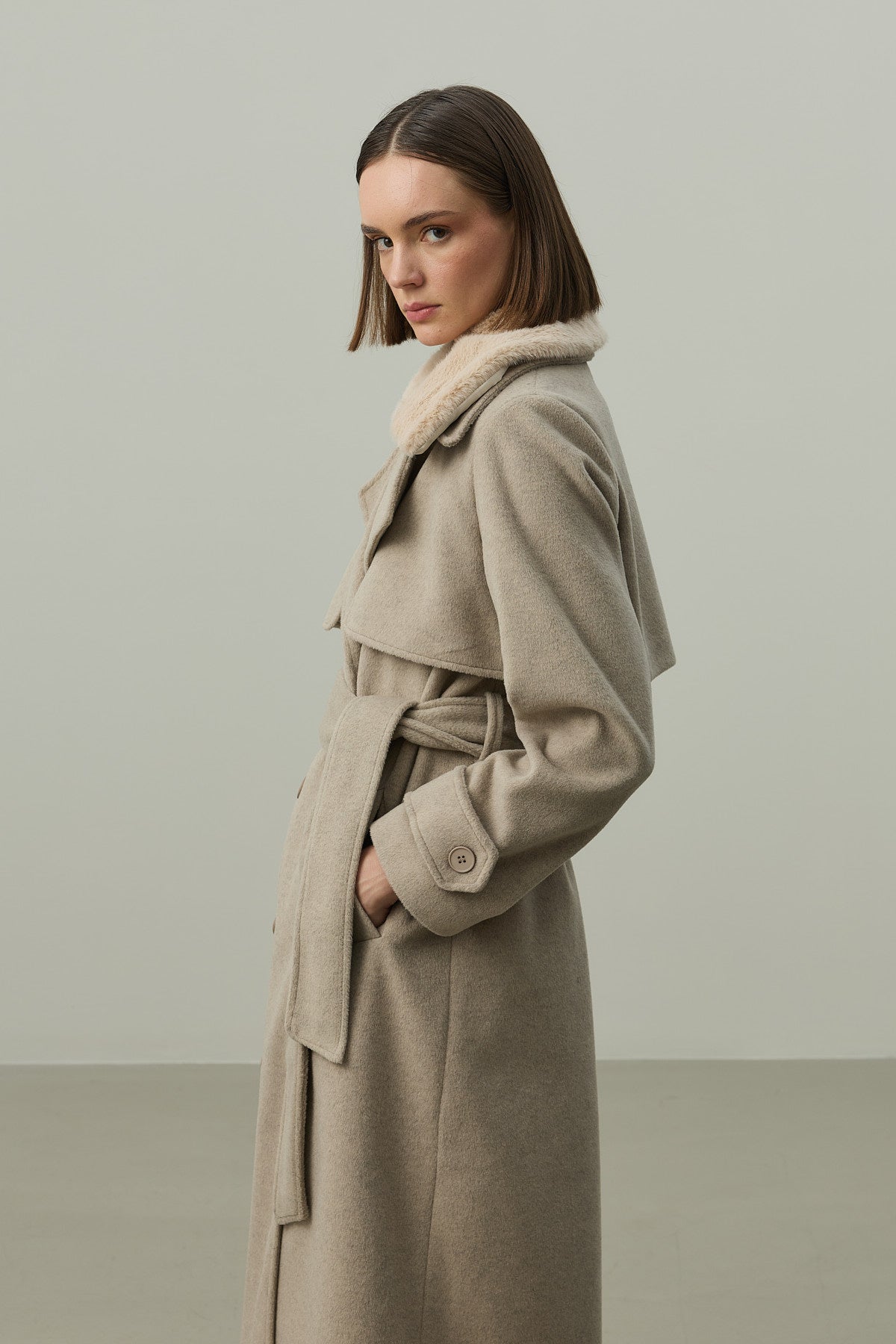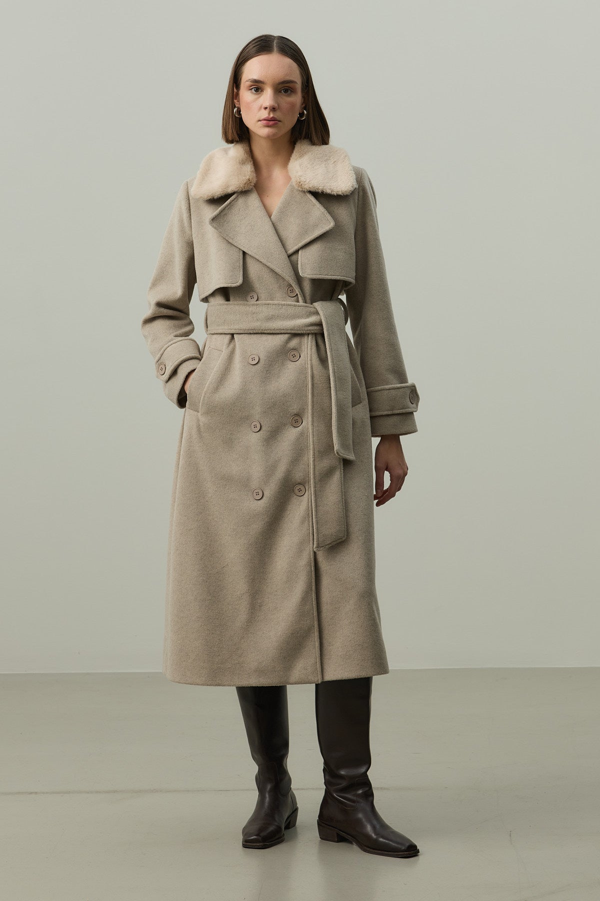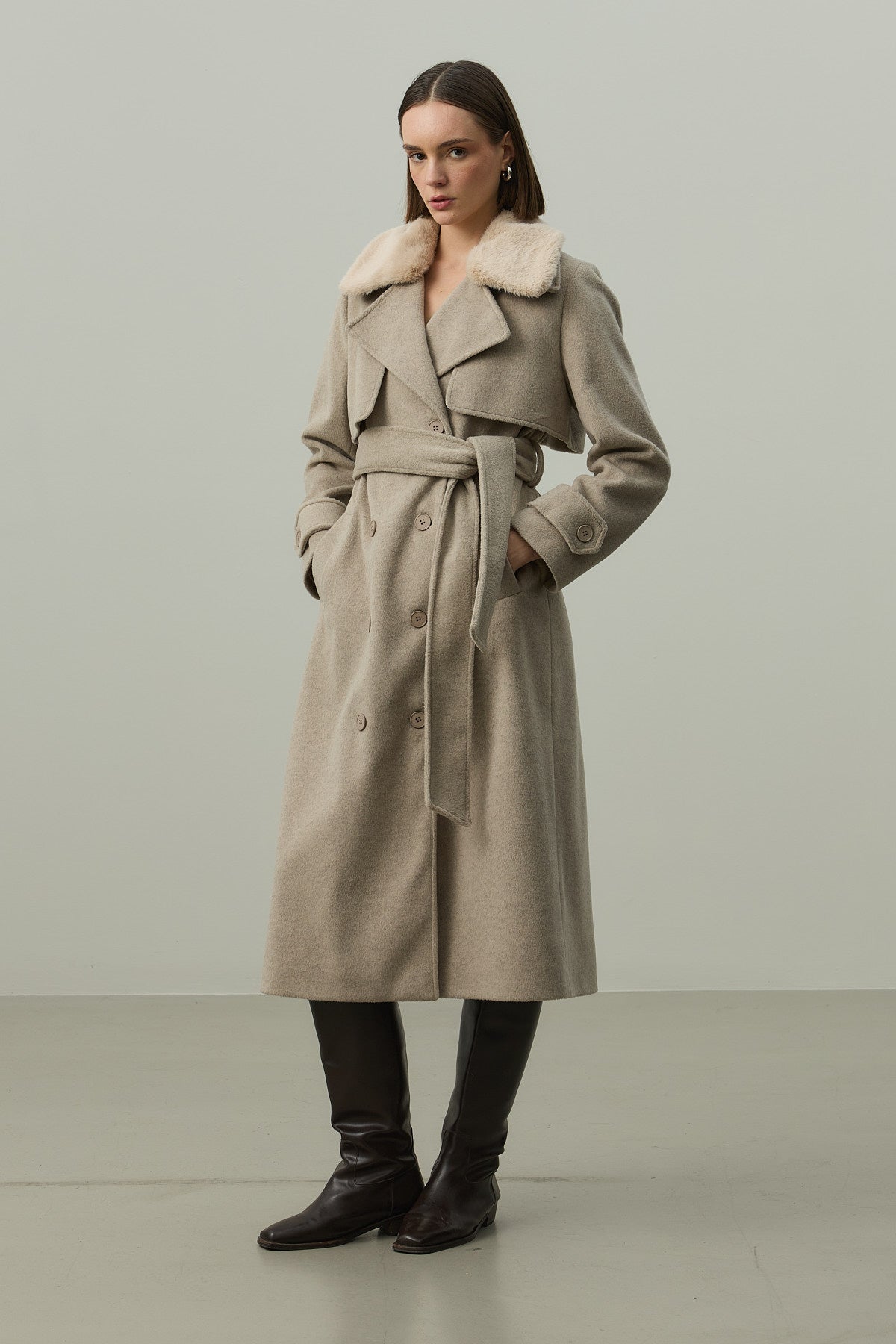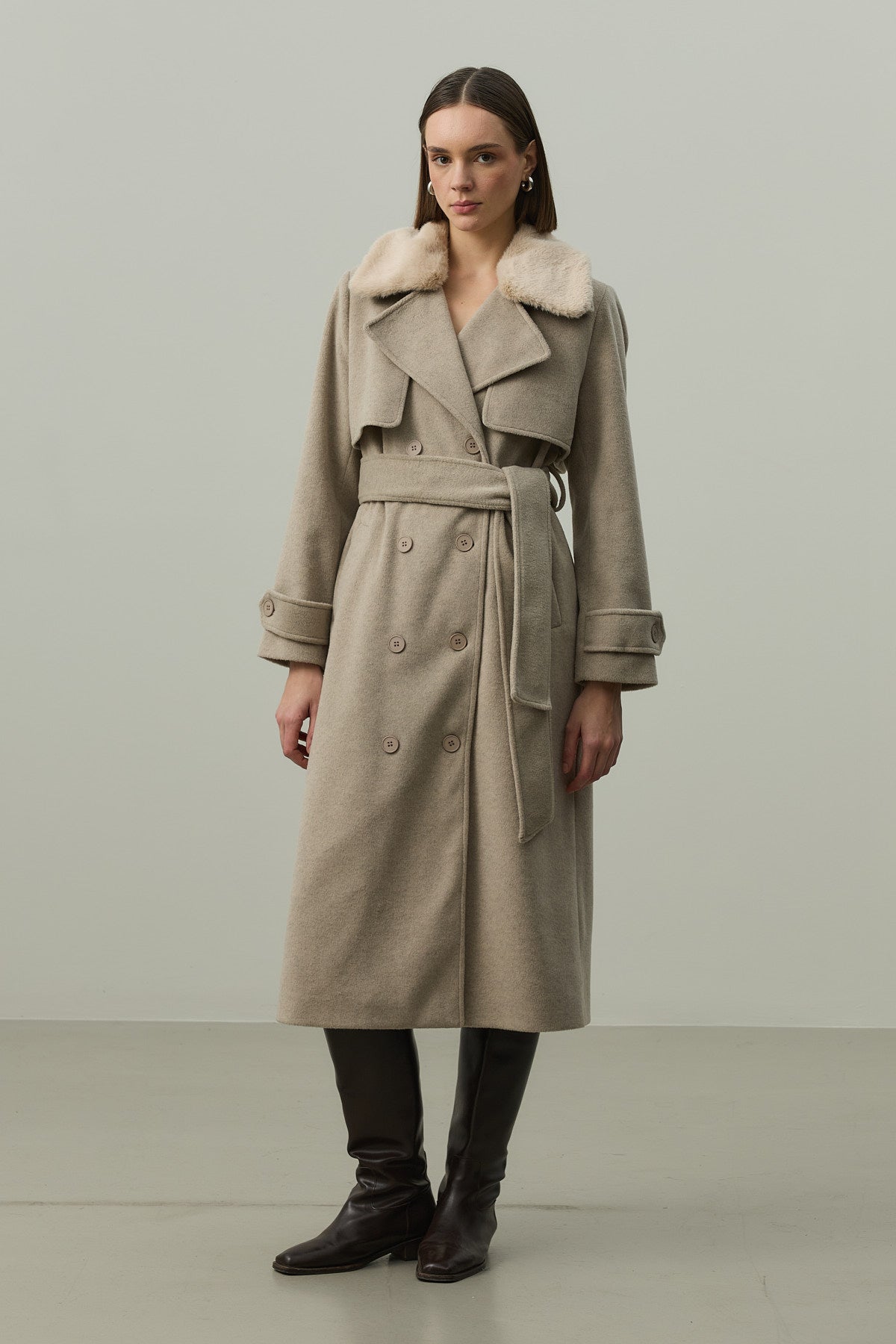 Çıkarılabilir Yakalı Maxi Kaban Bej