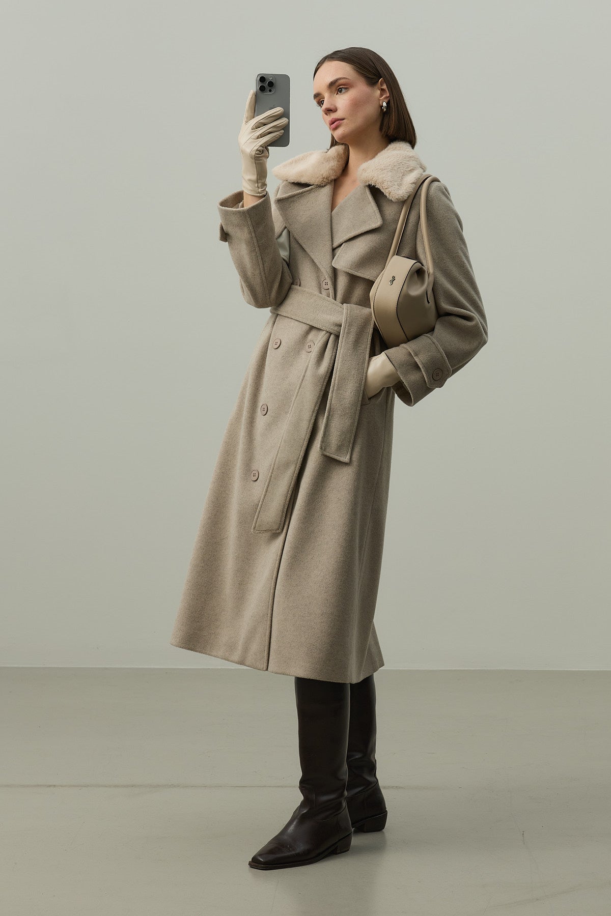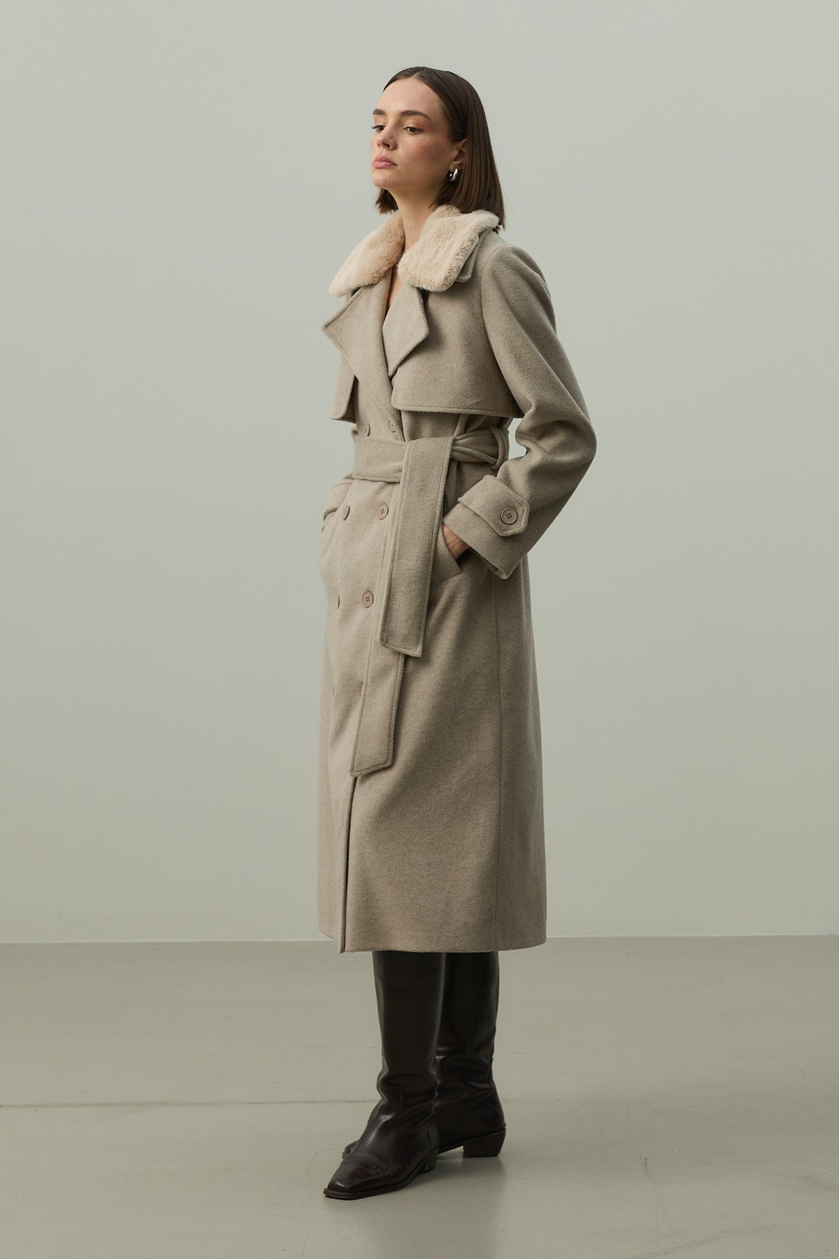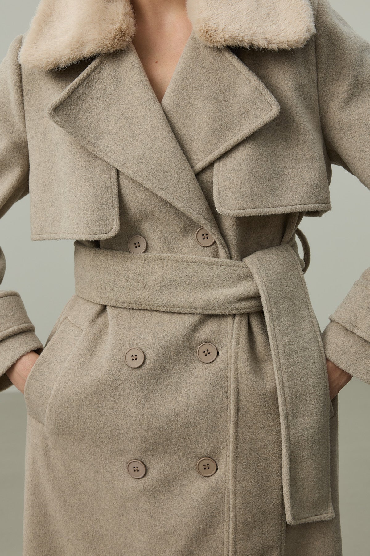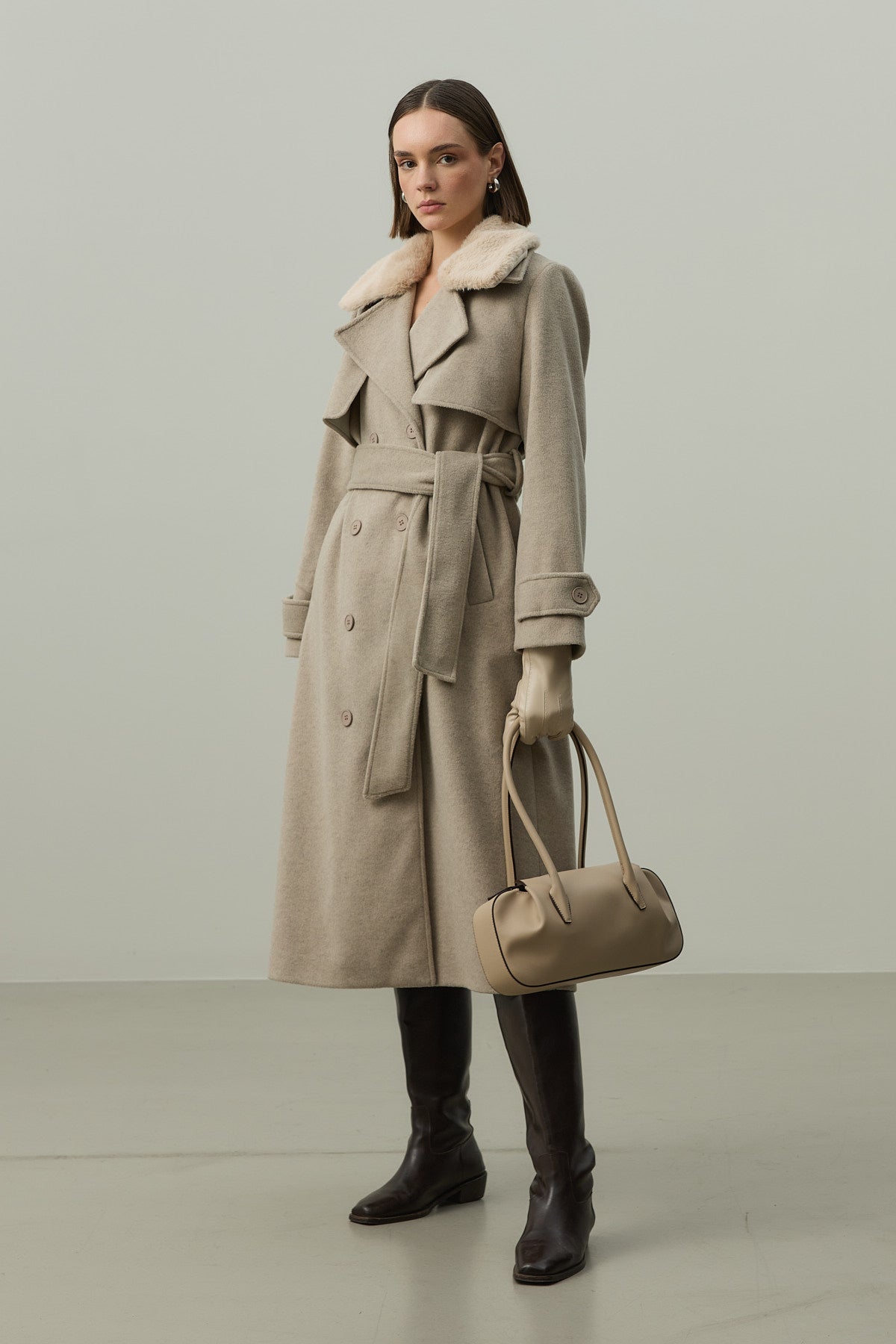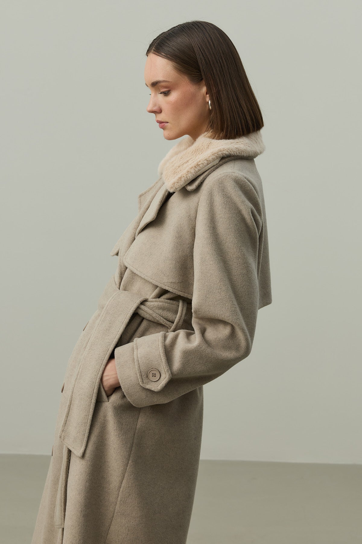 Çıkarılabilir Yakalı Maxi Kaban Bej