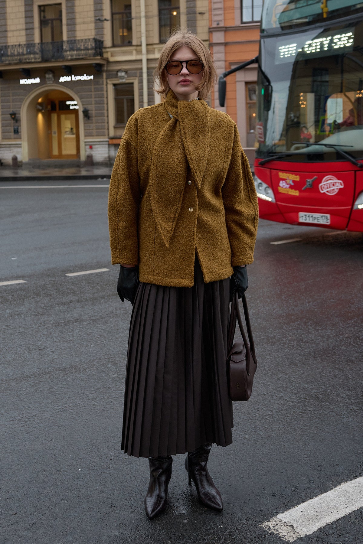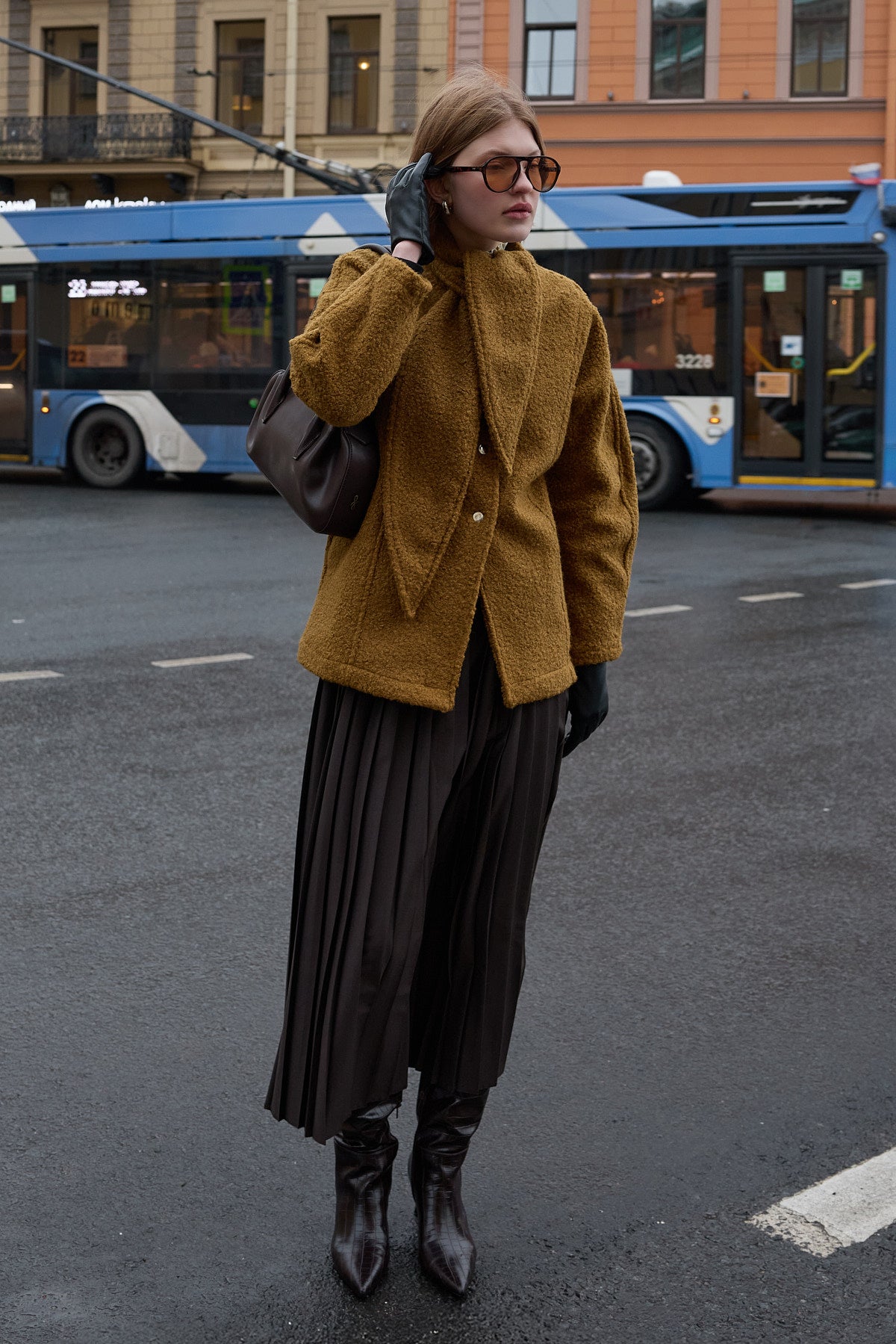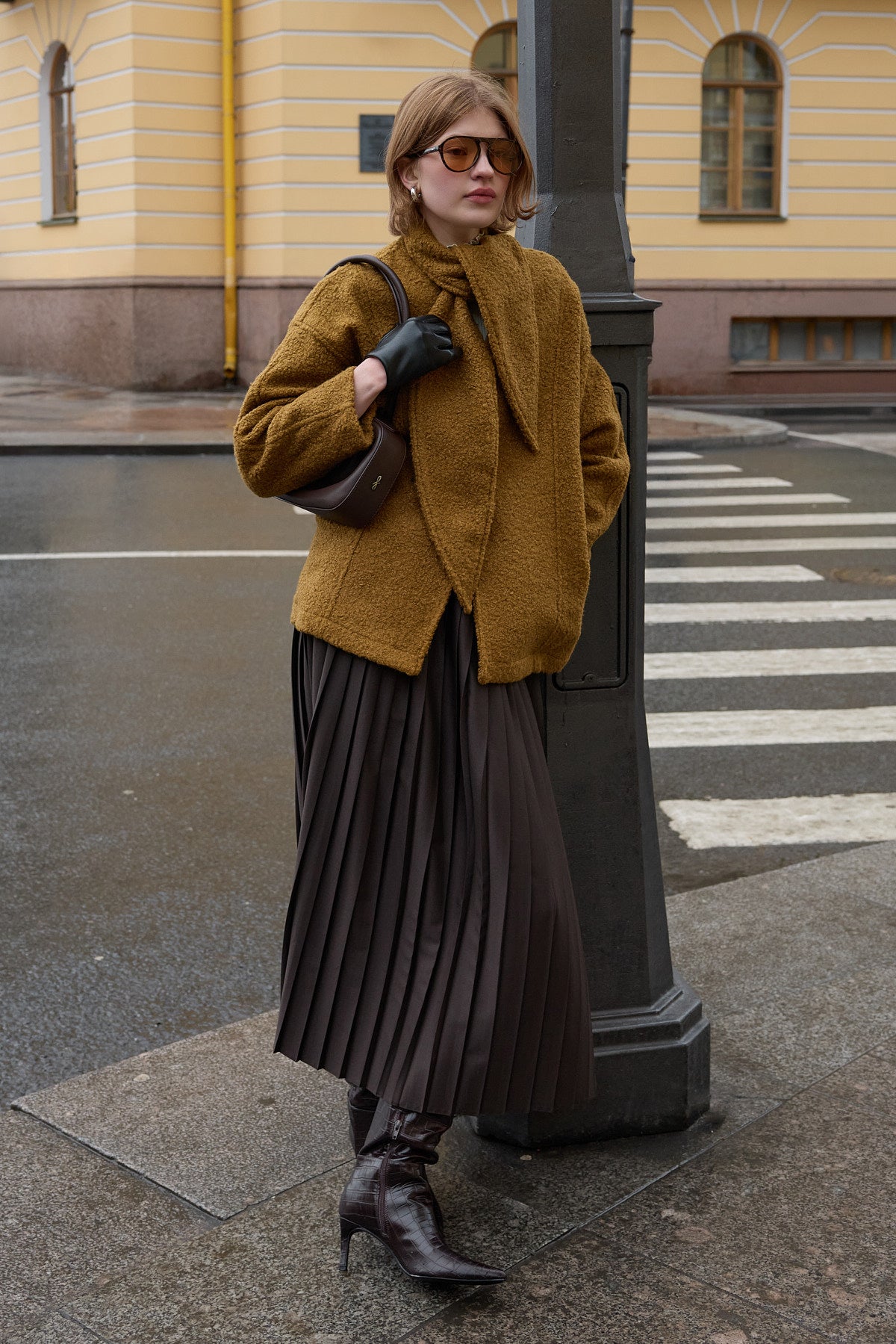 Fularlı Dokulu Kaşe Ceket Yağ Yeşili
