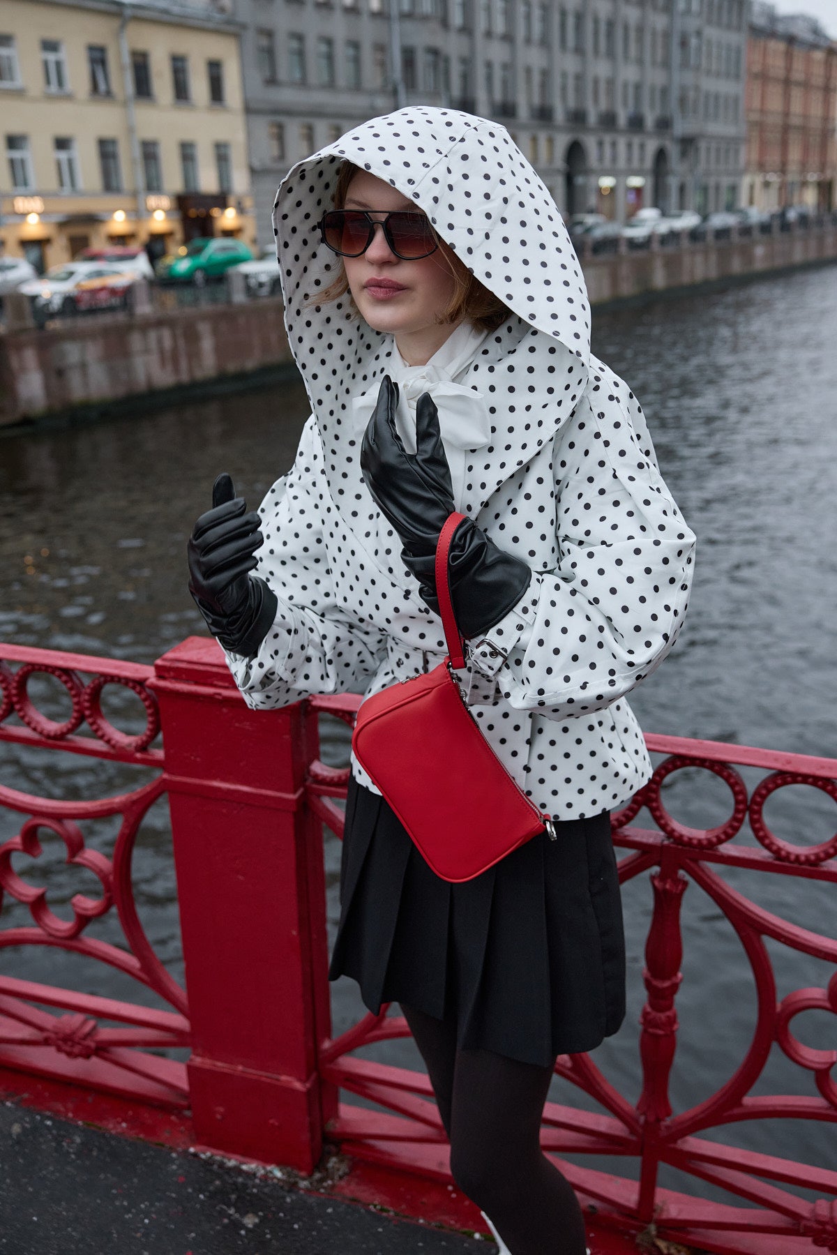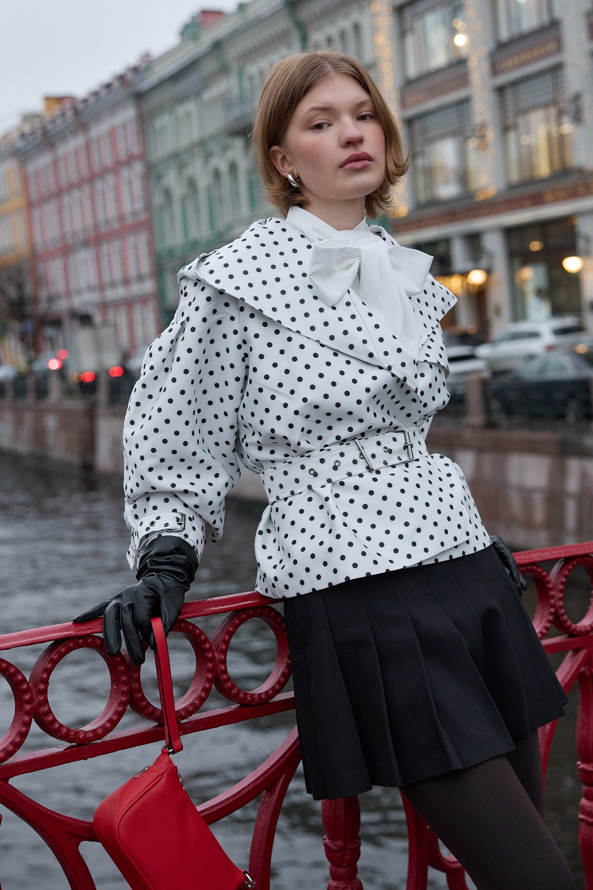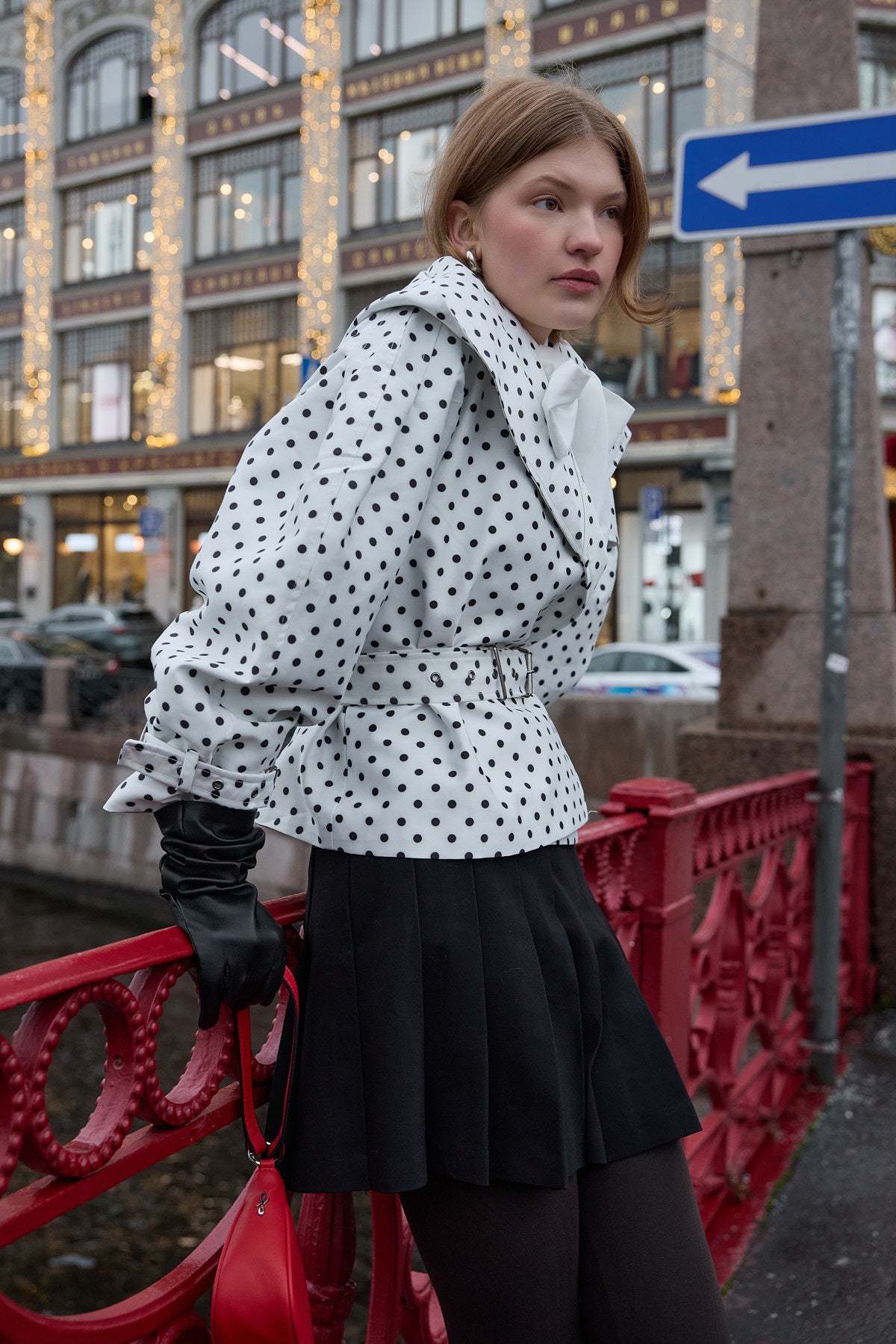 Kapüşonlu Puantiye Trenç Ceket Ekru