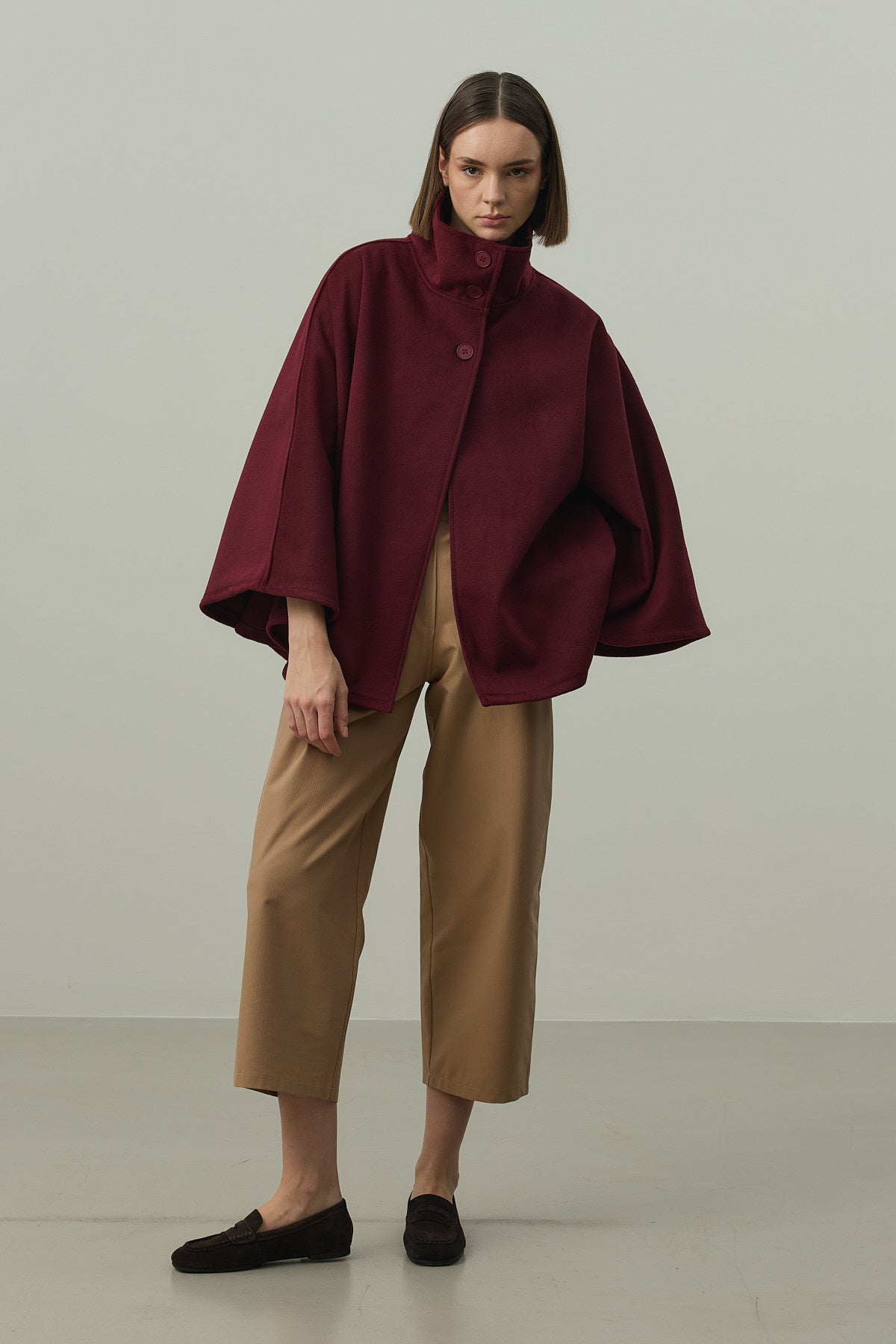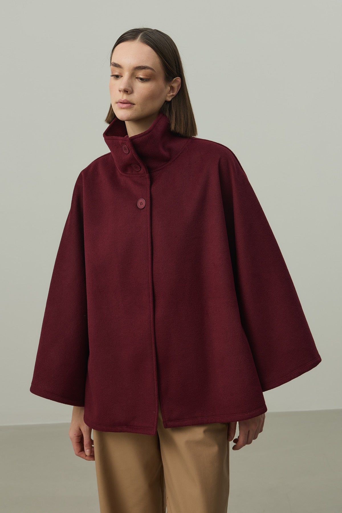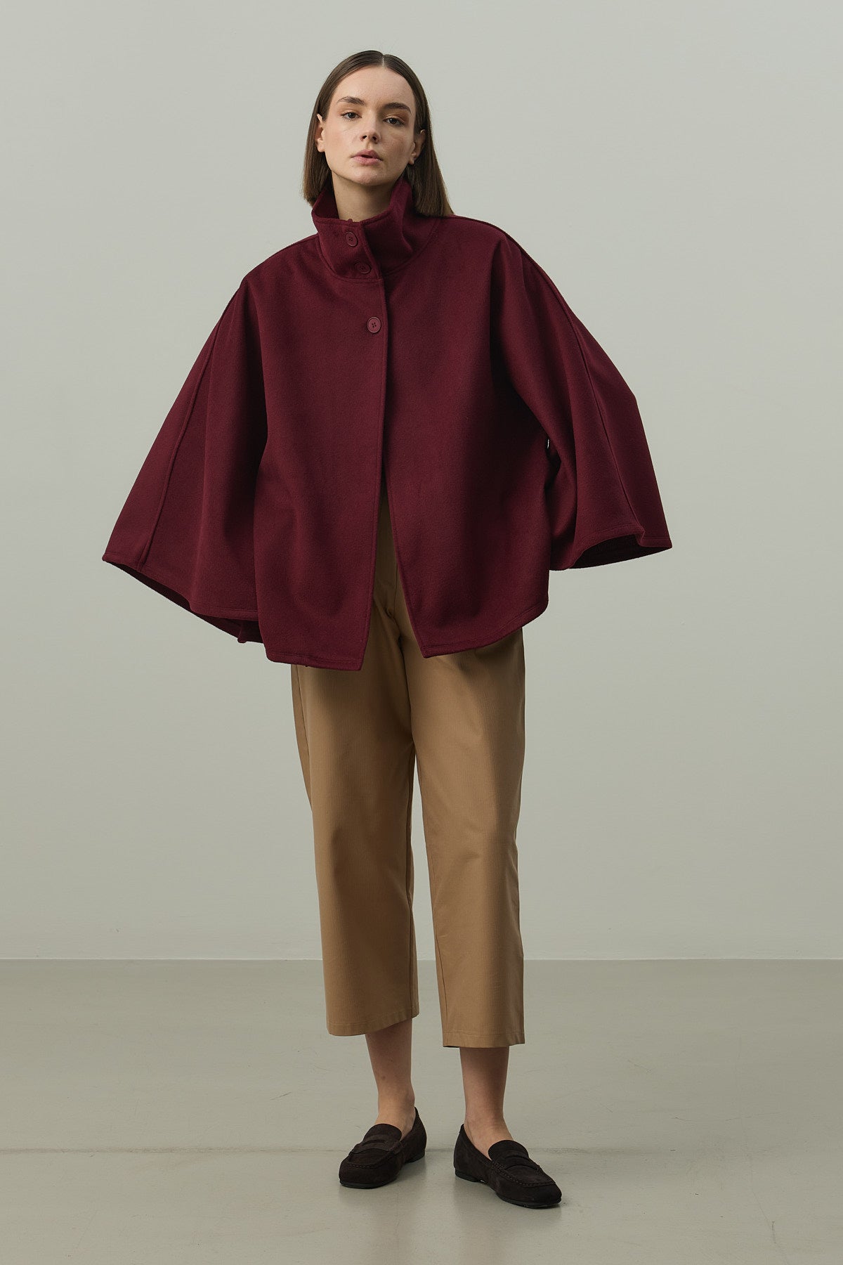 Kaşe Panço Ceket Bordo