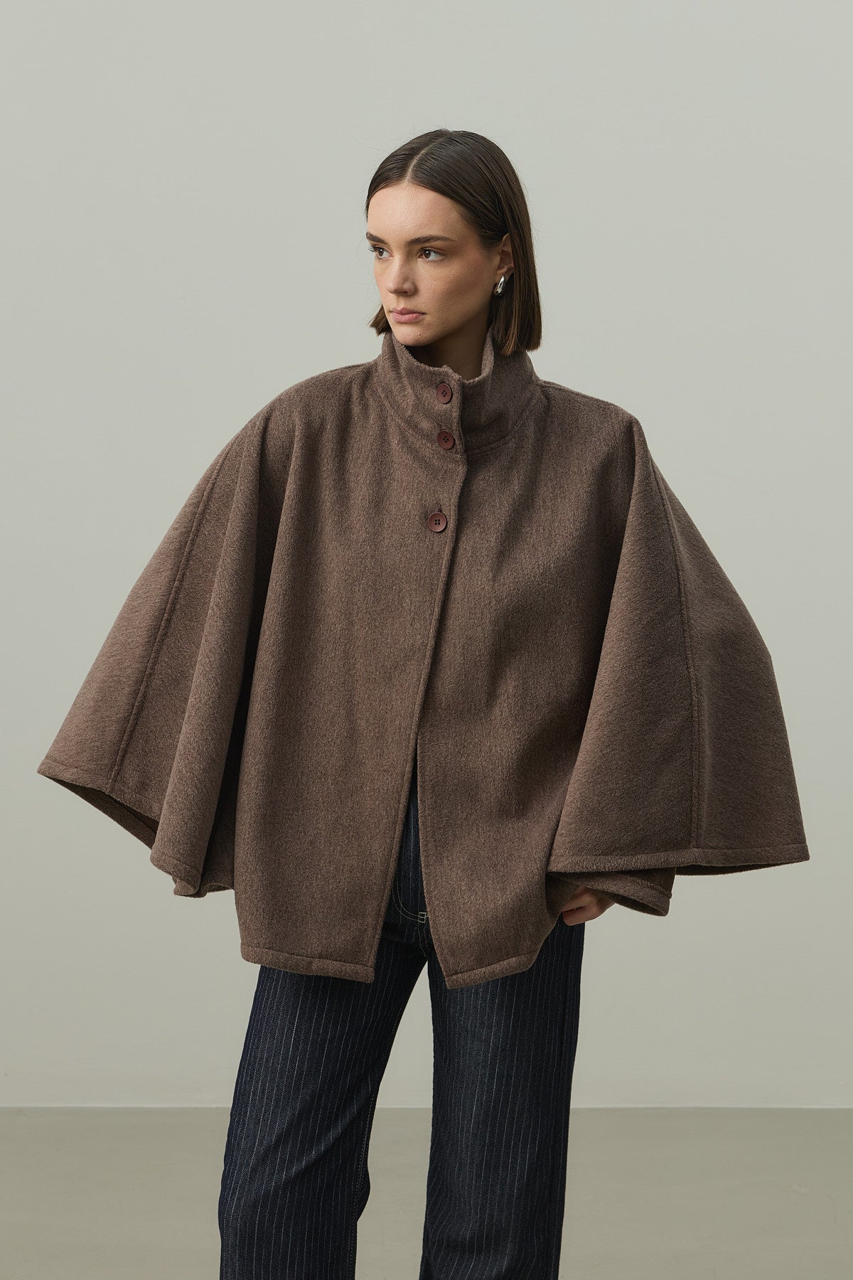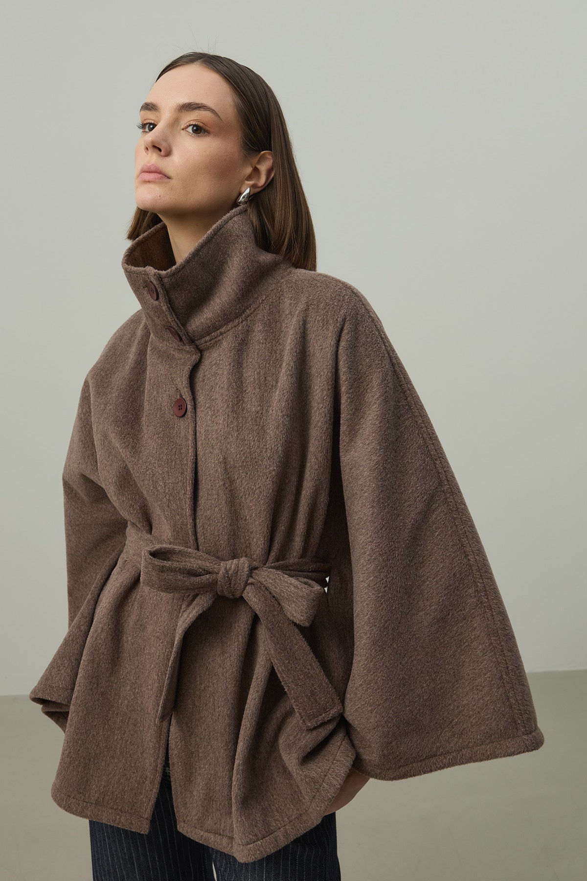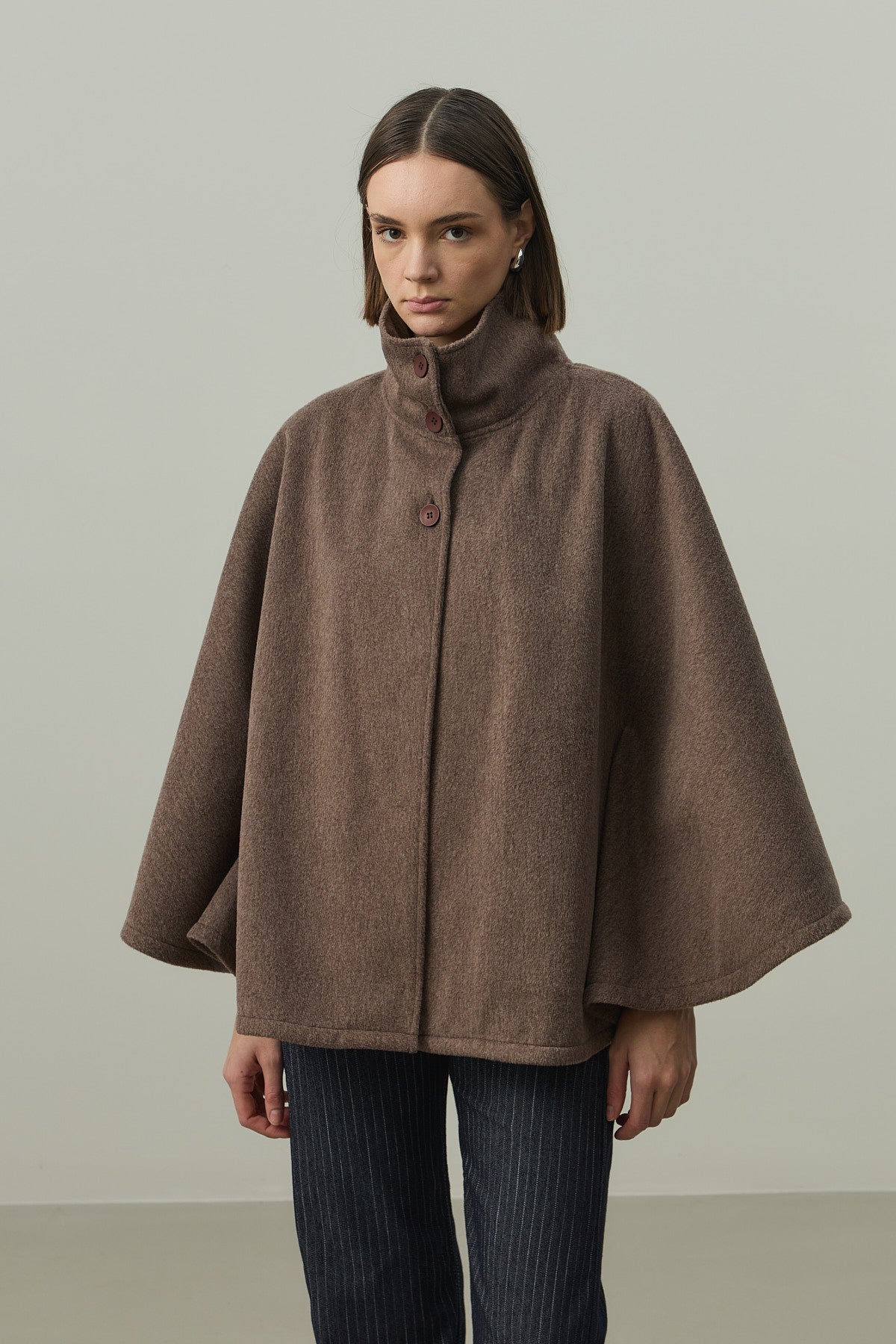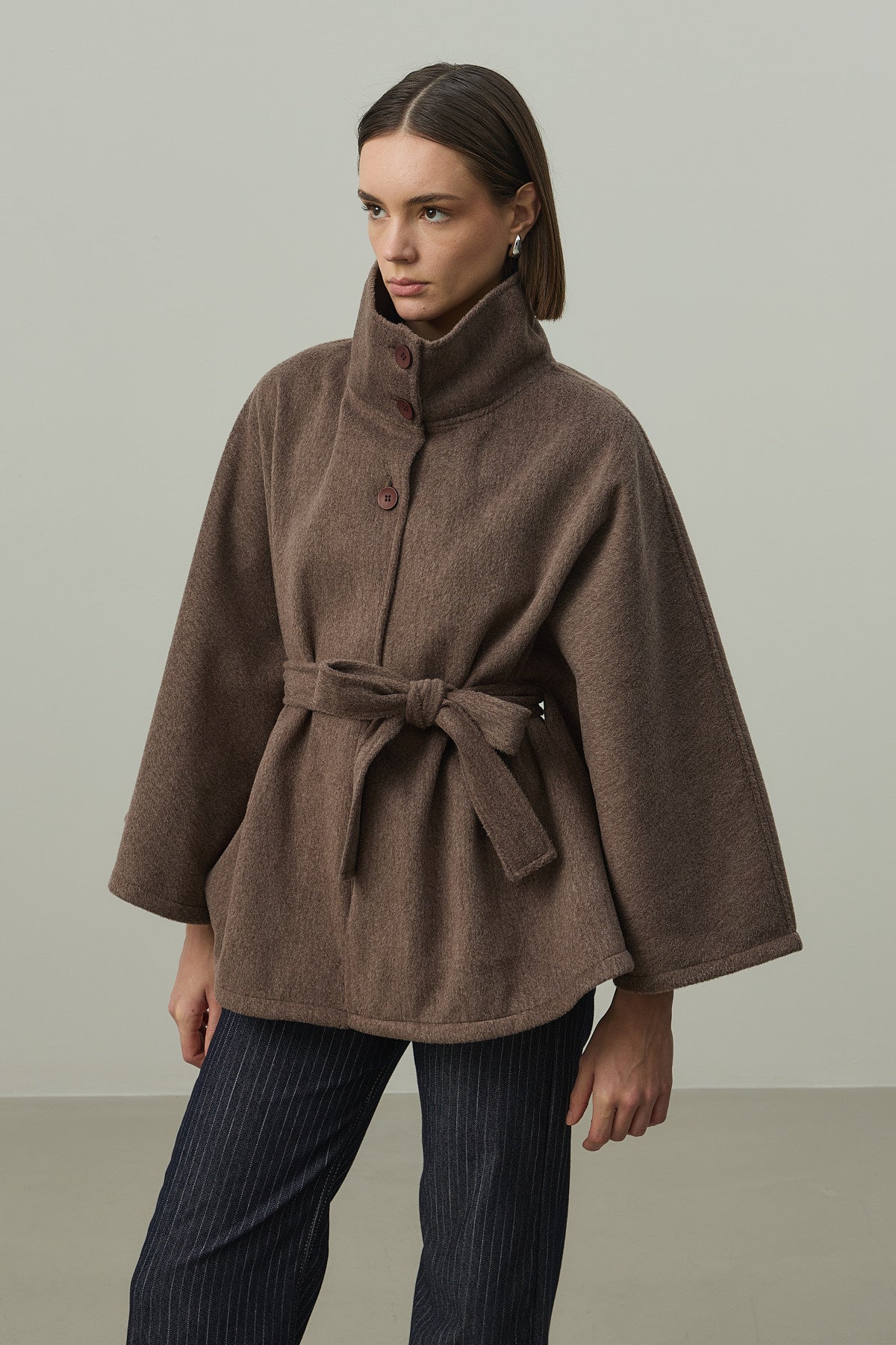 Kaşe Panço Ceket Kahverengi