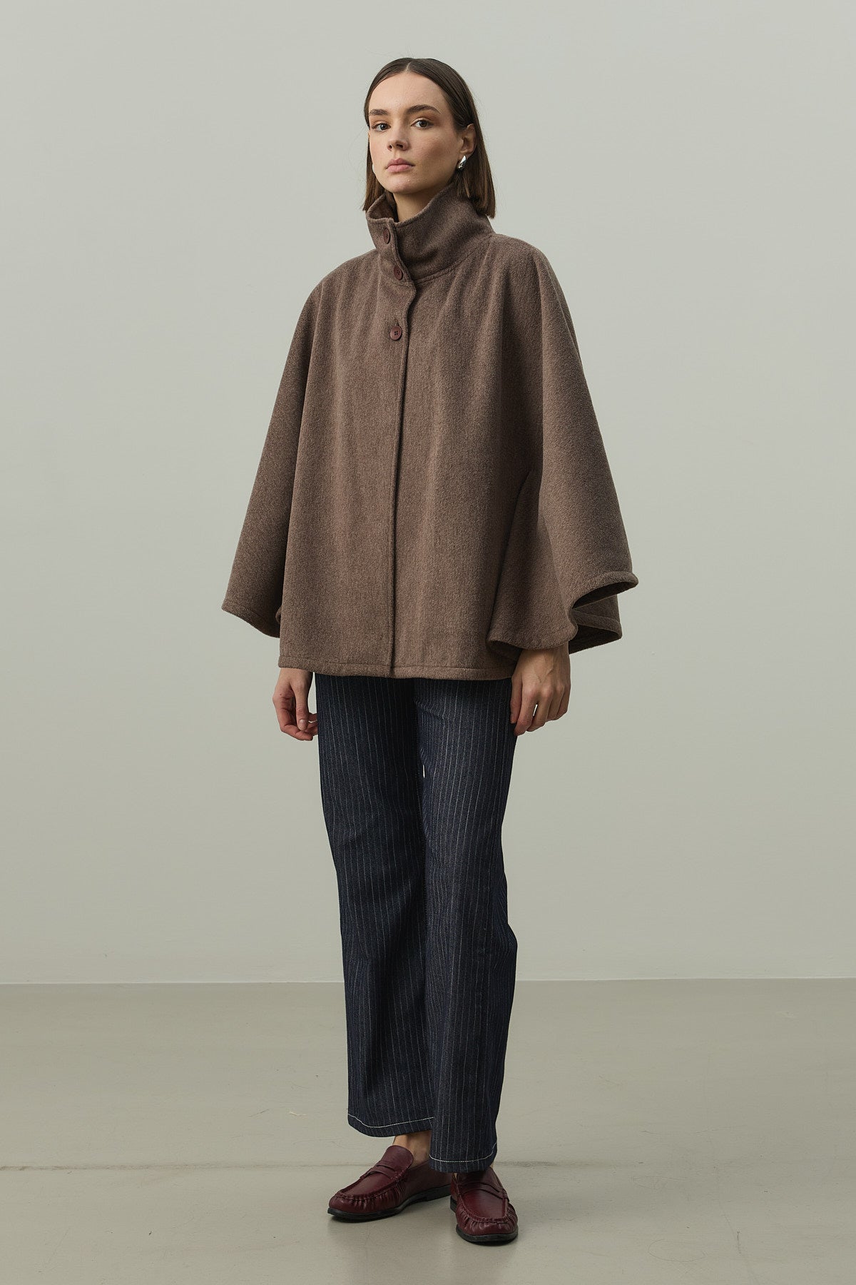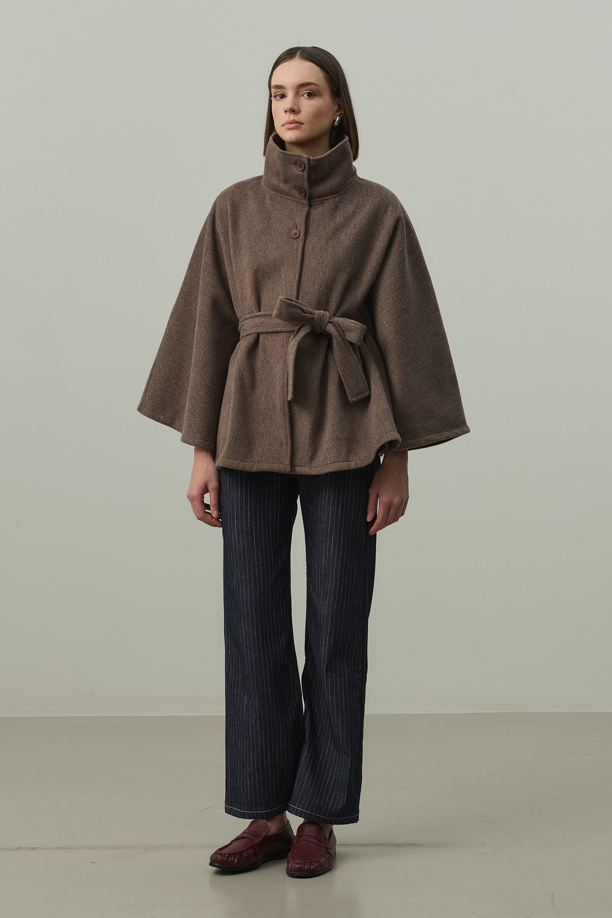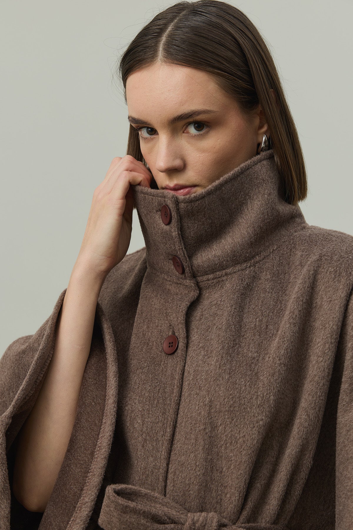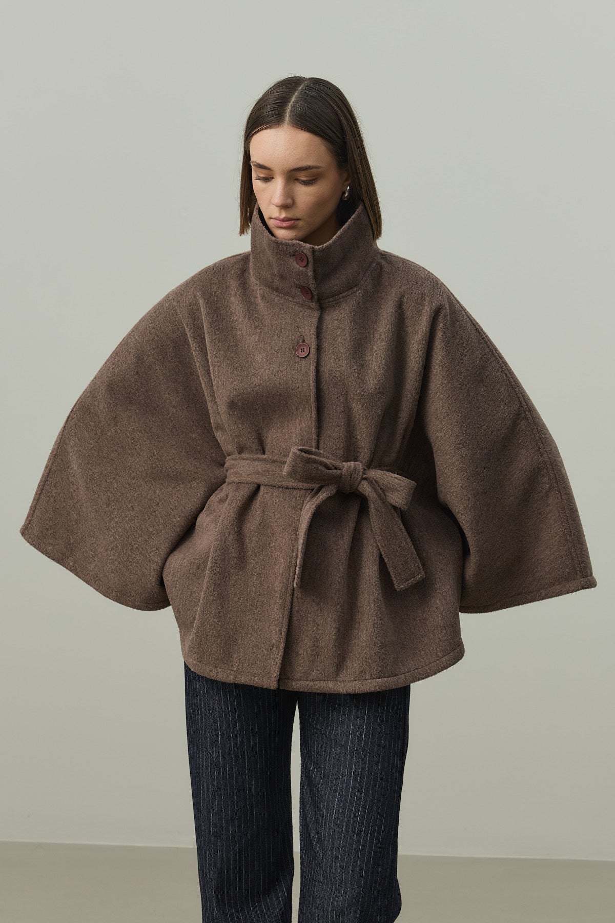 Kaşe Panço Ceket Kahverengi