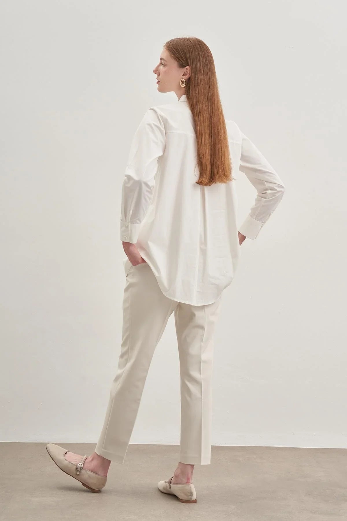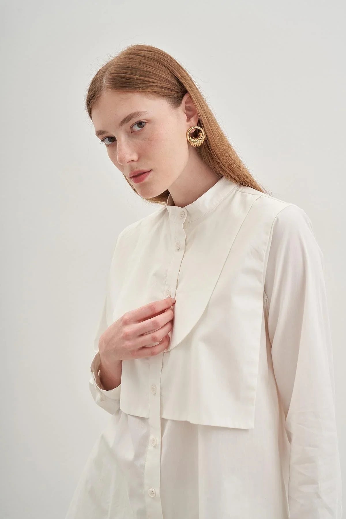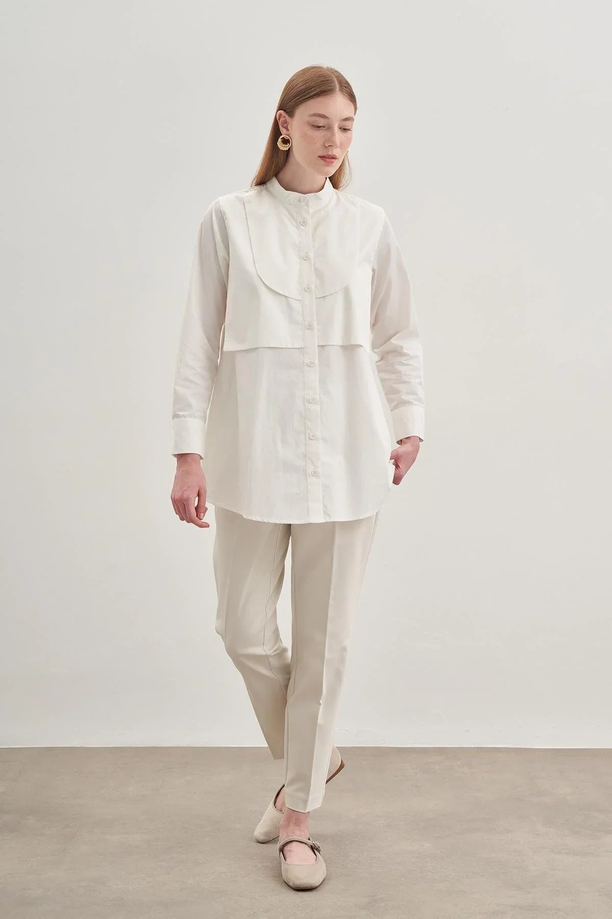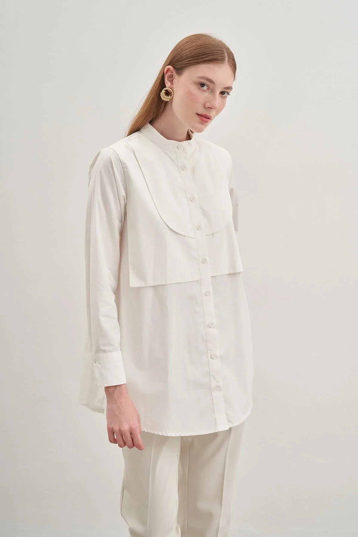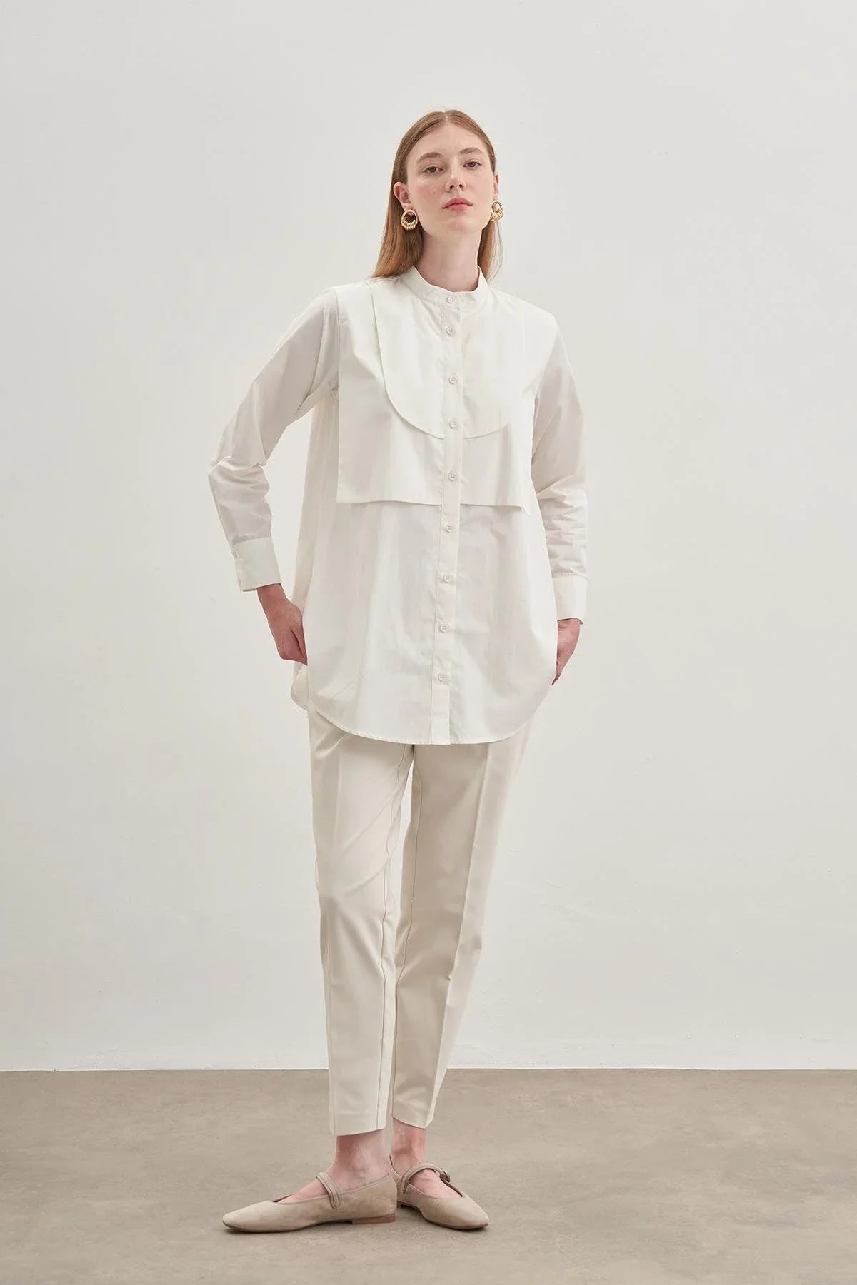 Parçalı Rüzgarlık Detaylı Gömlek Ekru