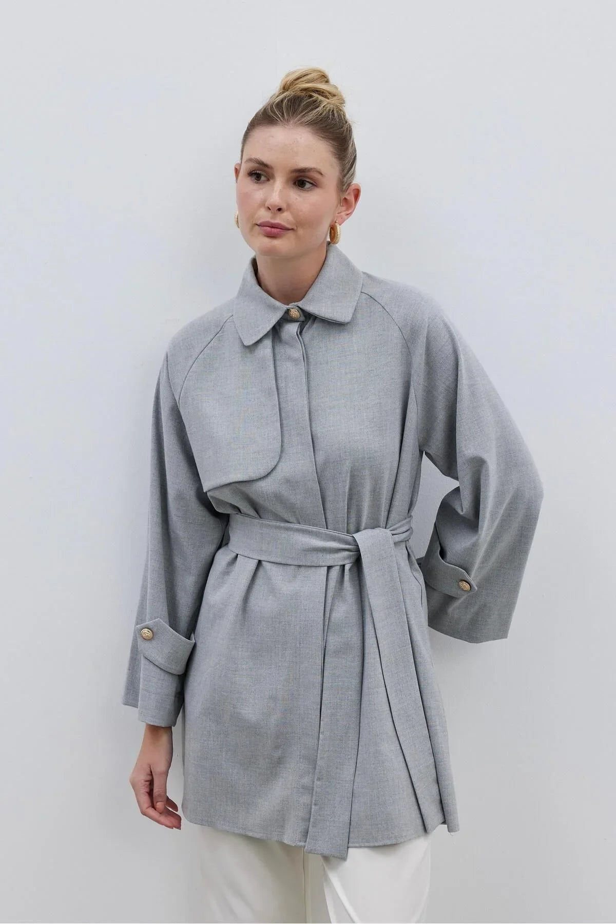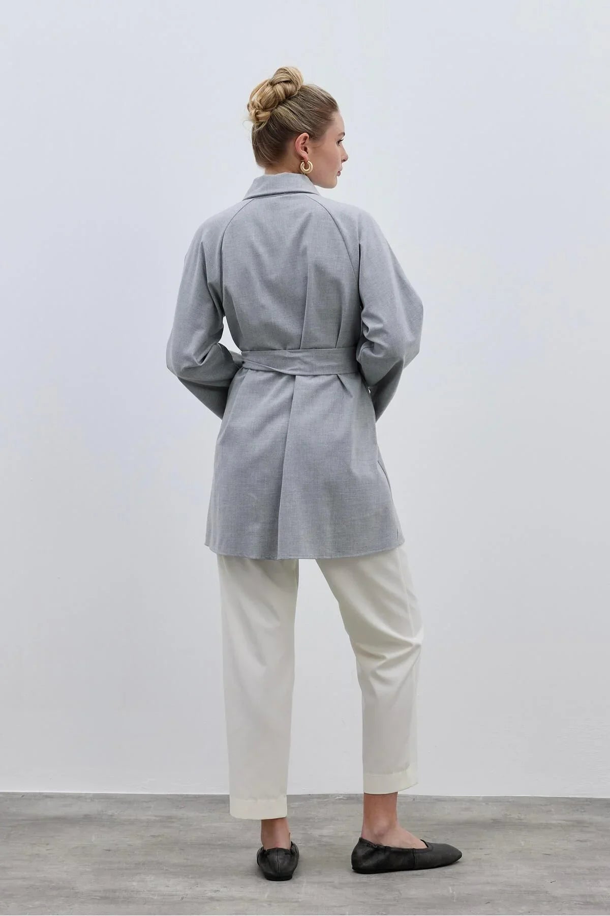 Rüzgarlık Detaylı Kadın Trenç Gömlek Gri