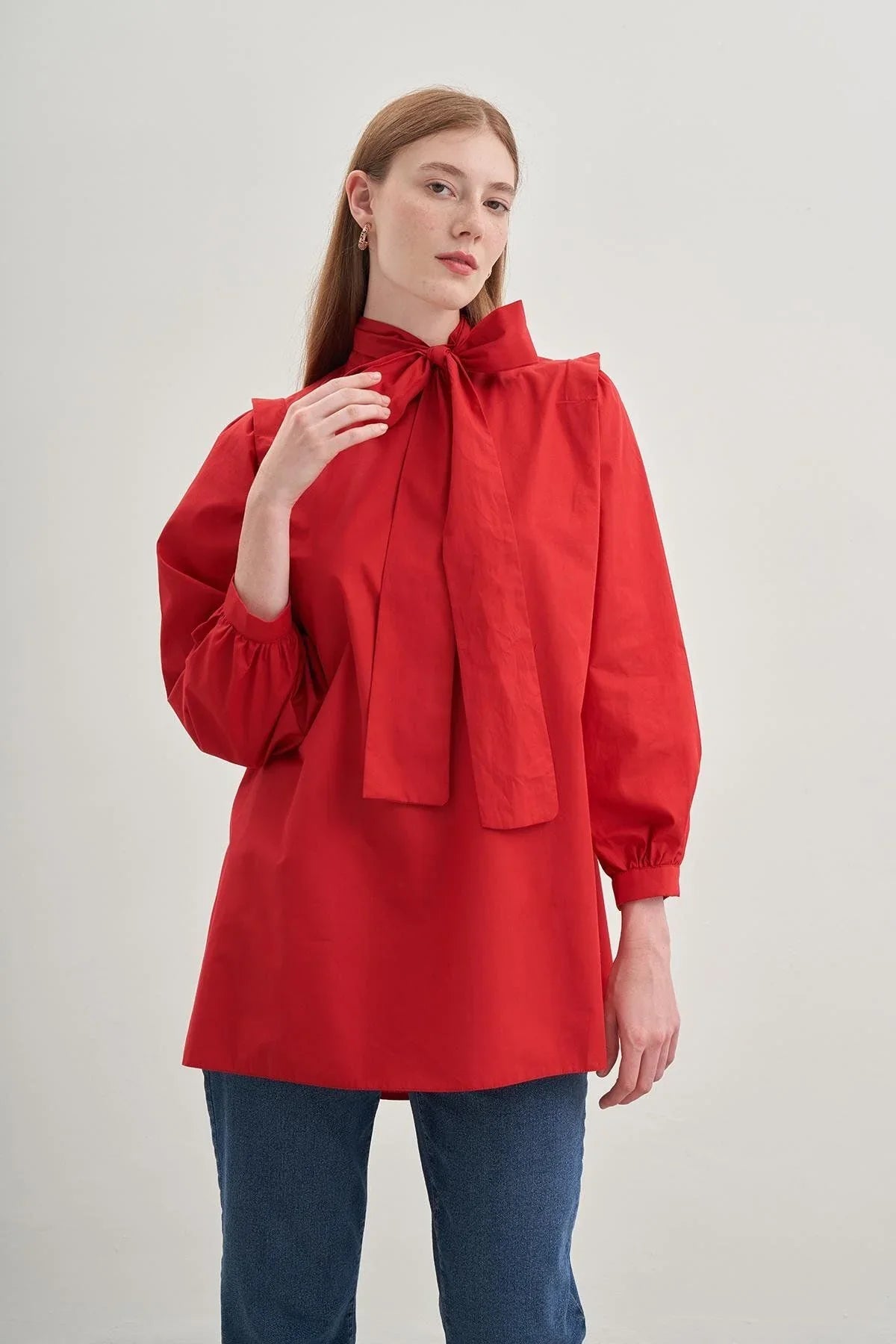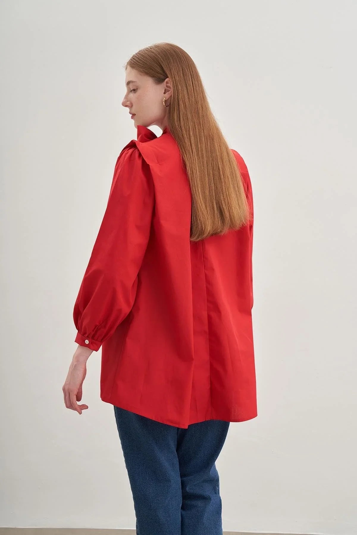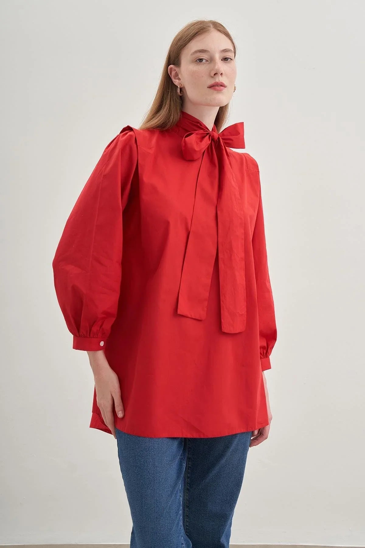 Seyyar Fularlı Kadın Gömlek Kırmızı