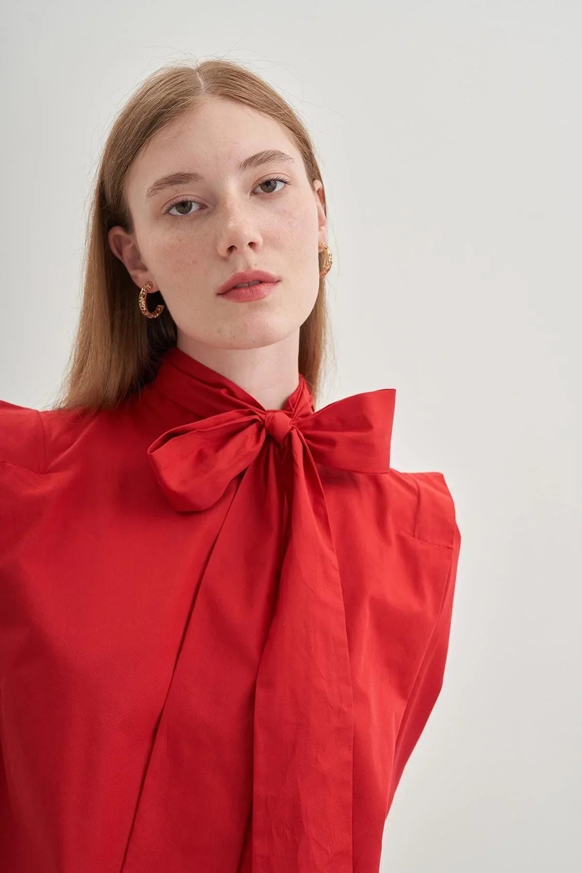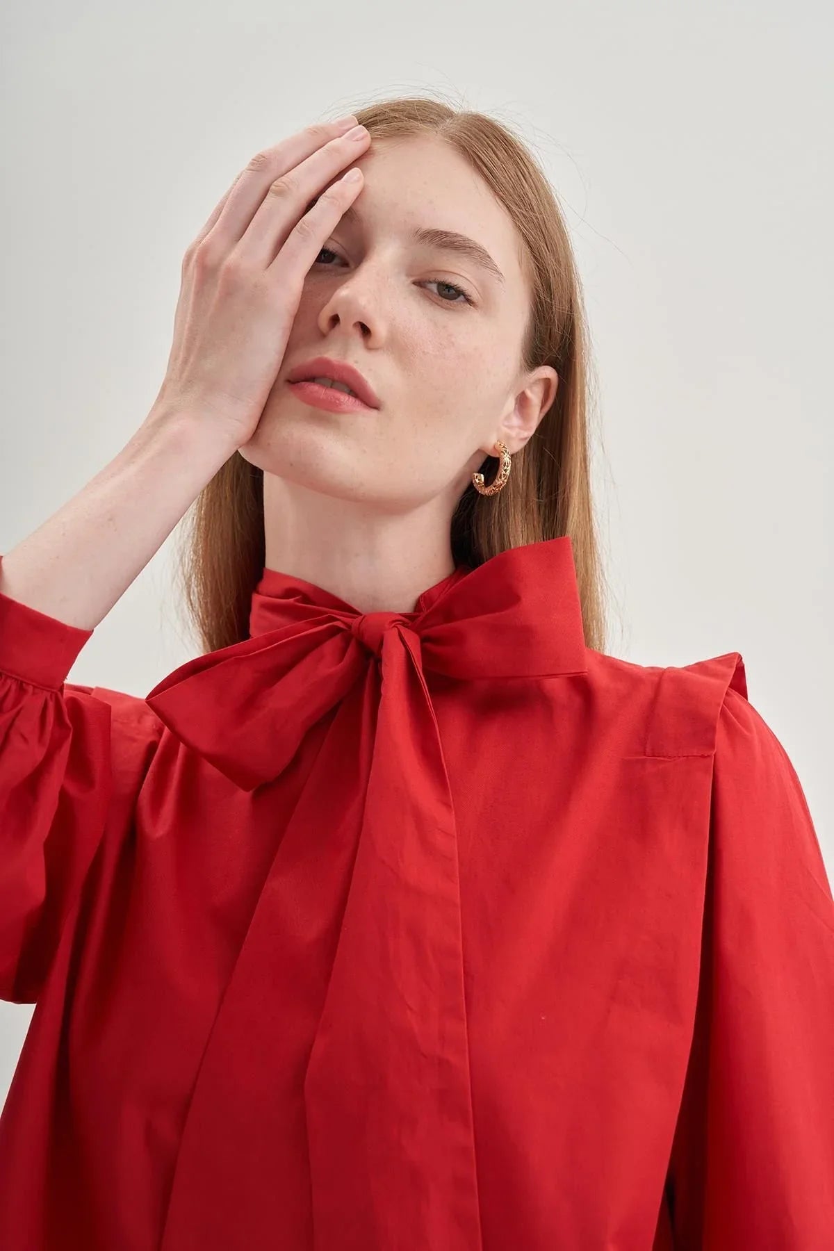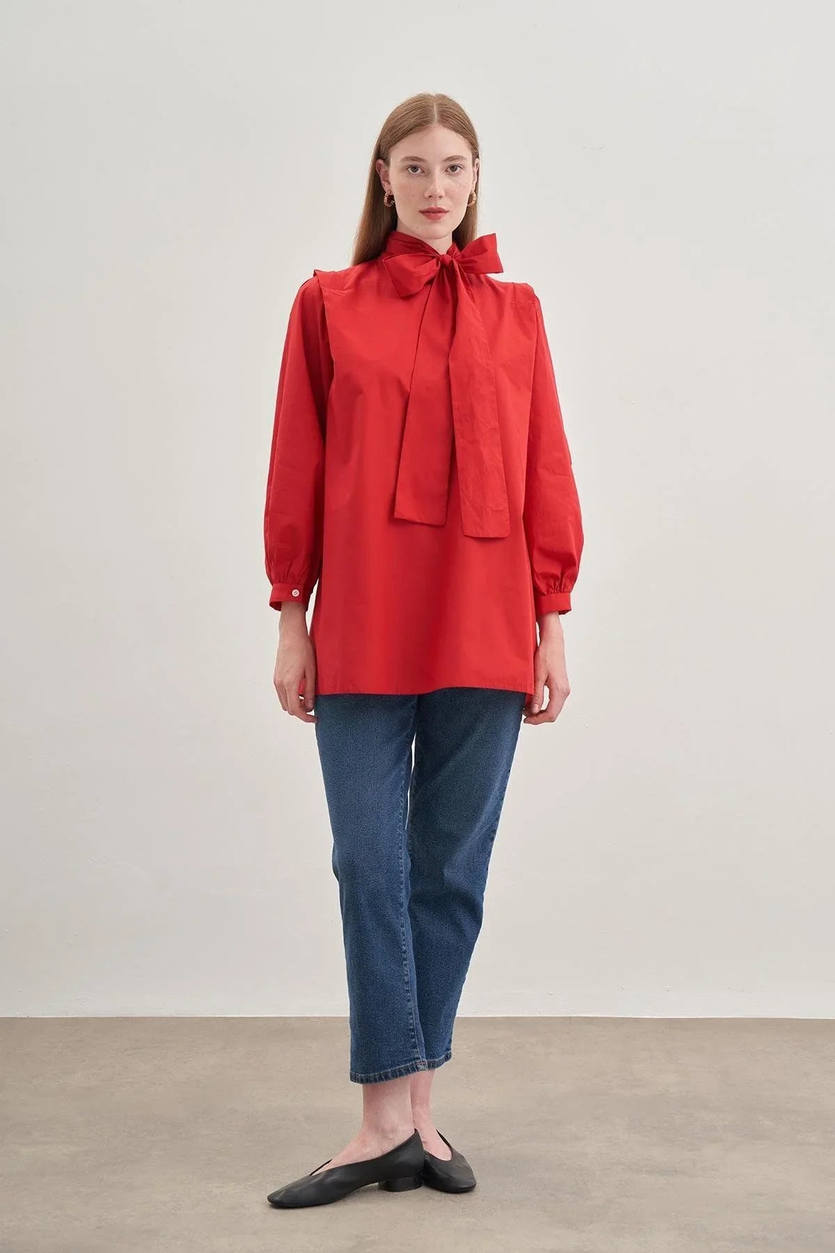 Seyyar Fularlı Kadın Gömlek Kırmızı