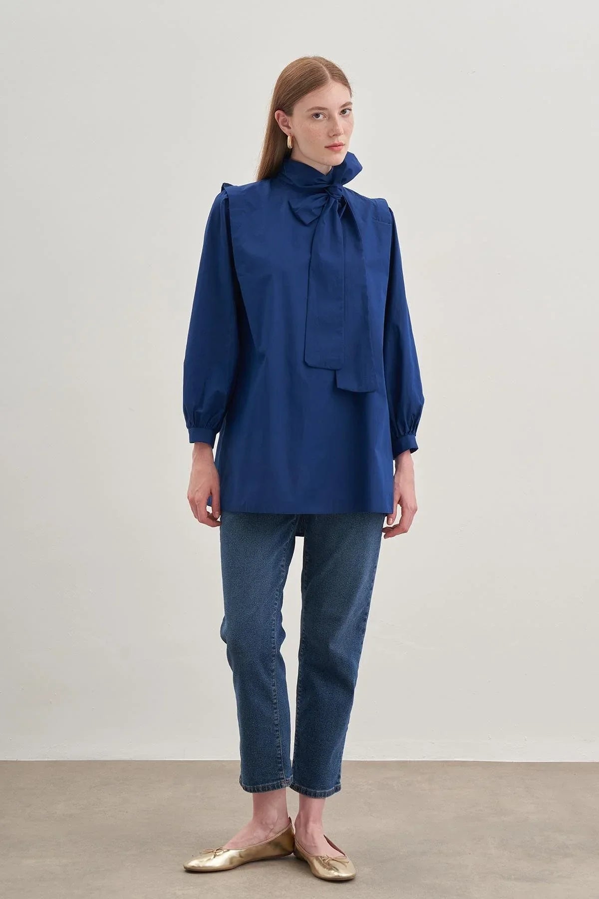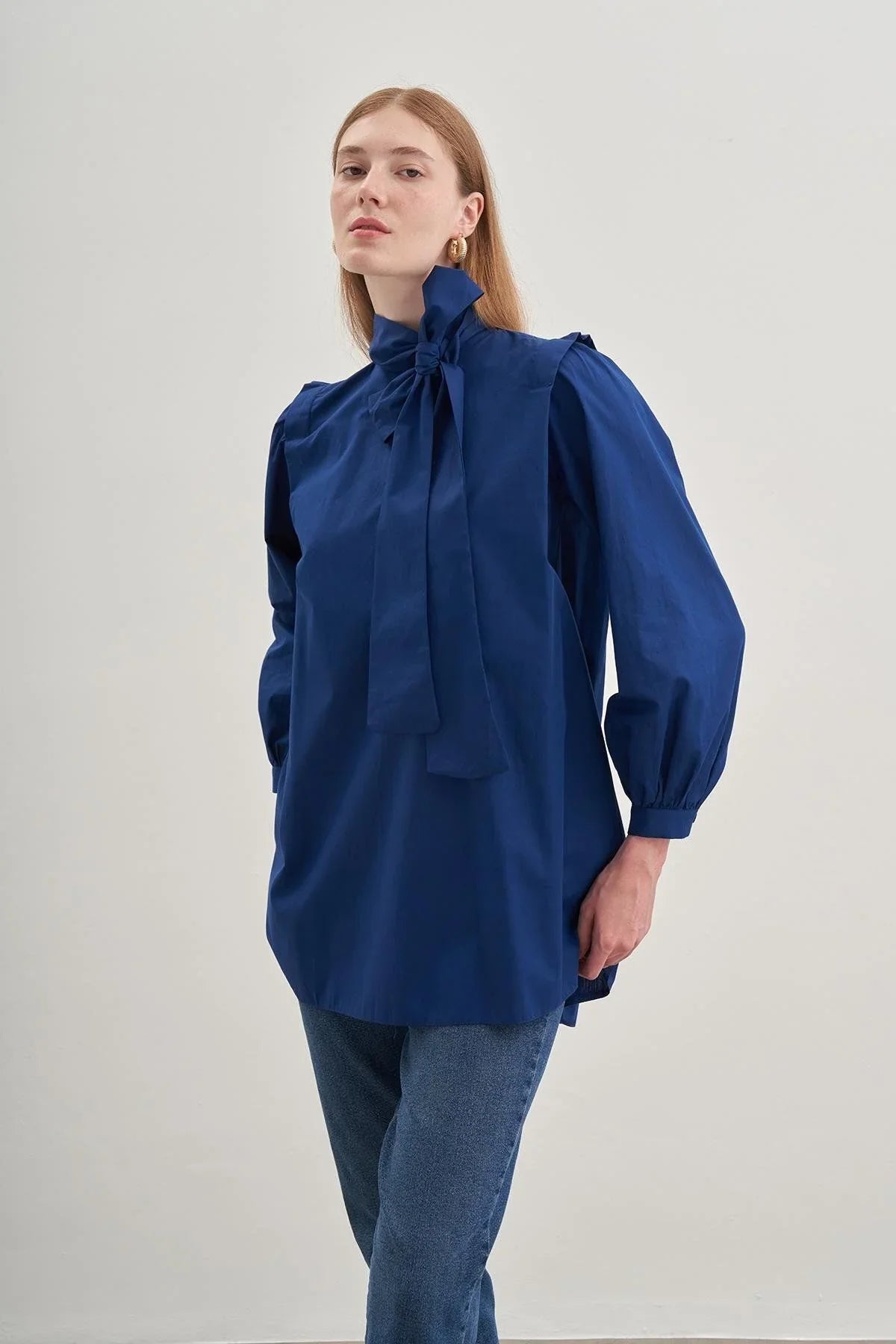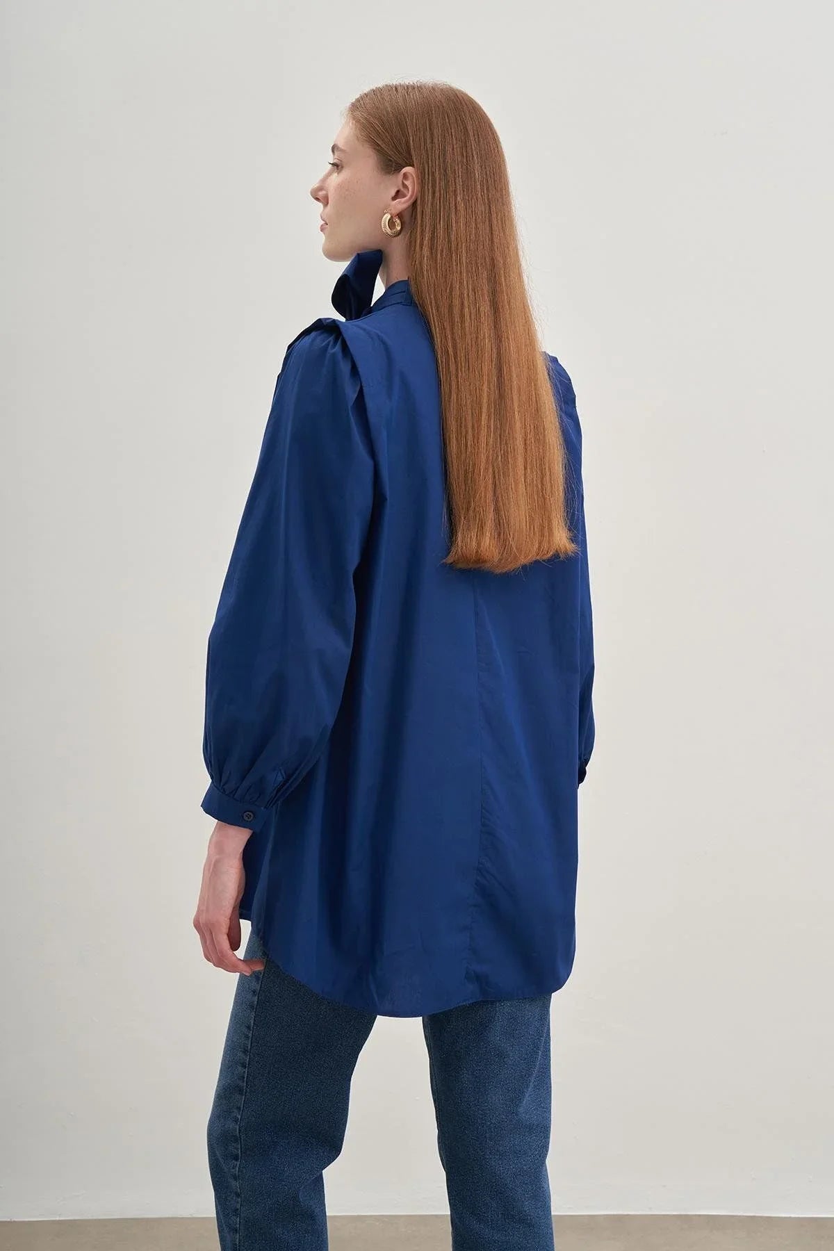 Seyyar Fularlı Kadın Gömlek Lacivert