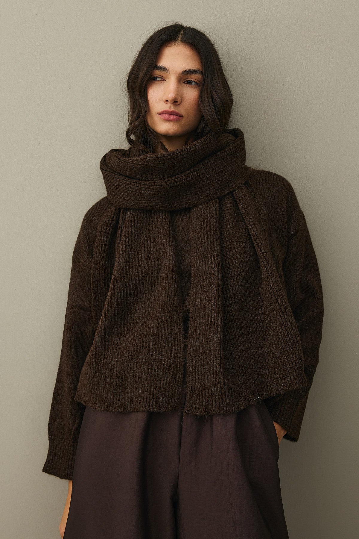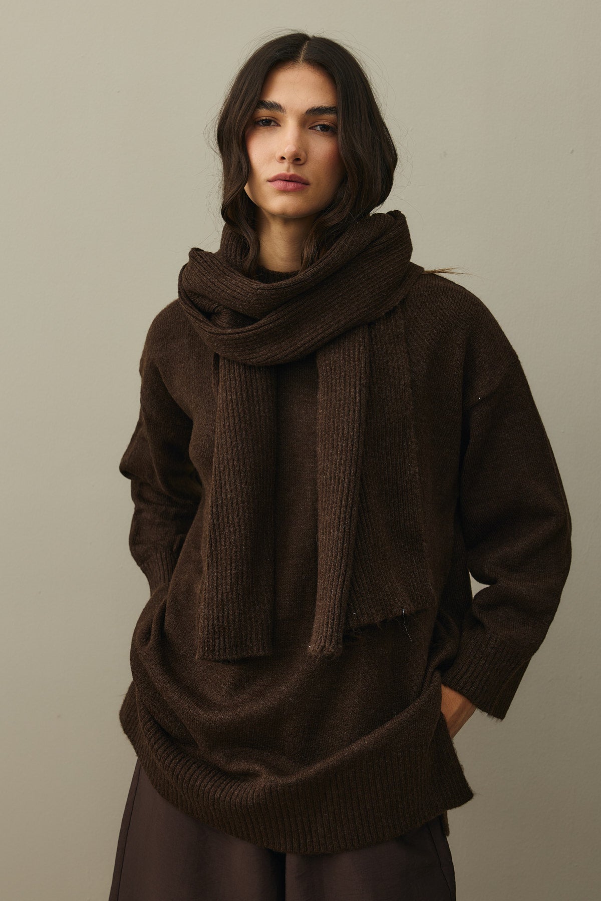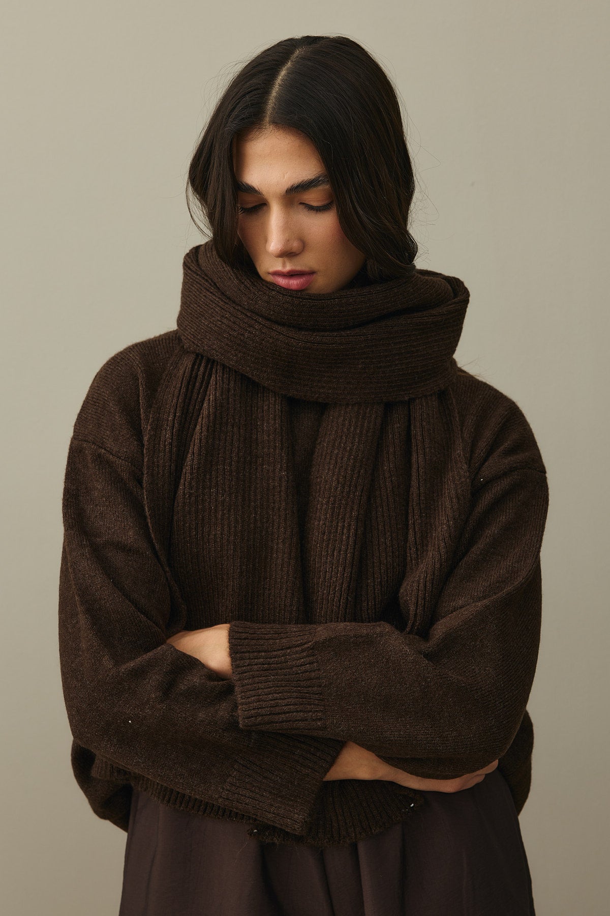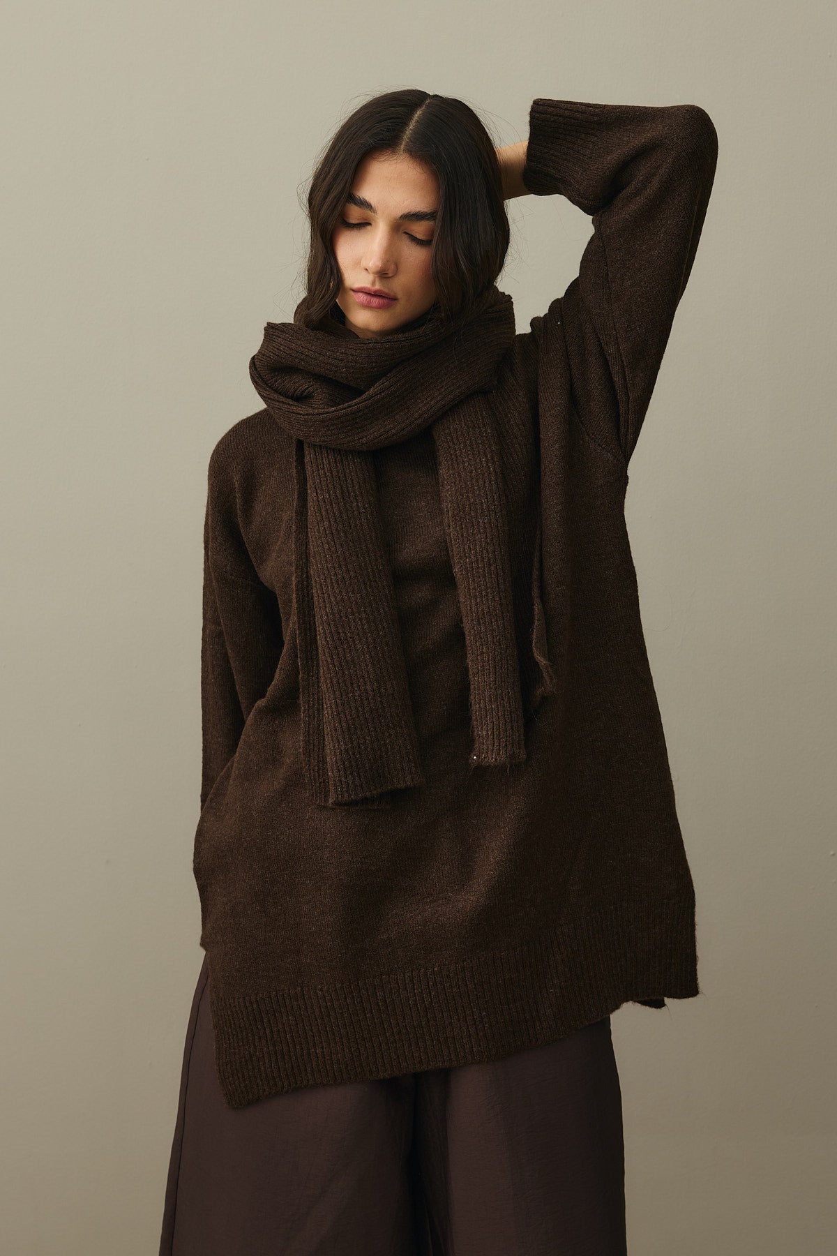 Tiftik Karışımlı Atkılı Kazak Kahverengi