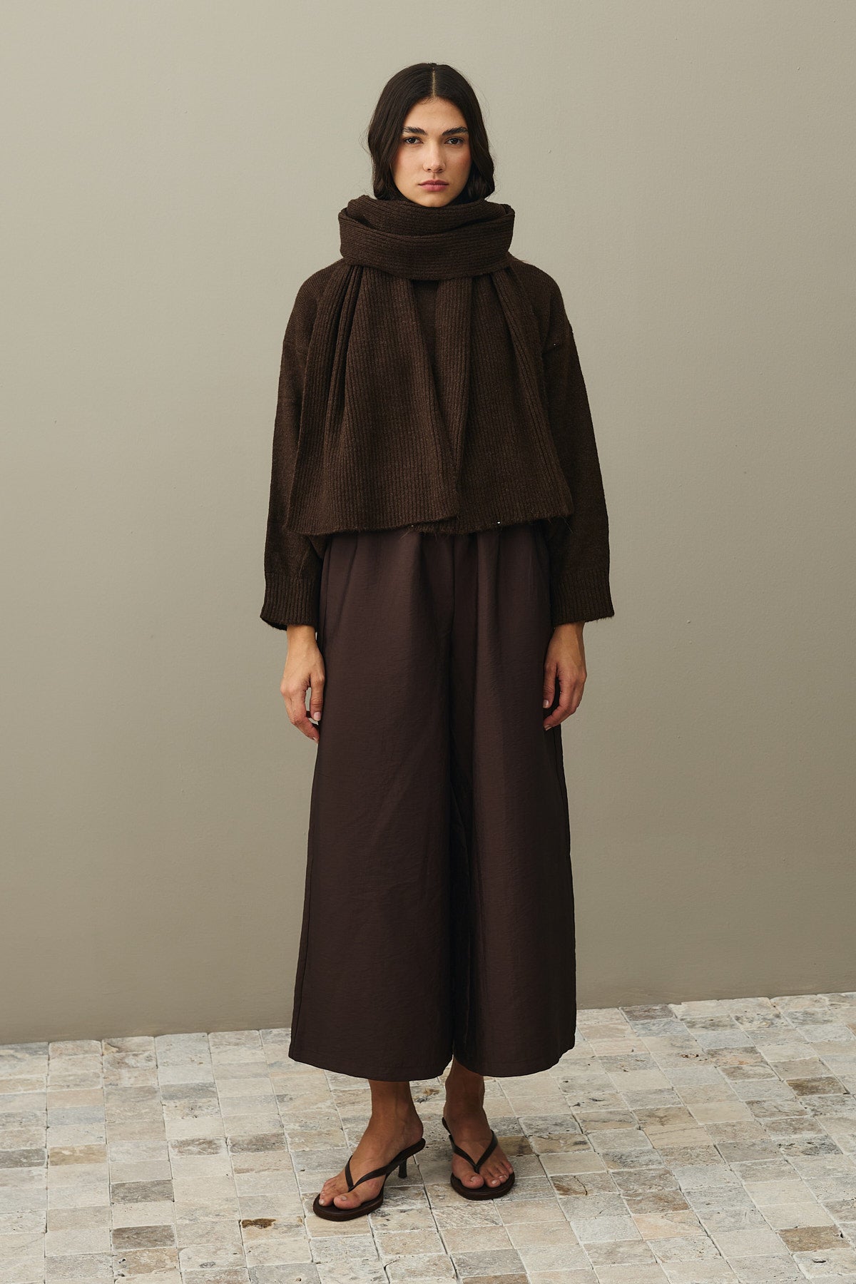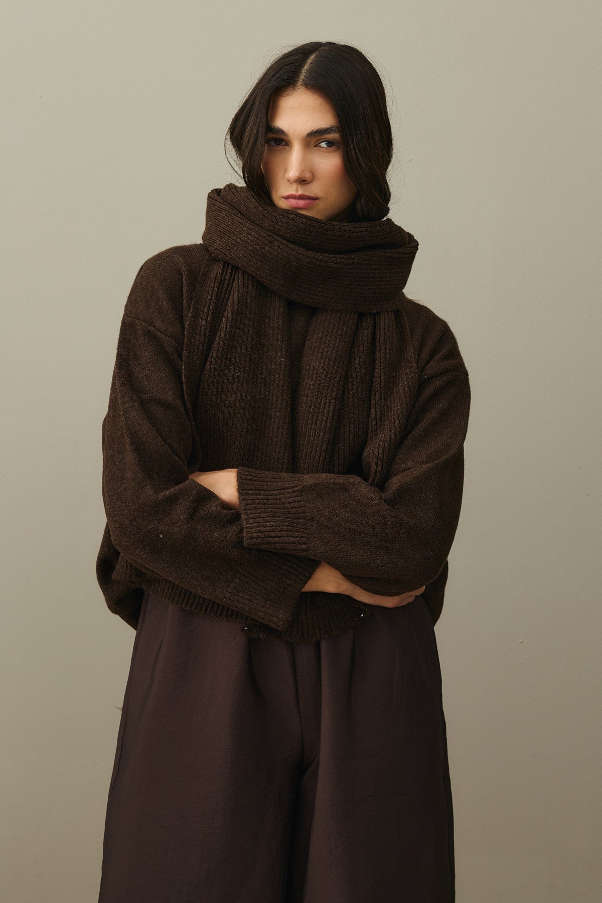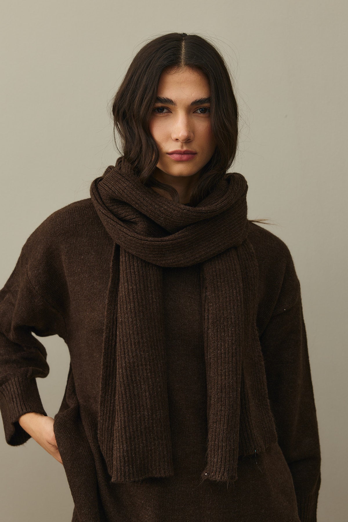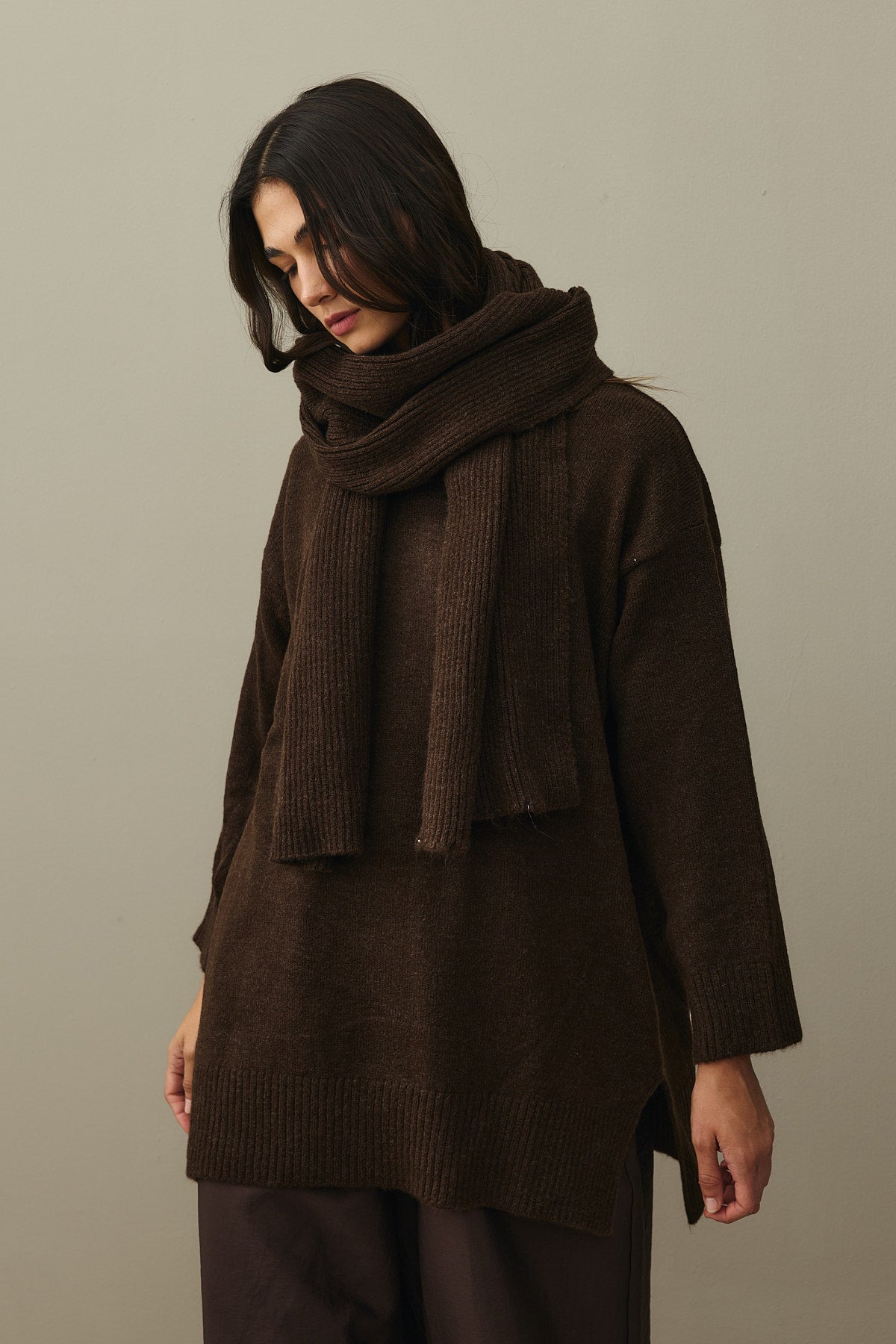 Tiftik Karışımlı Atkılı Kazak Kahverengi