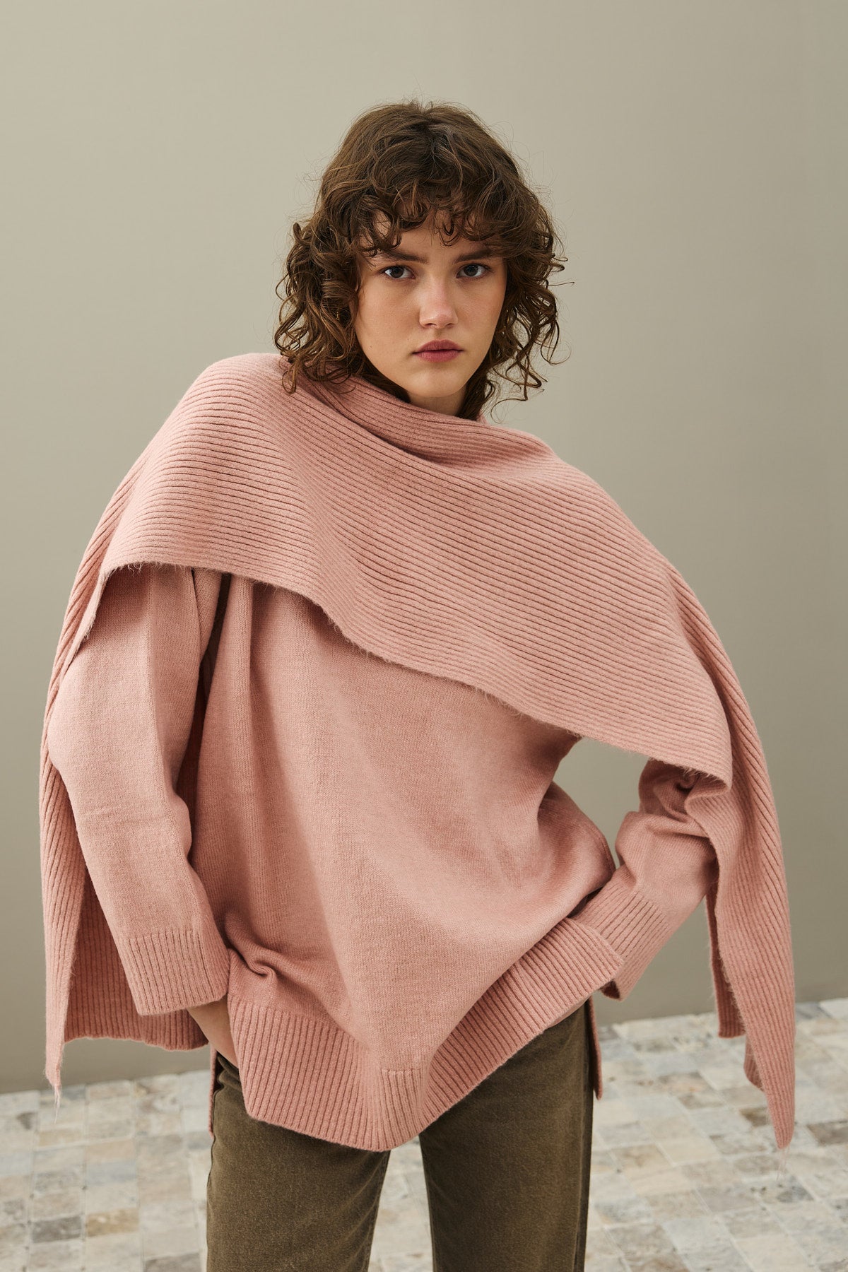 Tiftik Karışımlı Atkılı Kazak Pembe