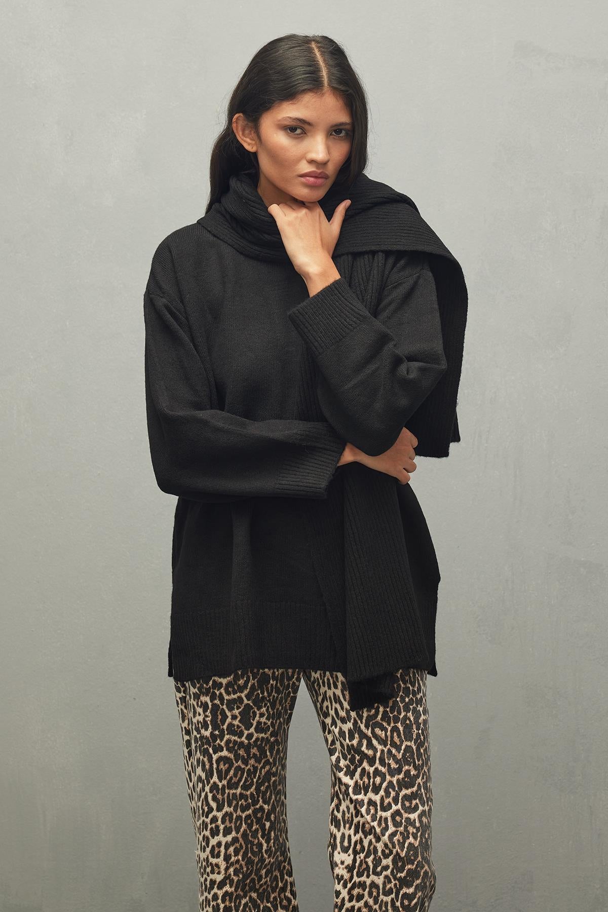 Tiftik Karışımlı Atkılı Kazak Siyah
