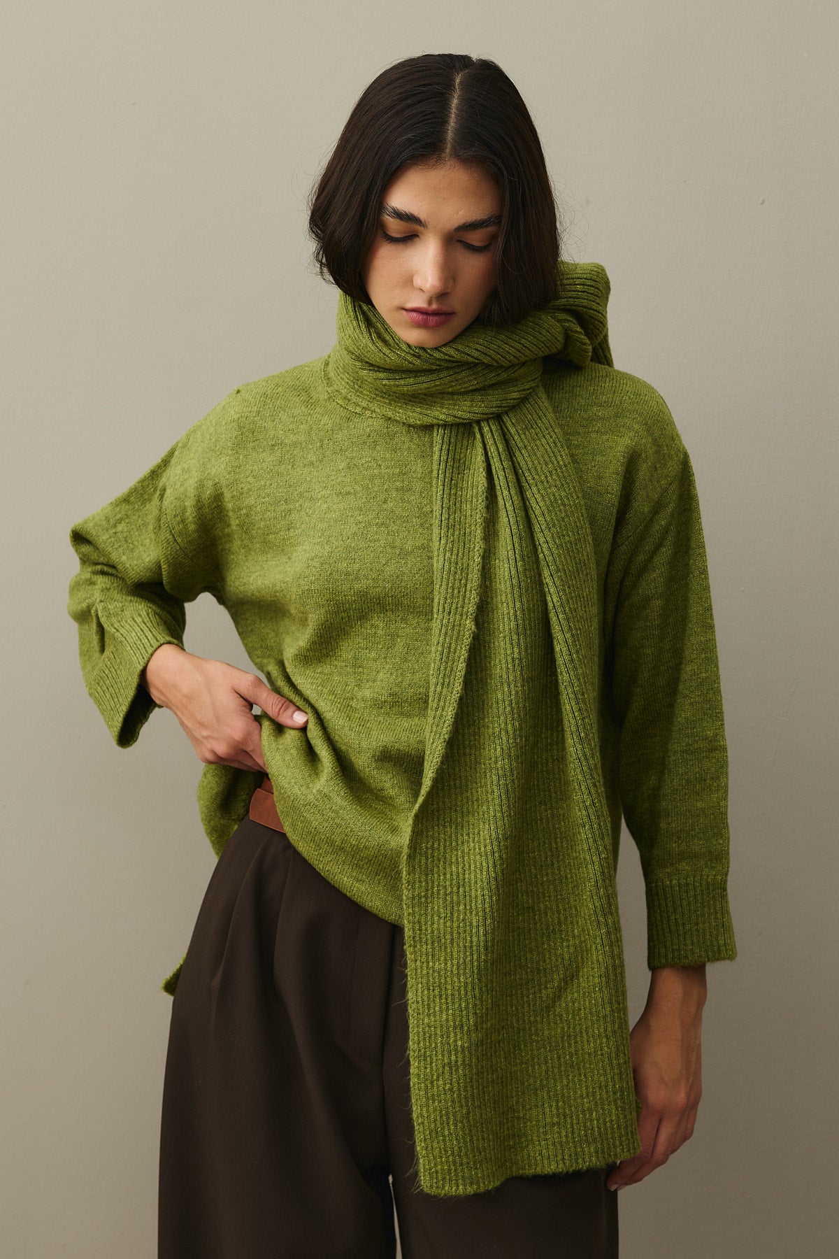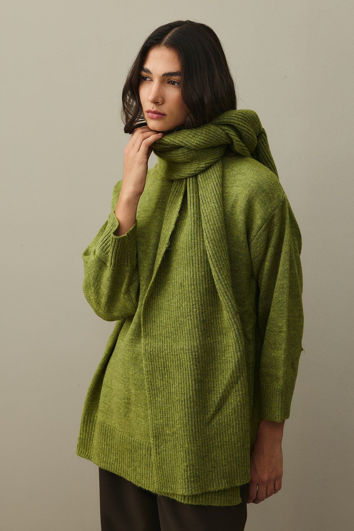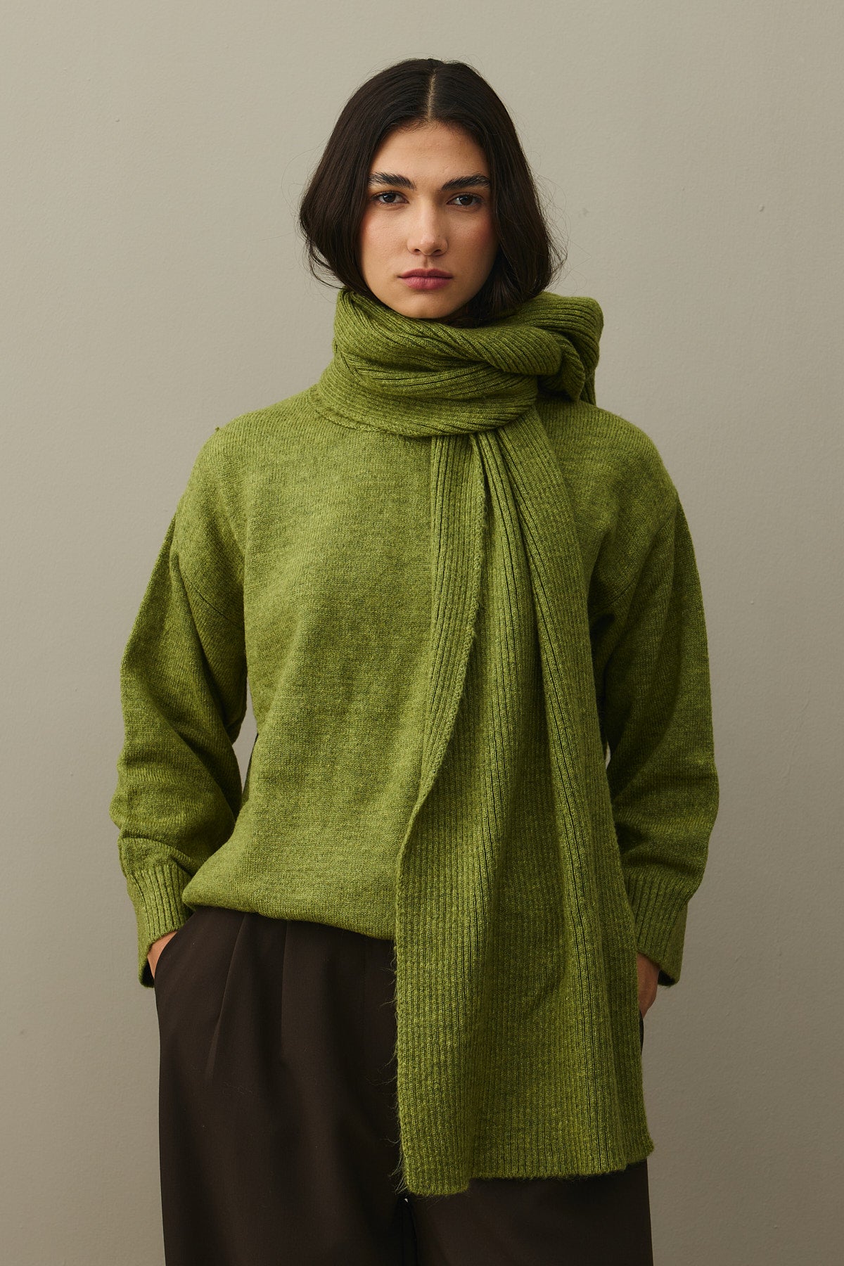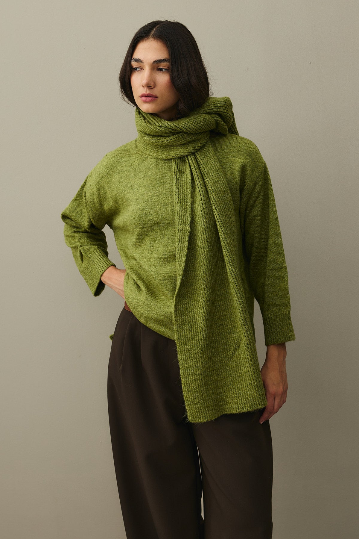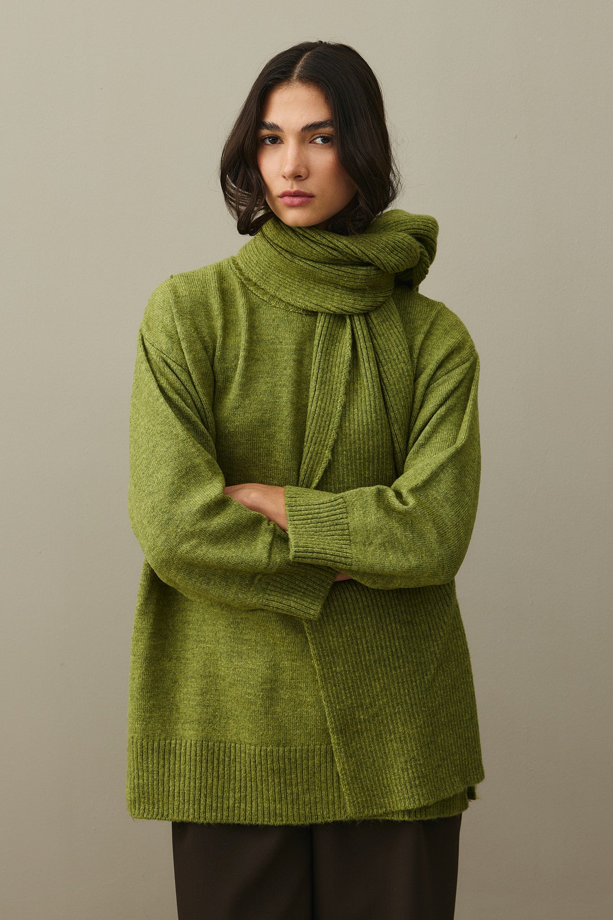 Tiftik Karışımlı Atkılı Kazak Yağ Yeşili