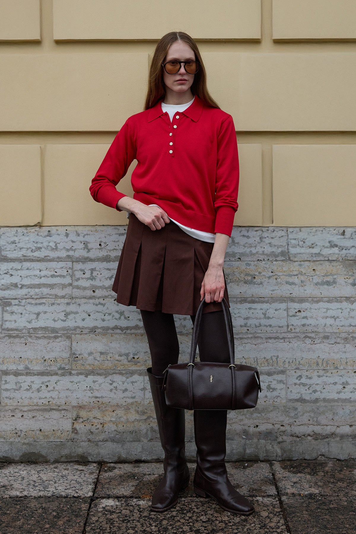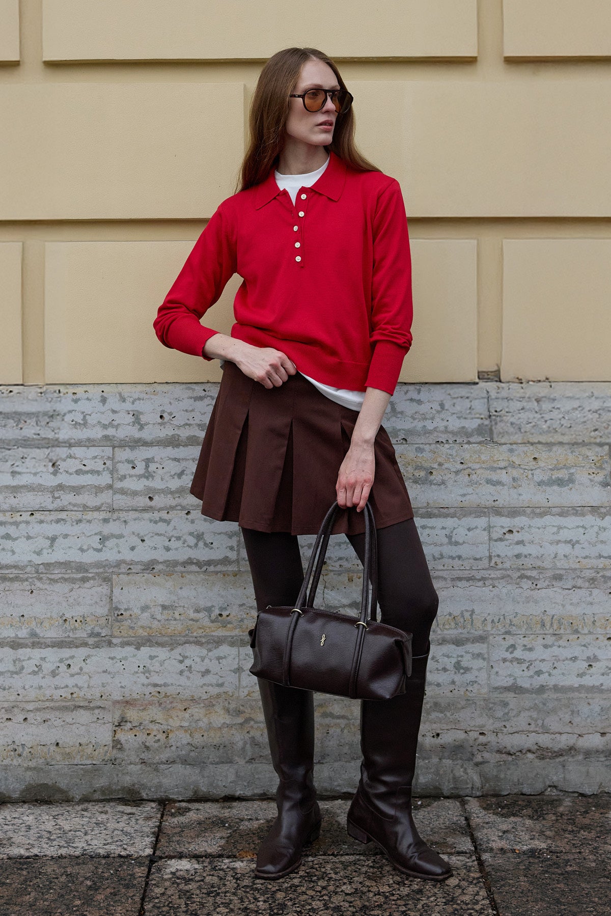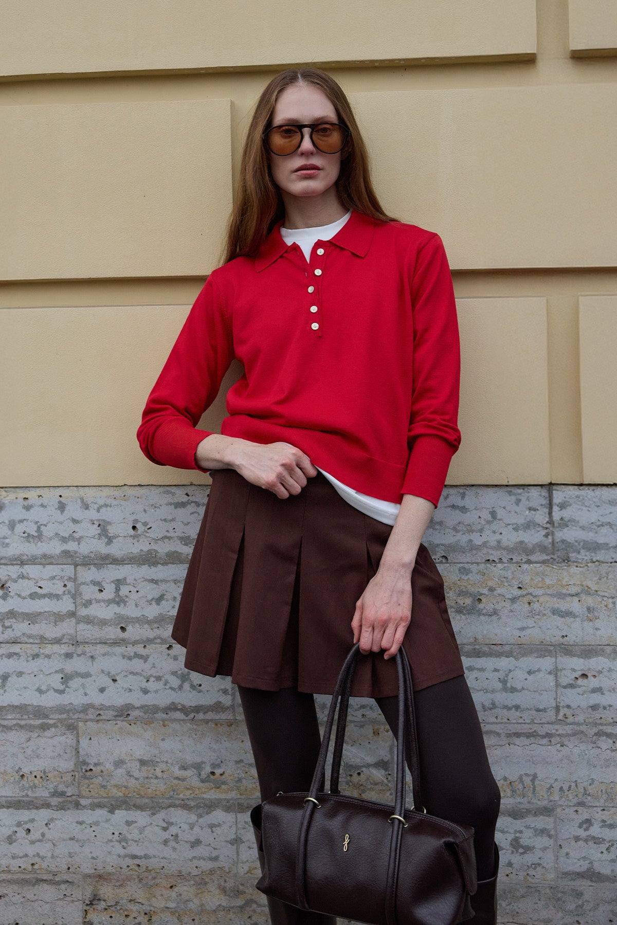 Uzun Kollu Polo Yaka Triko Kırmızı
