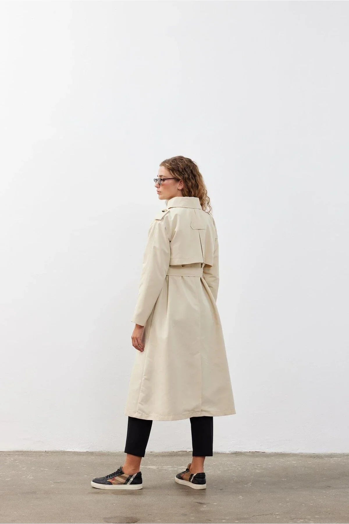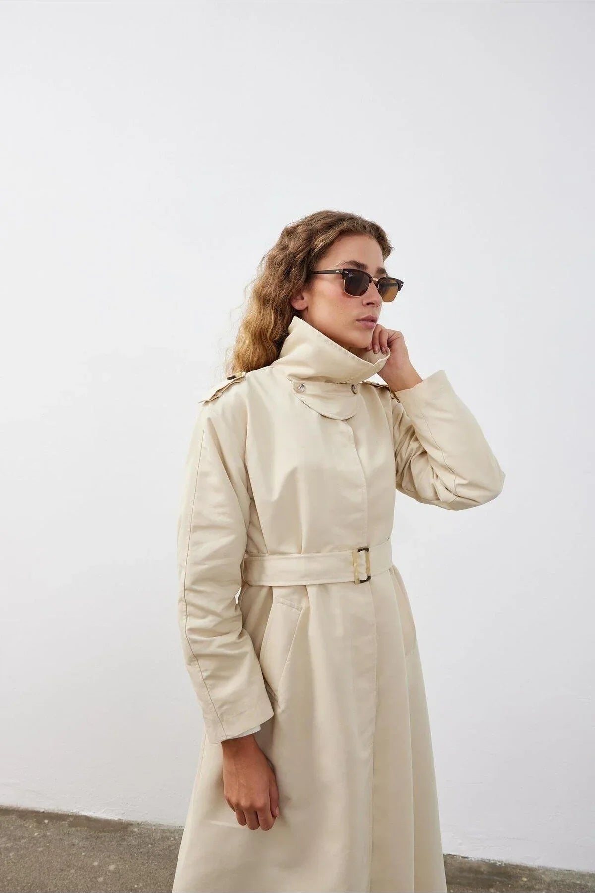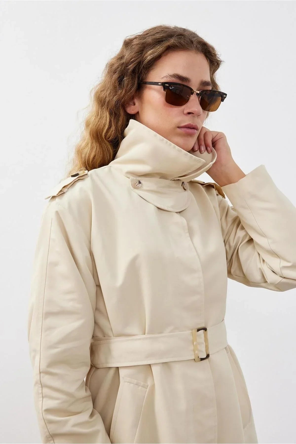 Yakası Parça Detaylı Kadın Trençkot Bej Bej