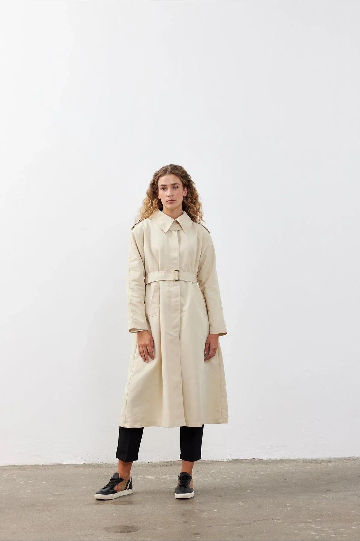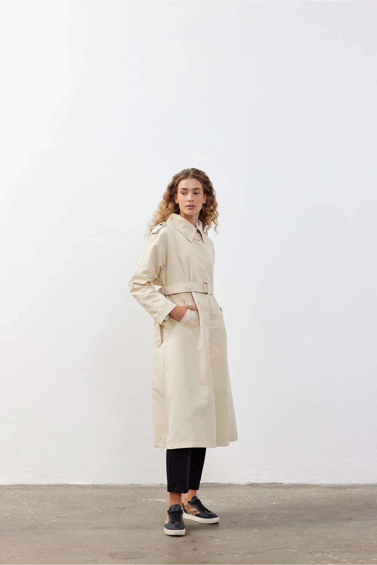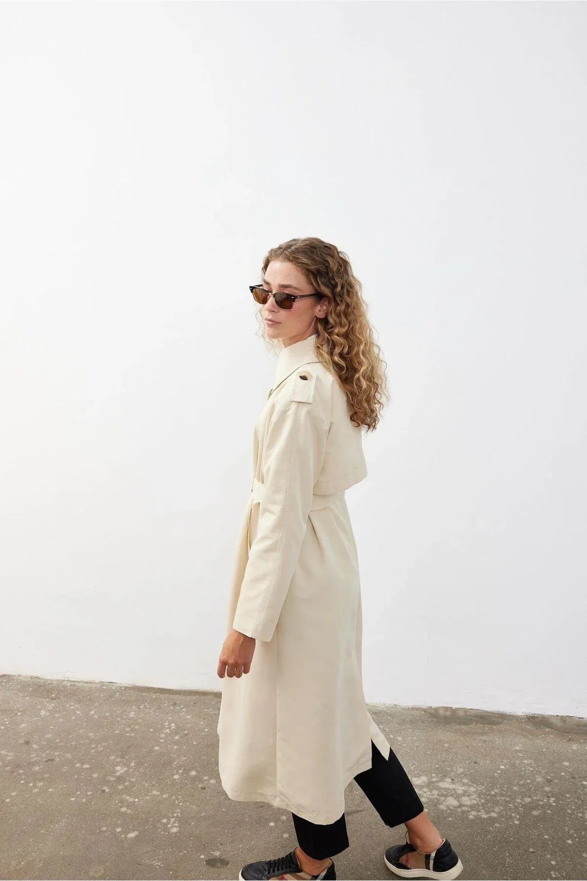 Yakası Parça Detaylı Kadın Trençkot Bej Bej