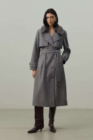 Çıkarılabilir Yakalı Maxi Kaban Gri