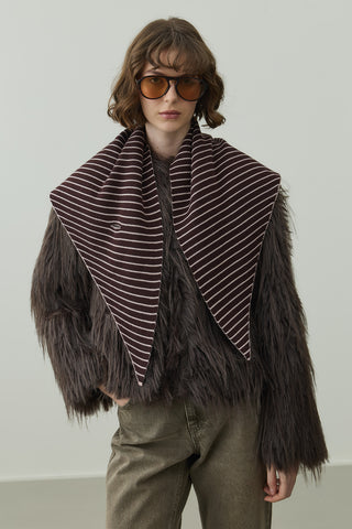 Çift Yönlü Çizgili Fular Atkı Kahverengi