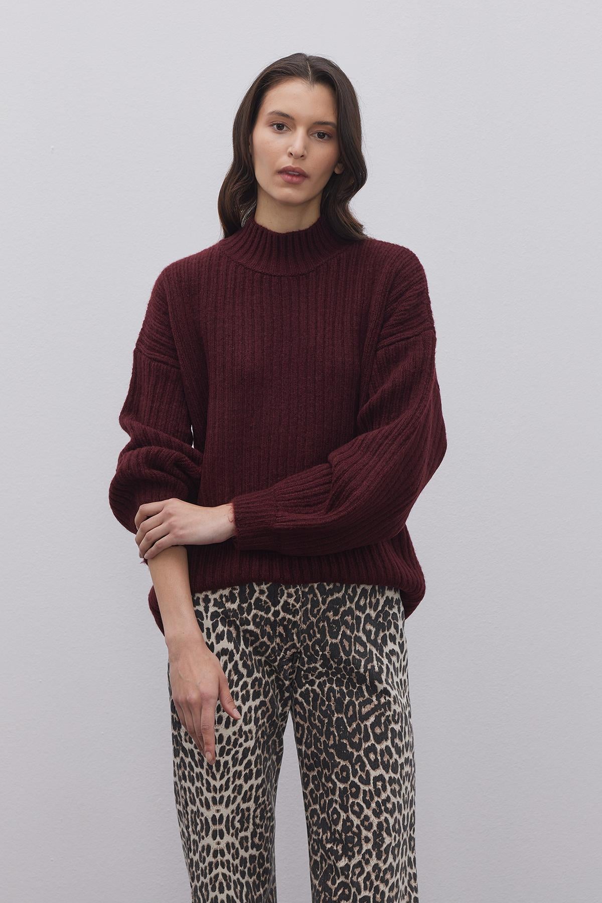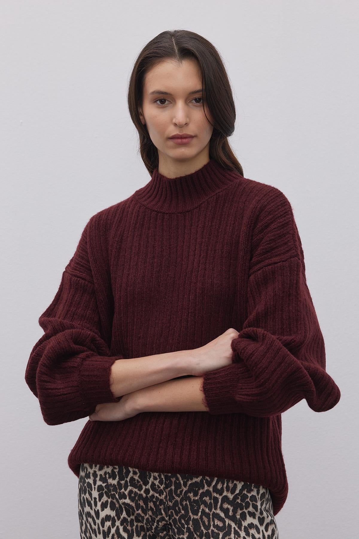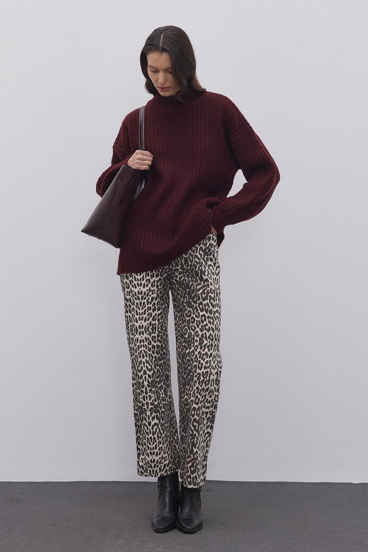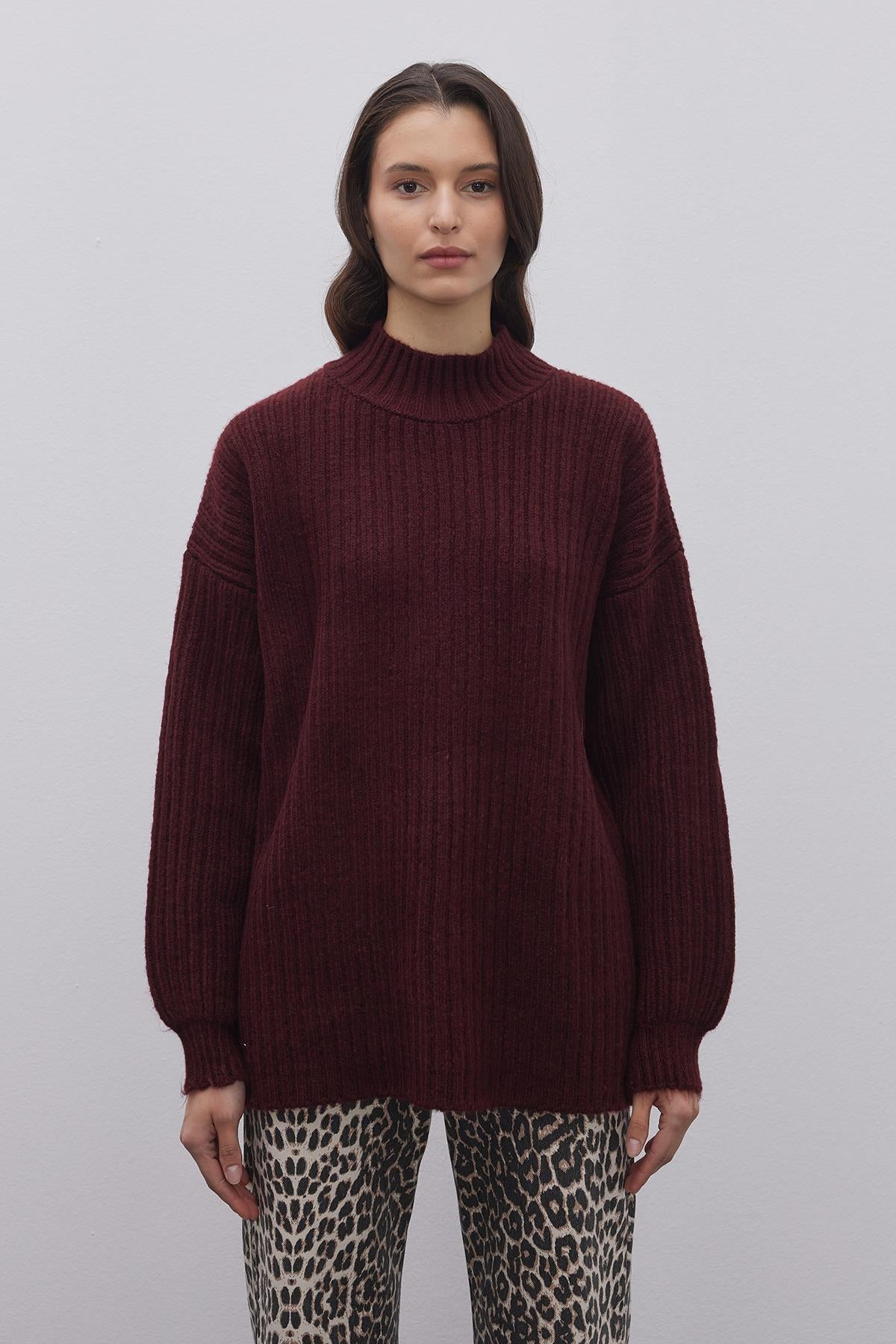 Çizgi Dokuma Basic Kazak Bordo