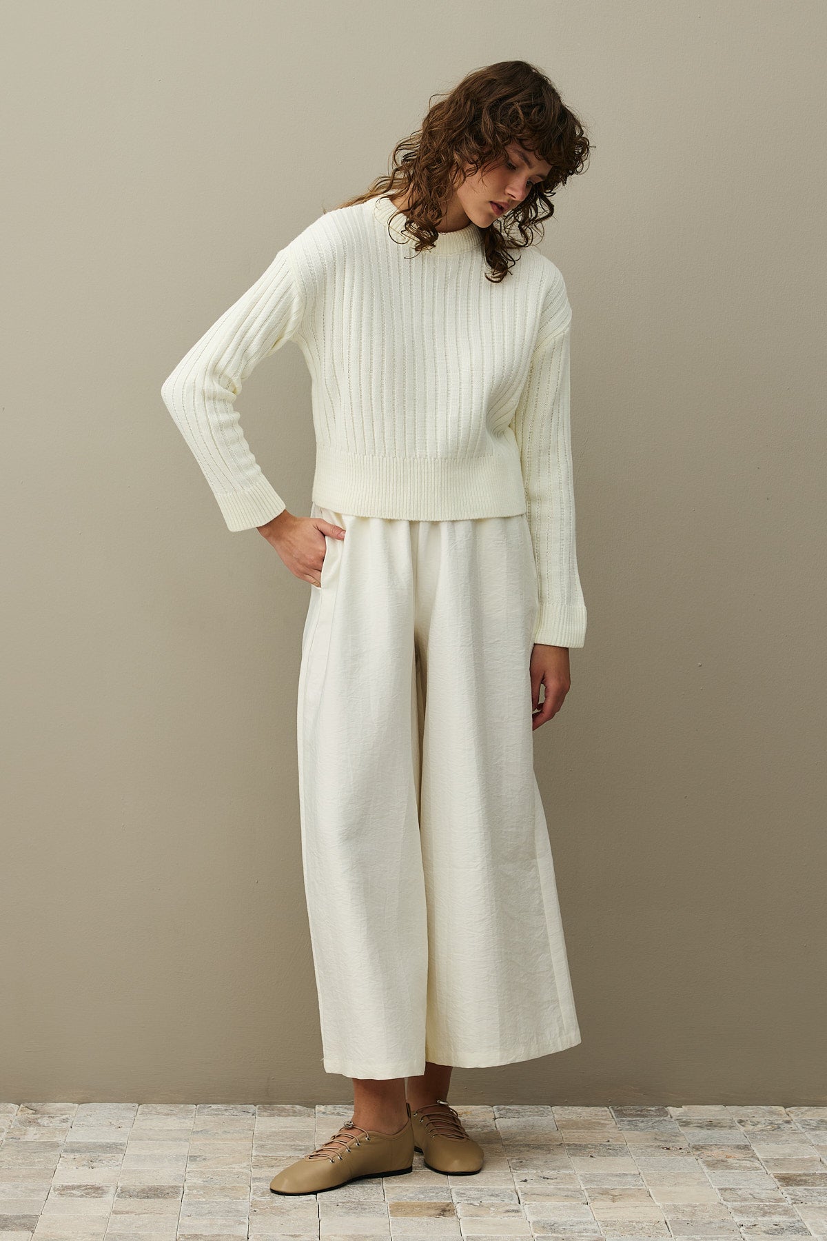 Culotte Kesim Pamuk Pantolon Ekru - Fahhar Design