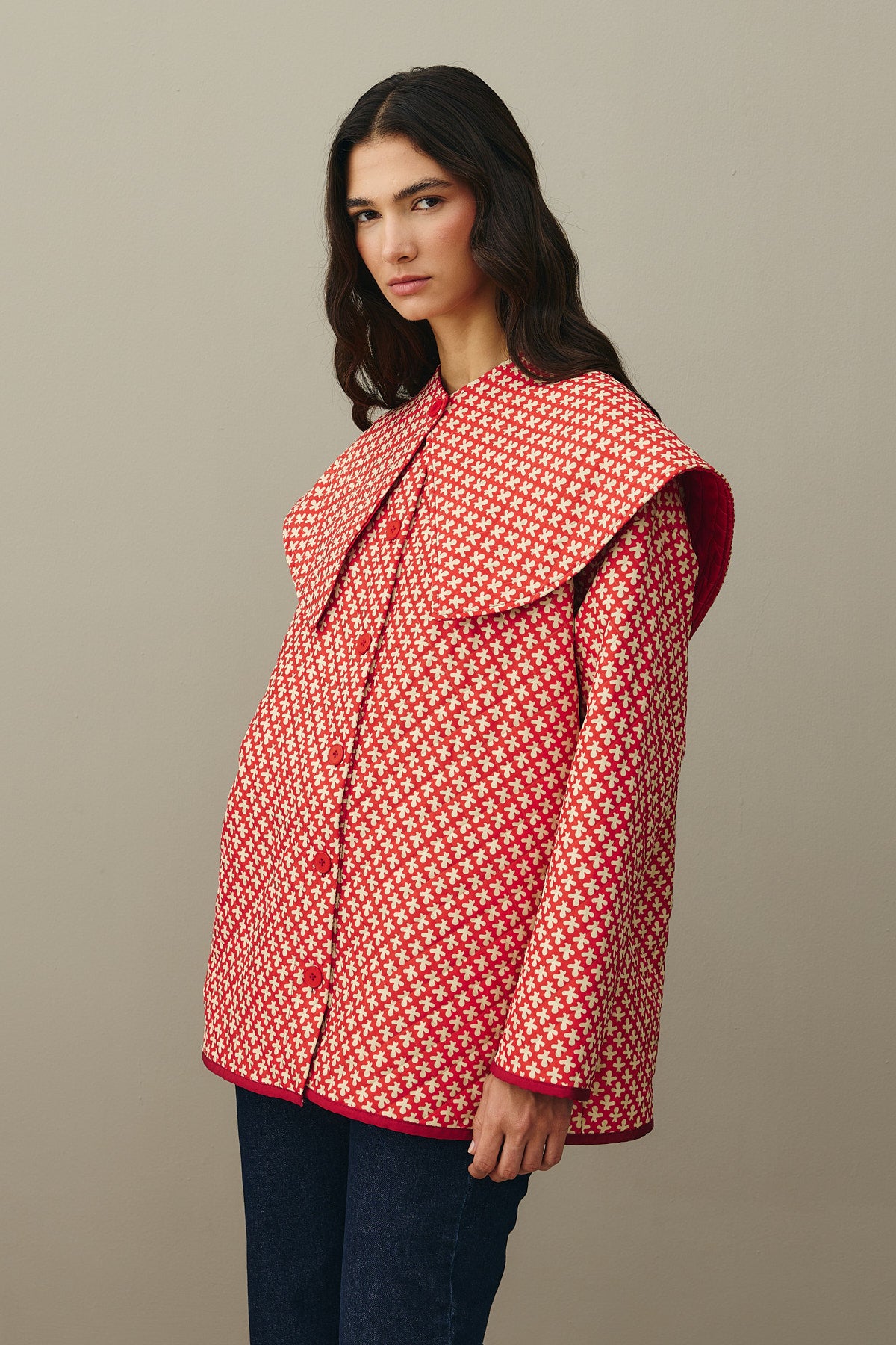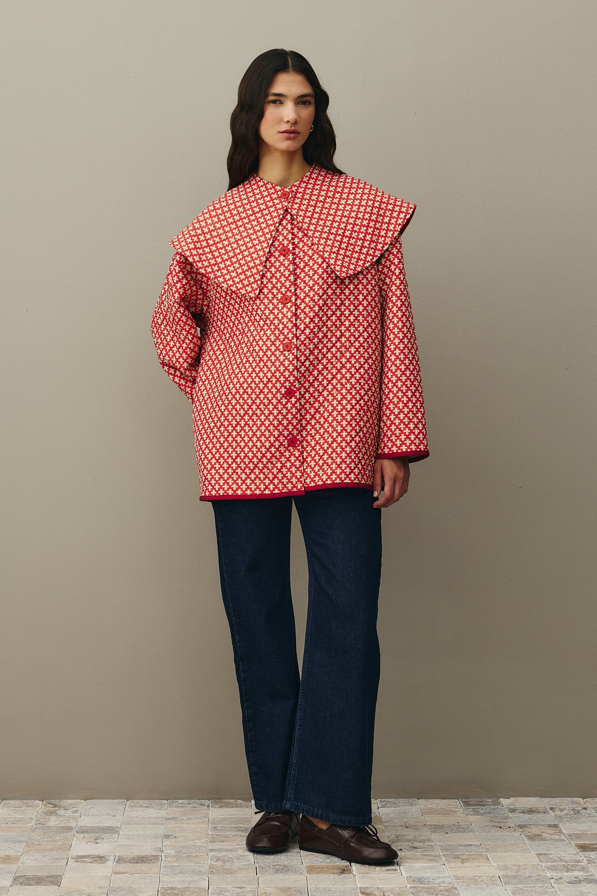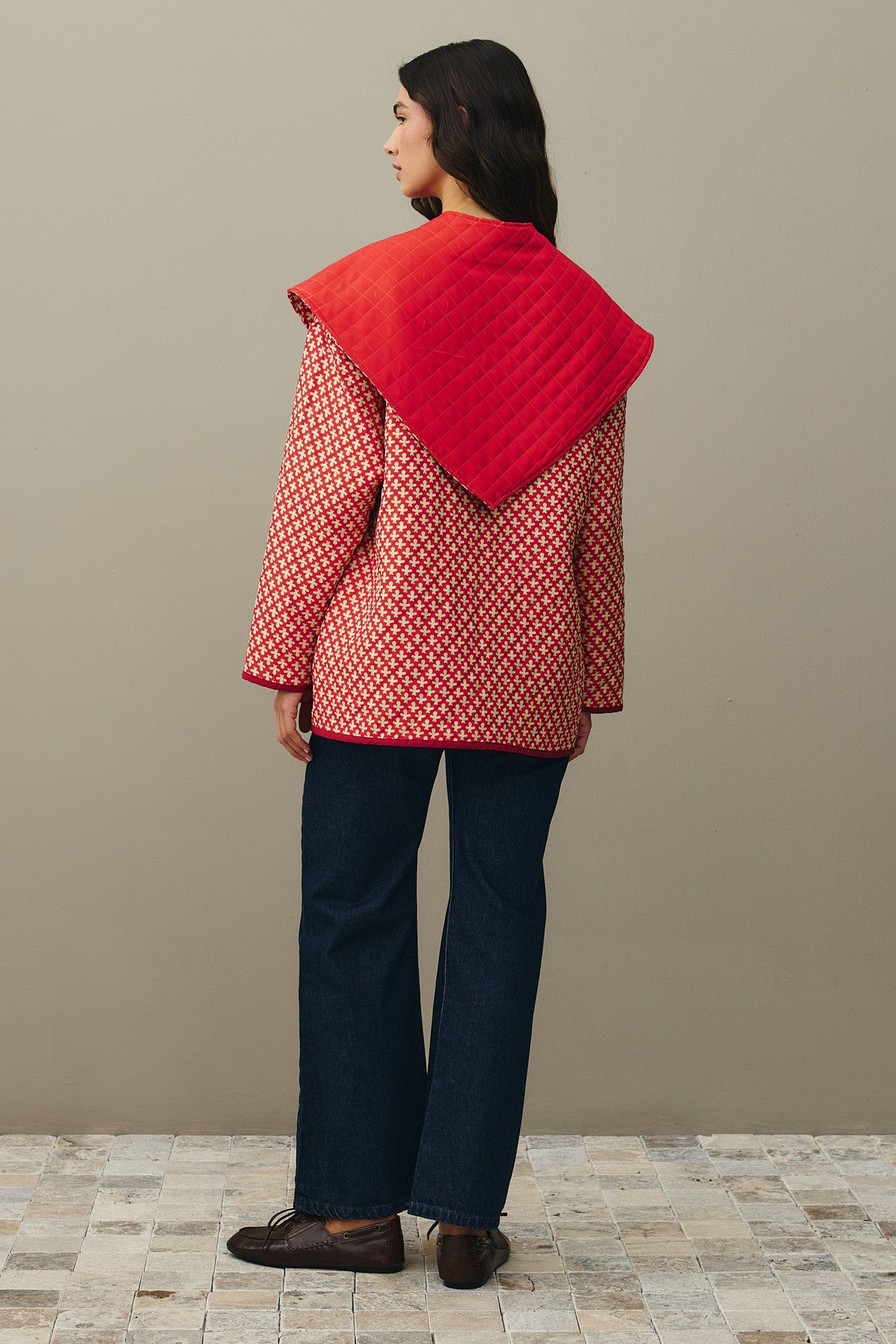 Seyyar Yakalı Desenli Kapitone Ceket Kırmızı