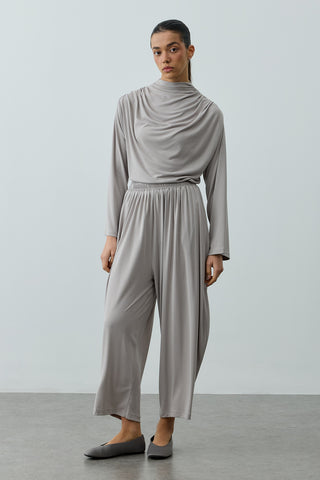 Bol Büzgülü Modal Pantolon Açık Gri