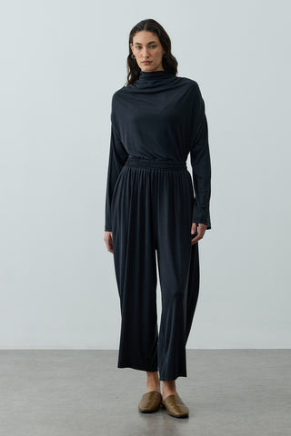 Bol Büzgülü Modal Pantolon Siyah