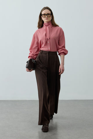 Geniş Pileli Palazzo Pantolon Kahverengi