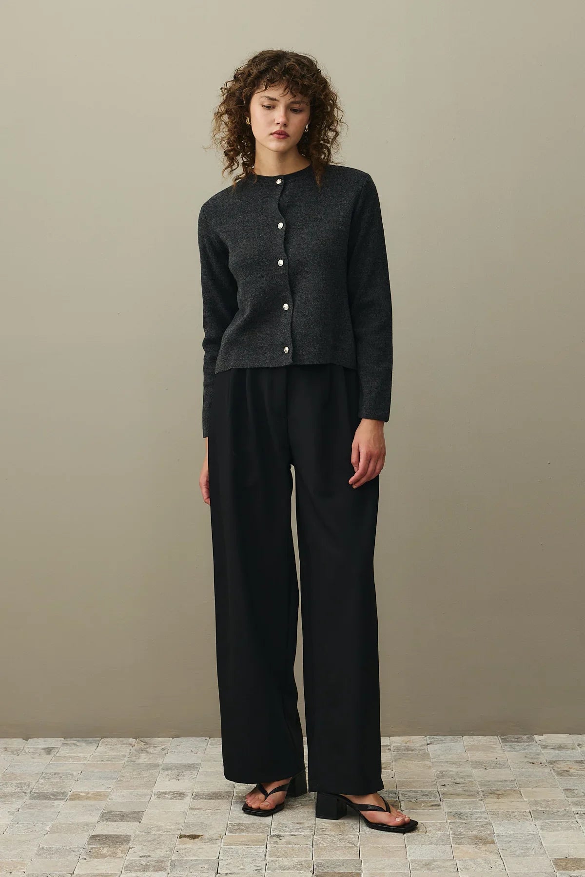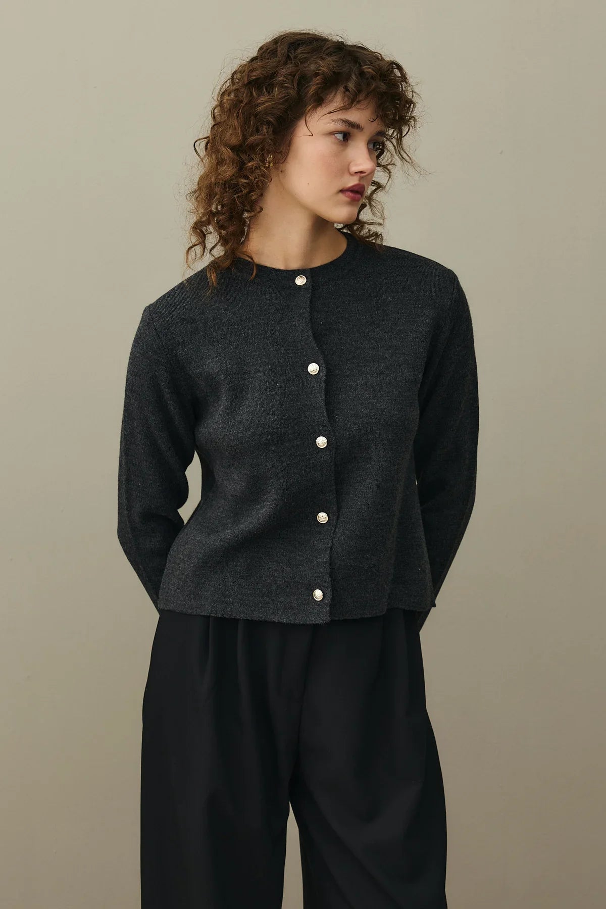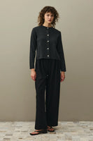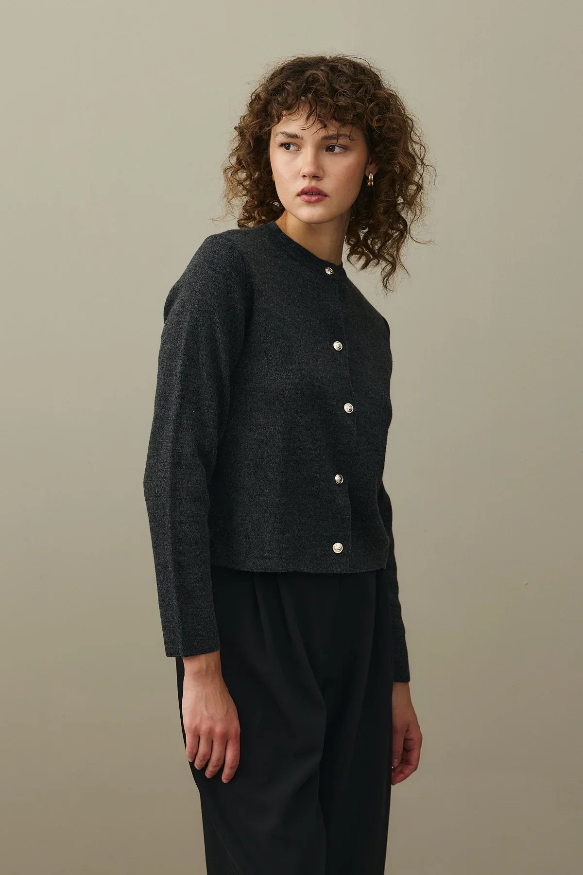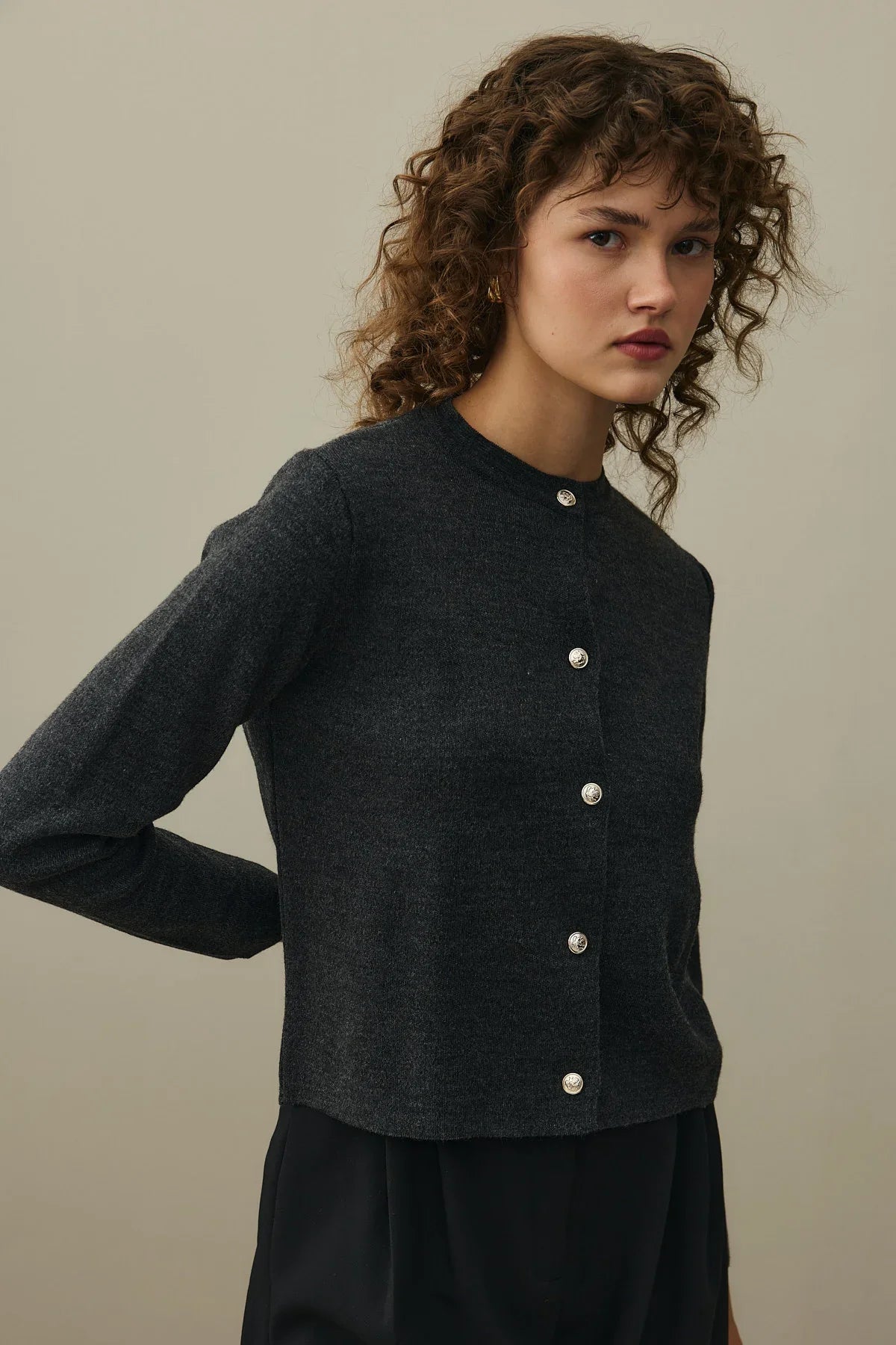 Sık örgü triko, bisiklet yaka, gold binici düğmeli crop hırka. STANDART Beden Uzunluk: 53 cm, Göğüs: 50 cm, Bel: 48 cm, Kol Uzunluğu: 58 cm, İki Omuz Arası Mesafe: 39 cm