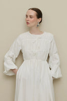 Büzgü Detaylı Biye Bağlı Elbise Ekru