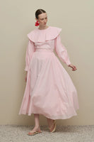 %100 pamuk sık dokuma vual kumaştan, geniş yakalı, sırtı fermuar kapamalı, astarlı, uzun kollu üst ve yanları büzgü detaylı, fermuar kapamalı, astarlı, maxi boy etek takım. 1(36-38)BEDEN ÜST Uzunluk:54 cm , Kol Uzunluğu:56 cm , İki Omuz Arası Mesafe: 40 cm , Göğüs:50 cm. ETEK Uzunluk:93 cm , Normal Bel: 34 cm , Elle Açılmış Bel:42 cm , Basen:70 cm. 2(40-42)BEDEN ÜST Uzunluk: 54 cm , Kol Uzunluğu: 58 cm , İki Omuz Arası Mesafe:42 cm , Göğüs: 52 cm . ETEK Uzunluk: 94 cm , Normal Bel:35 cm , Elle Açılmış Bel:44 cm, Basen:72 cm.