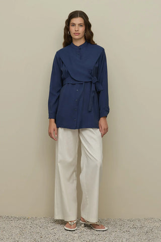 Bağlama Detaylı Tensel Gömlek Lacivert