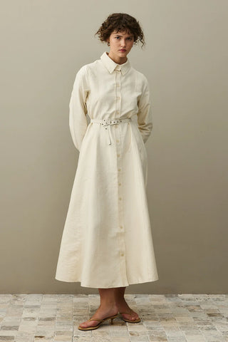 Biye Detaylı Keten Elbise Naturel