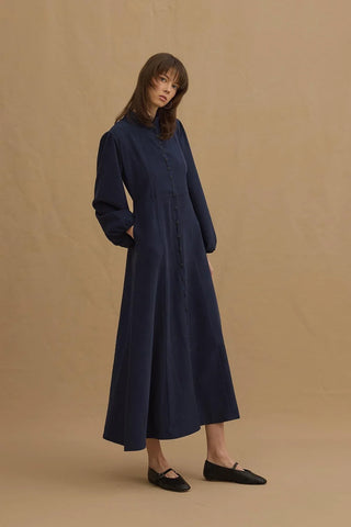 Taşlanmış Modal Britli Elbise Lacivert