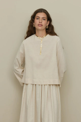 Uzun Kollu Basic Keten Üst Naturel