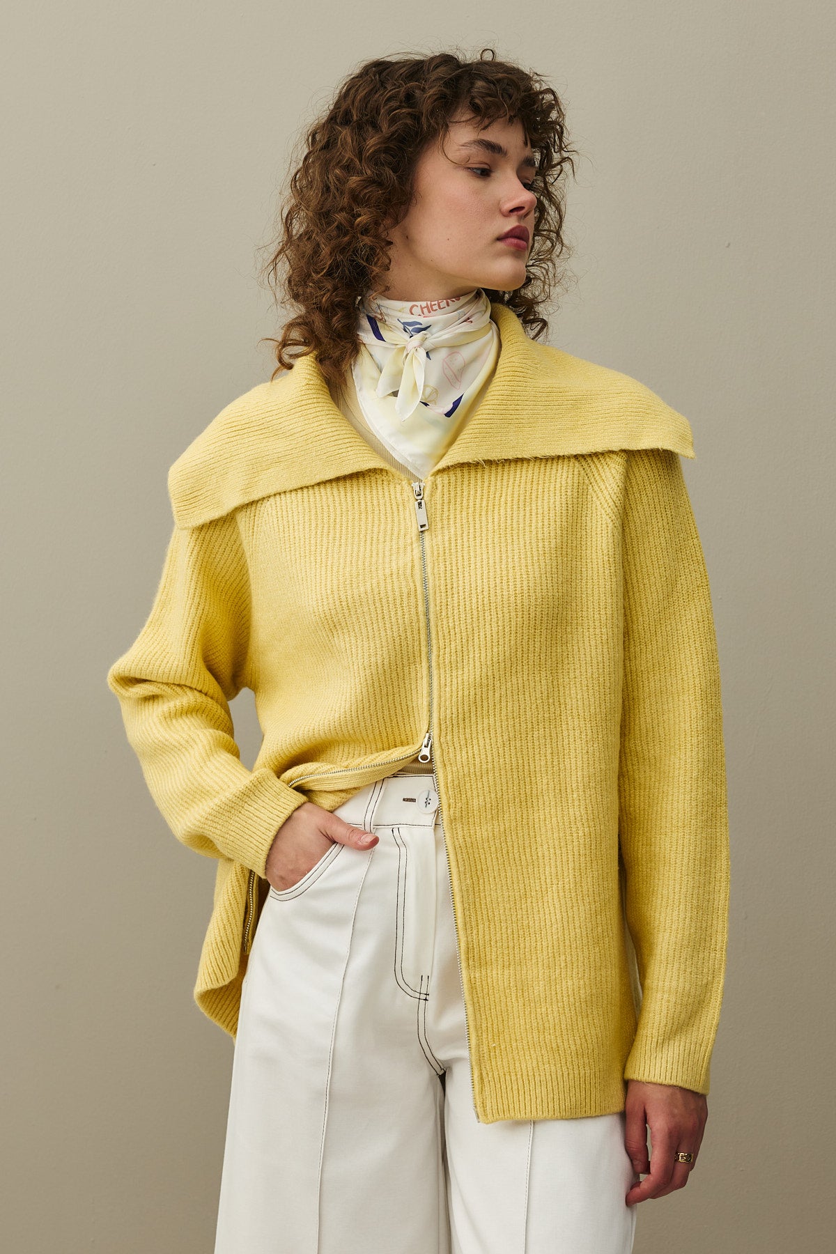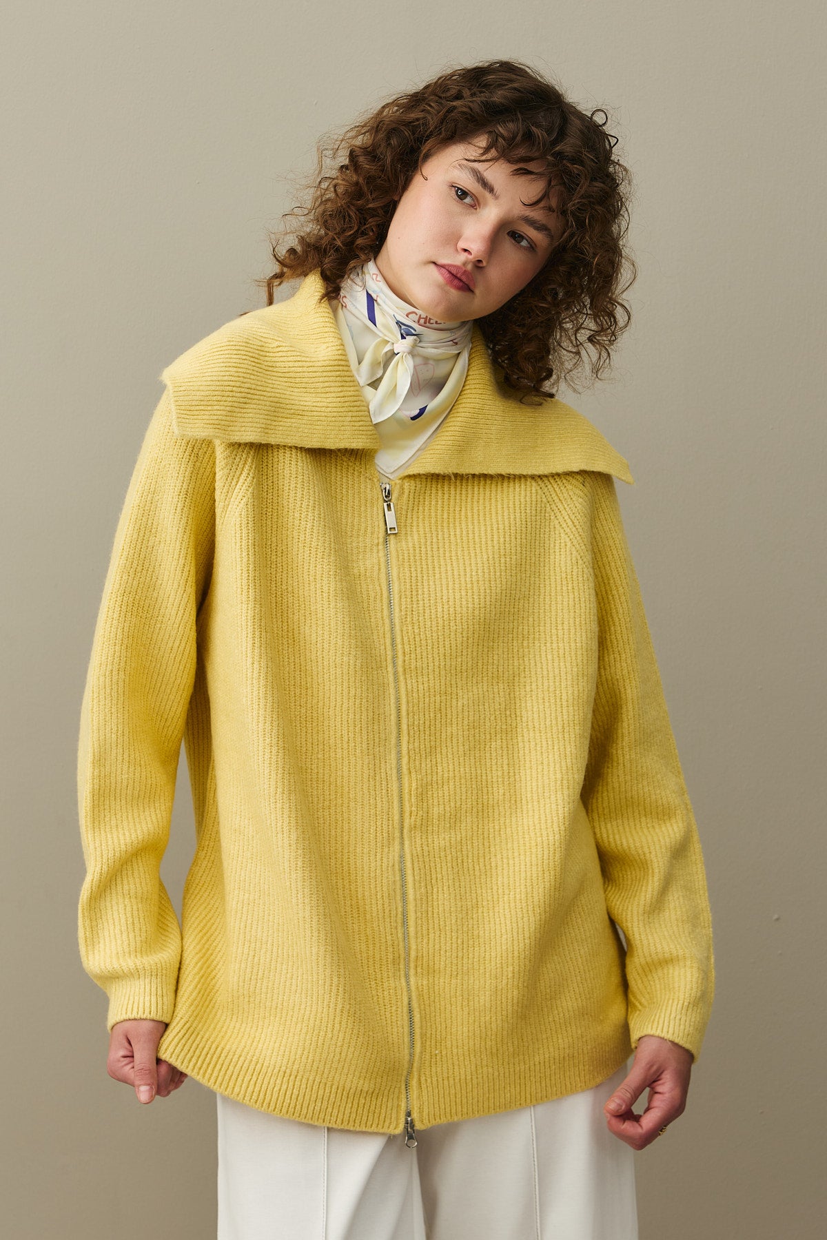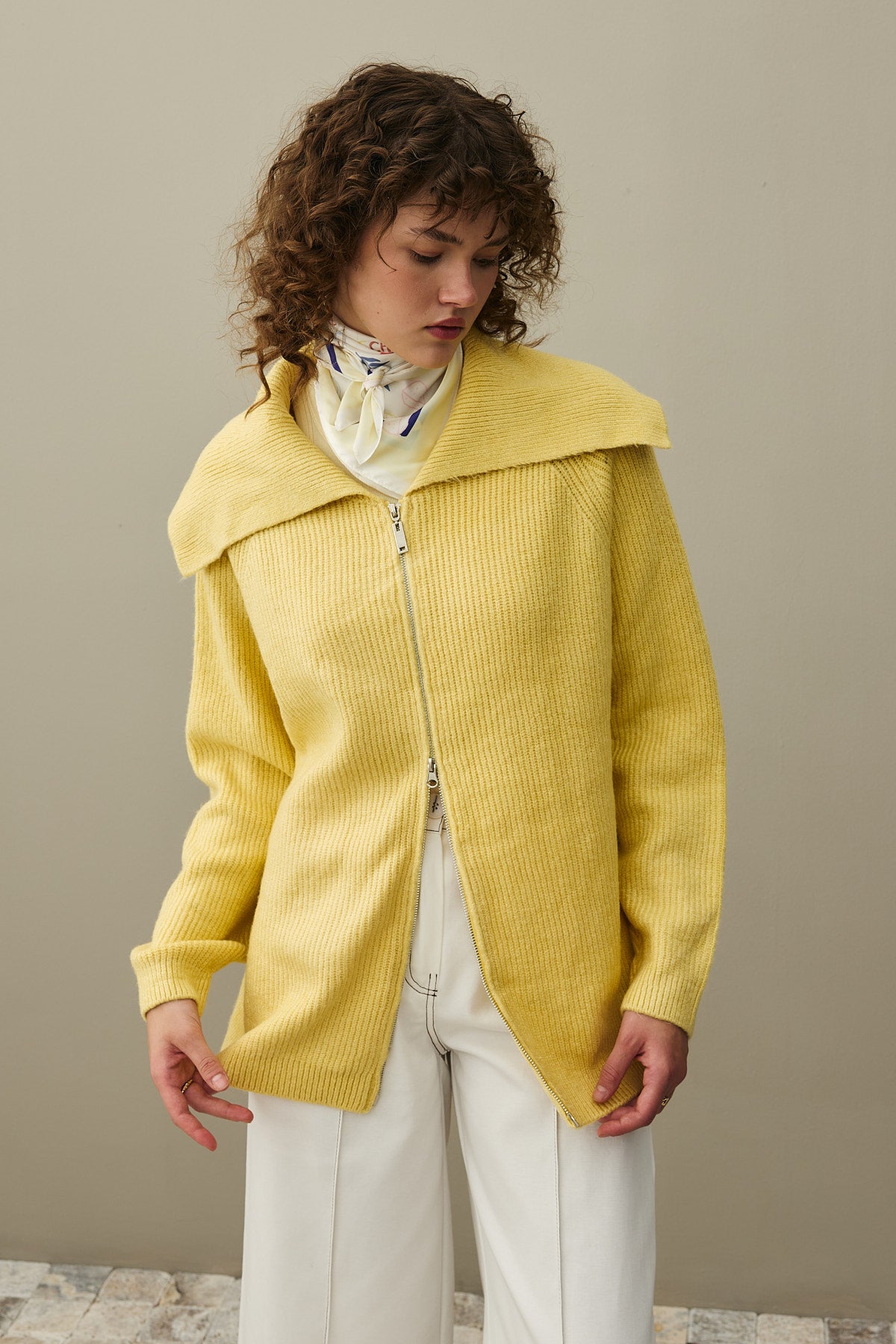 Fermuar Detaylı Hırka Sarı