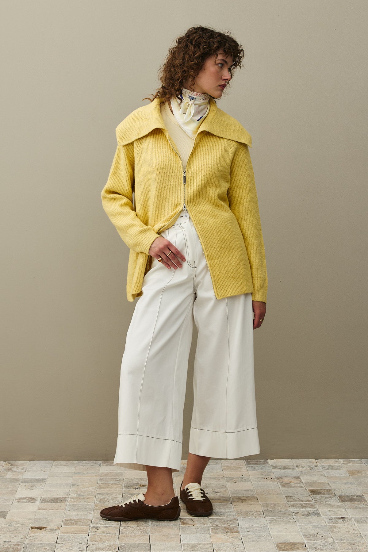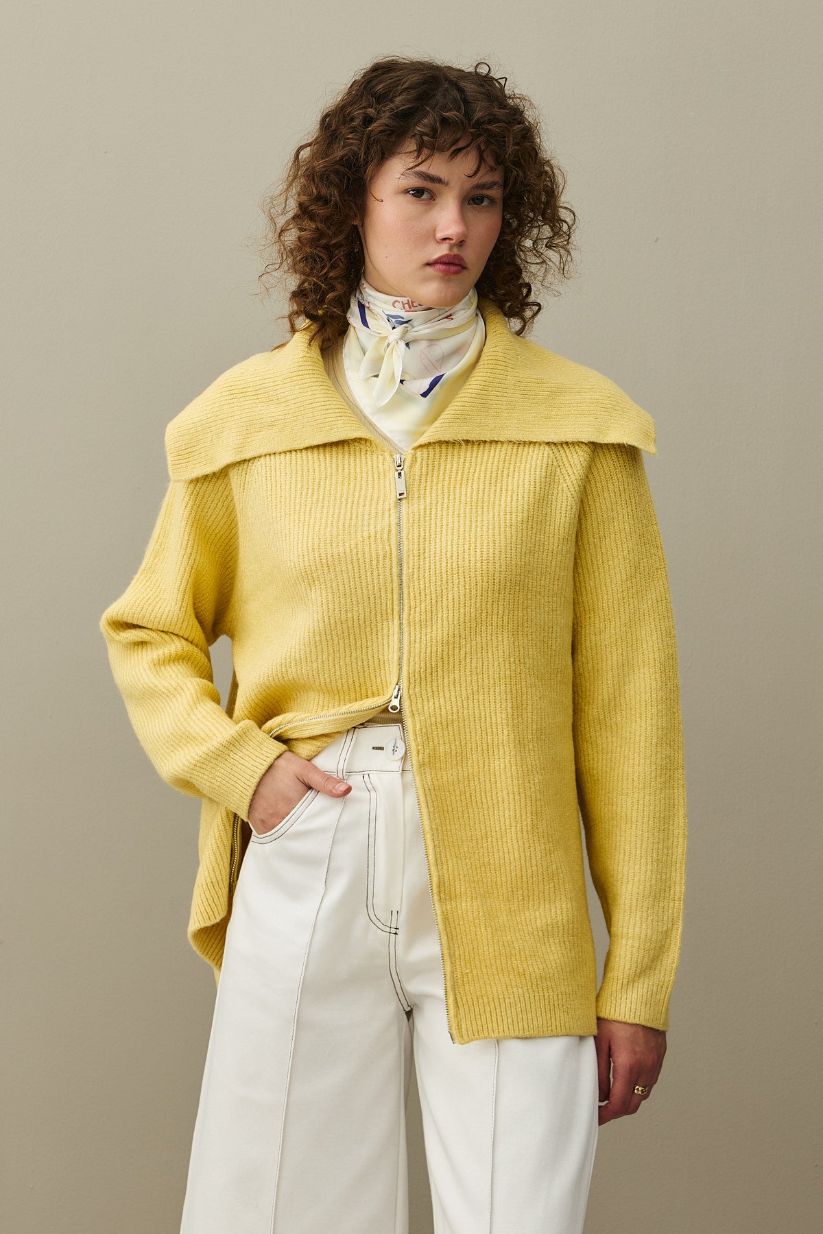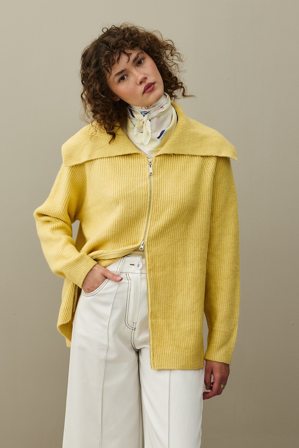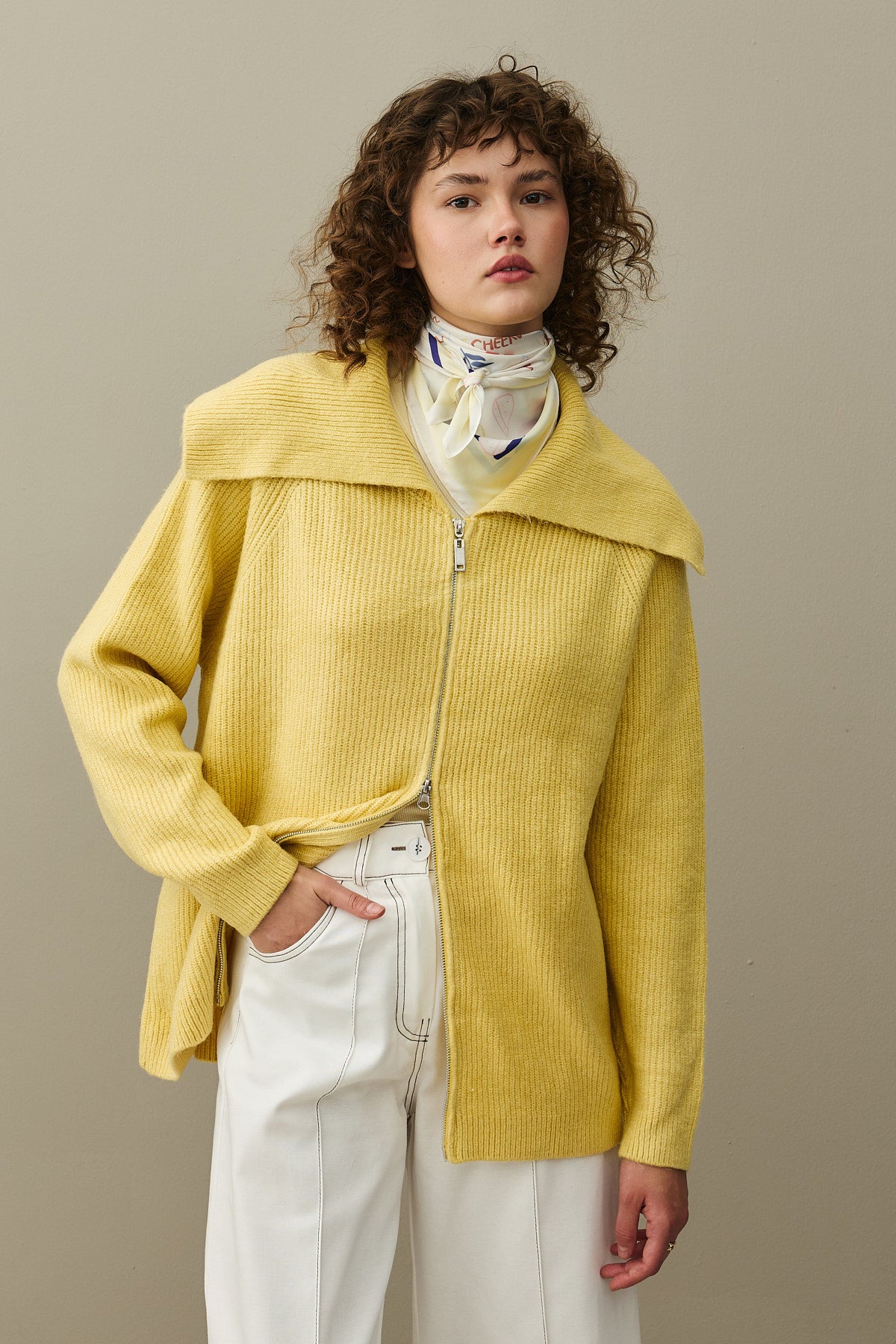 Fermuar Detaylı Hırka Sarı