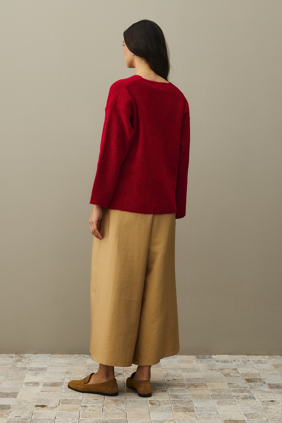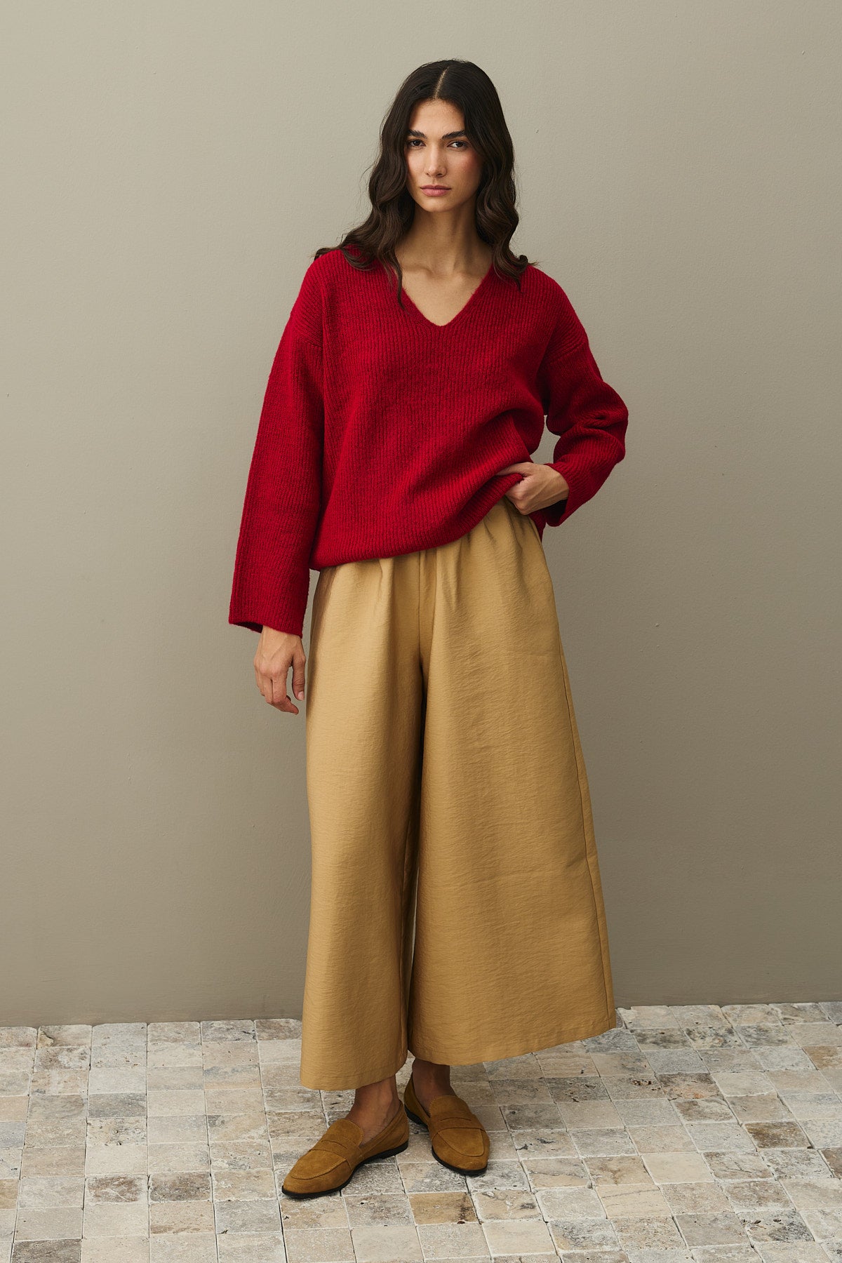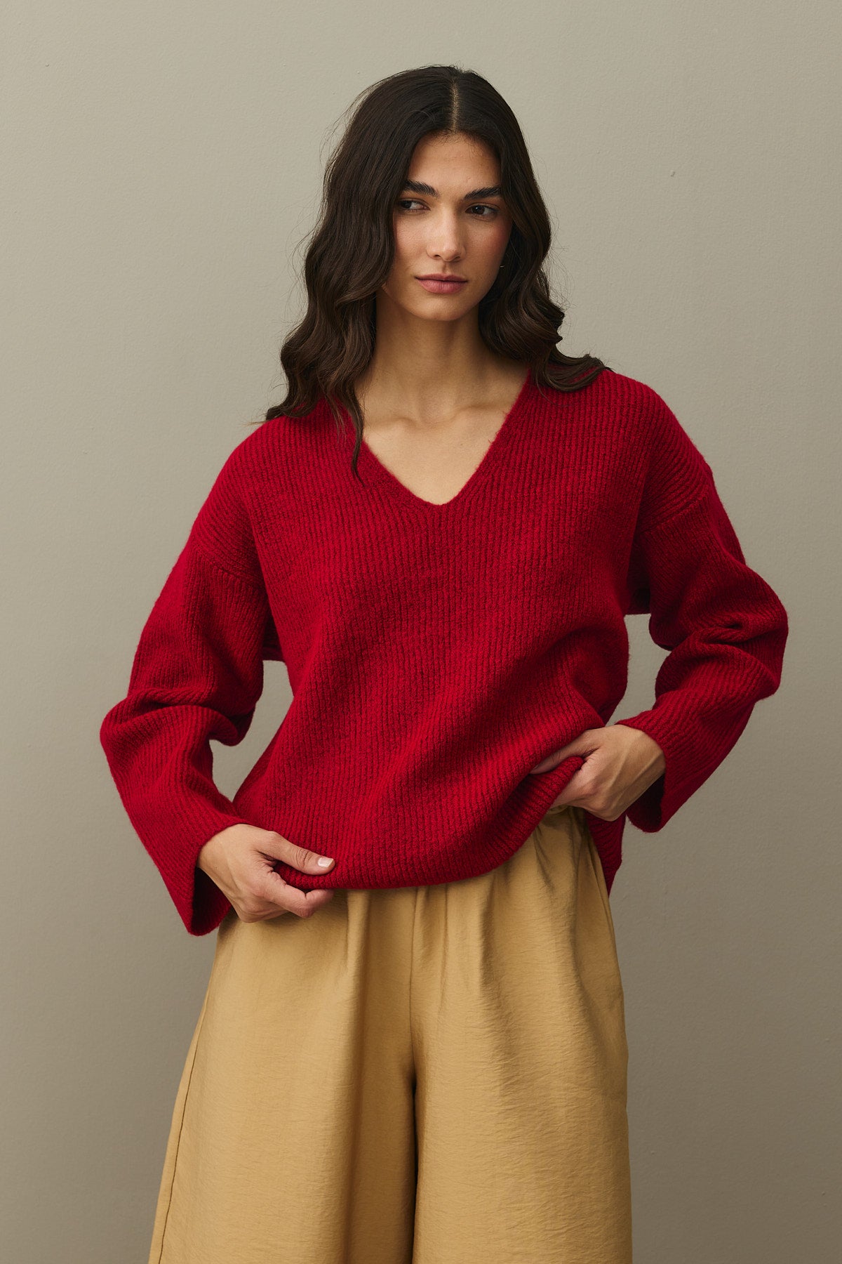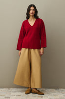 V Yaka Basic Triko Kazak Kırmızı