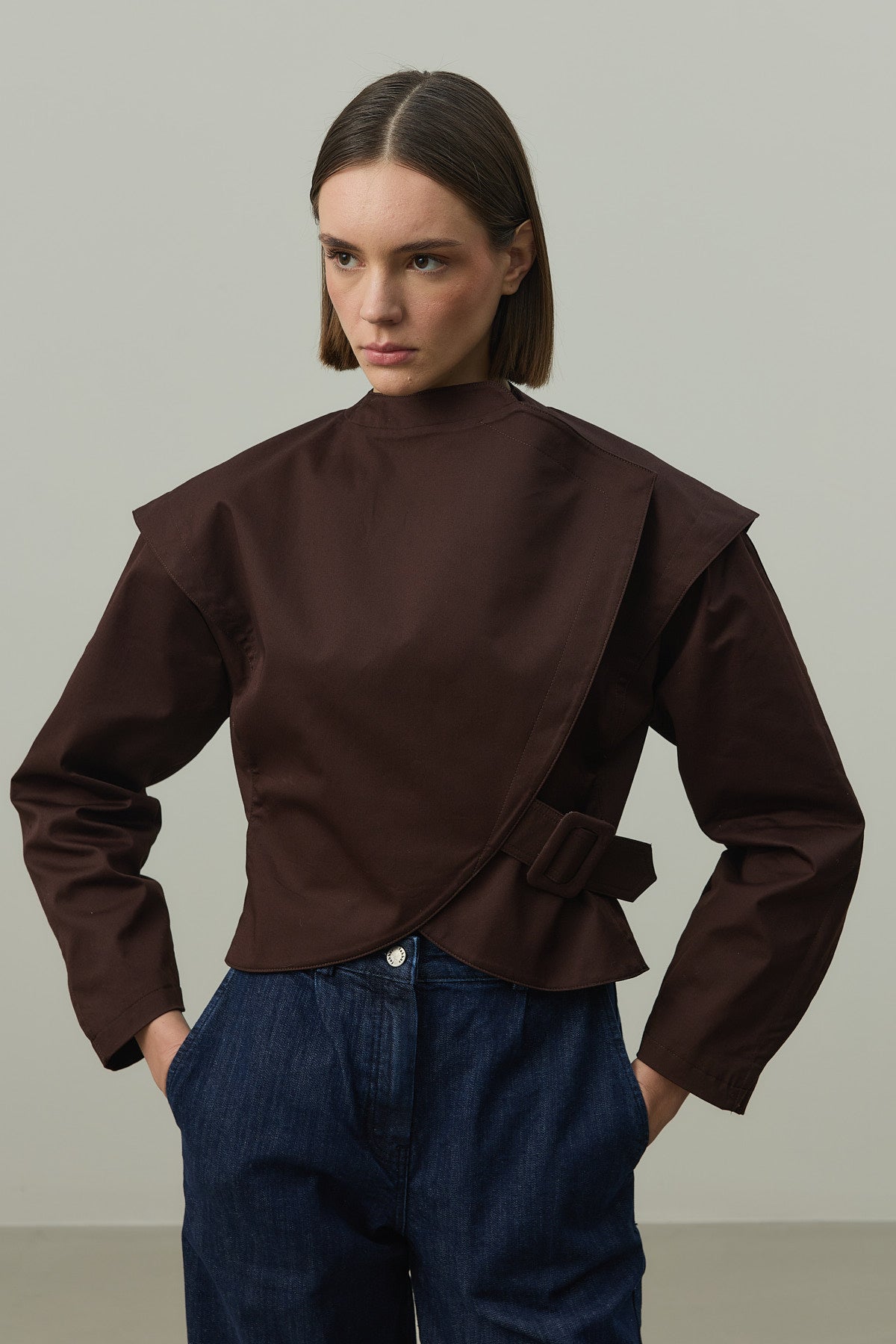 Omuz Detaylı Ceket Kahverengi