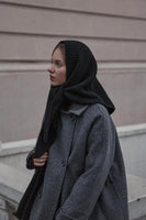 Triangular shaped Selanik knit scarf made of mohair blend yarn.