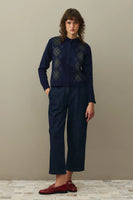 Diamond Patterned Cardigan Navy Blue