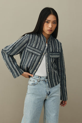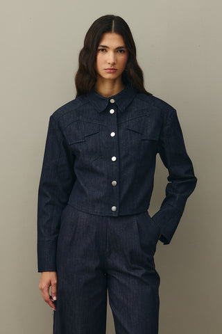 Asymmetrical Stitched Denim Jacket Navy Blue