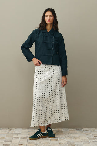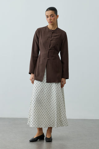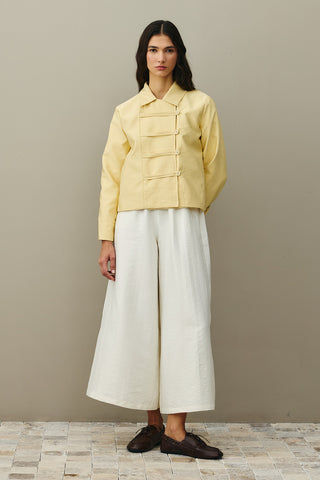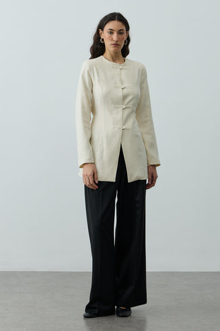 Düz yakalı veya kısa kruvaze kesimli keten ceket modelleri, özellikle elbiseler ya da yüksek bel pantolonlarla uyum içinde kombinlenebilir. Yazlık eteklerle ya da oversize gömleklerle birlikte kullanıldığında ise katmanlı şıklığın en sade hali yakalanır. Doğal tonları ve minimalist dikiş detayları ile öne çıkan bu ceketler, uzun ömürlü ve zamansız bir giyim anlayışını destekler.