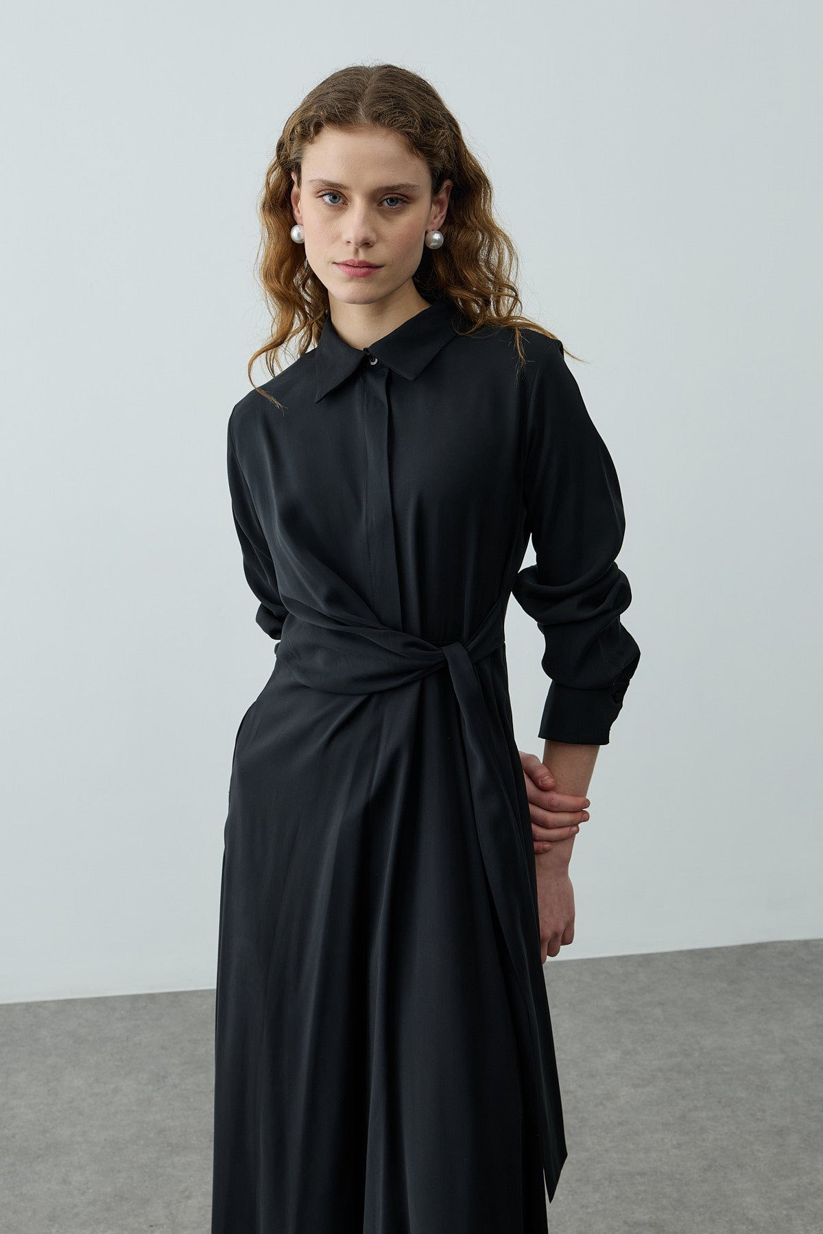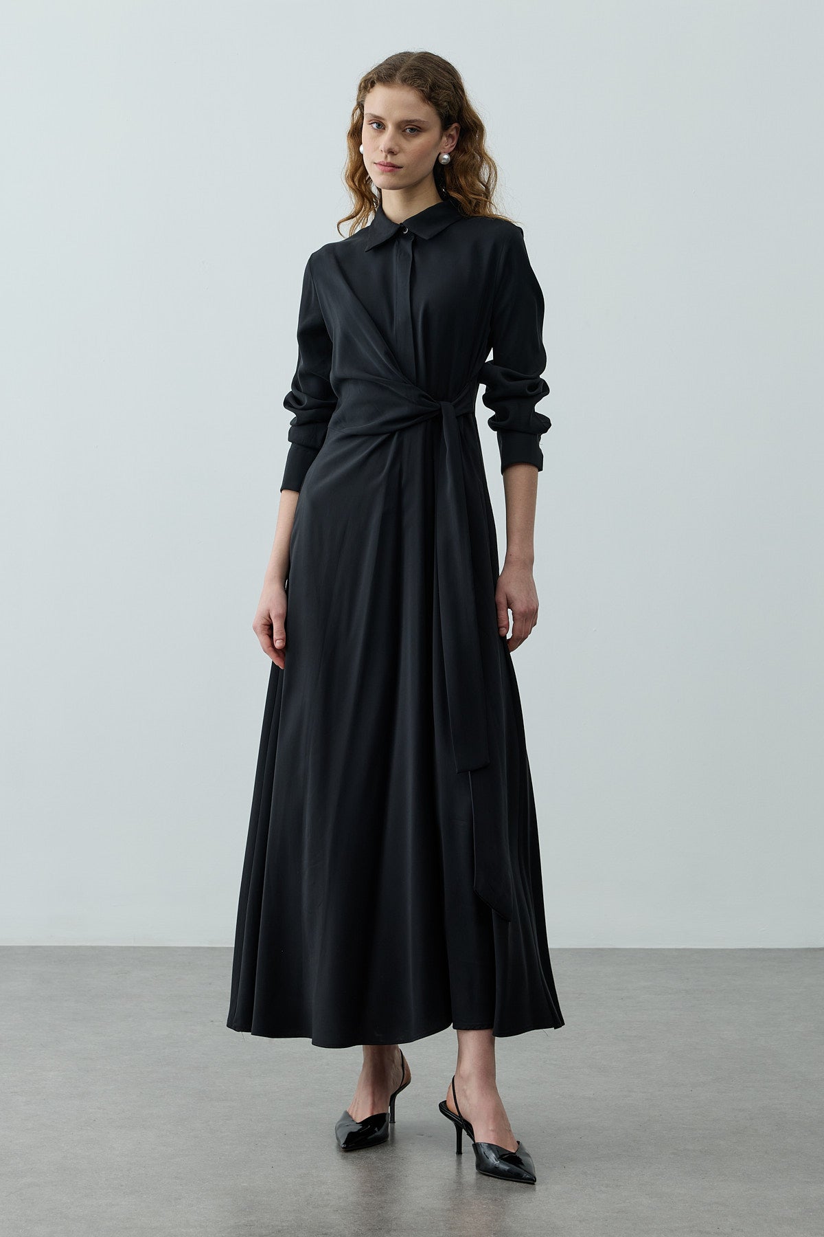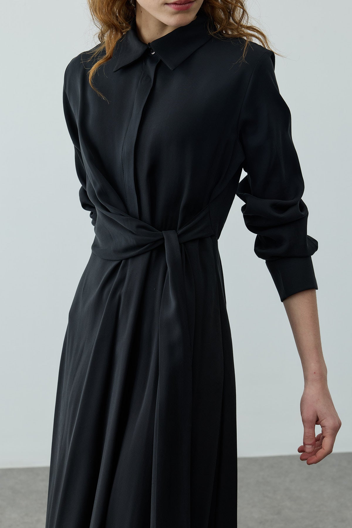Kruvaze Bağlamalı Elbise Siyah