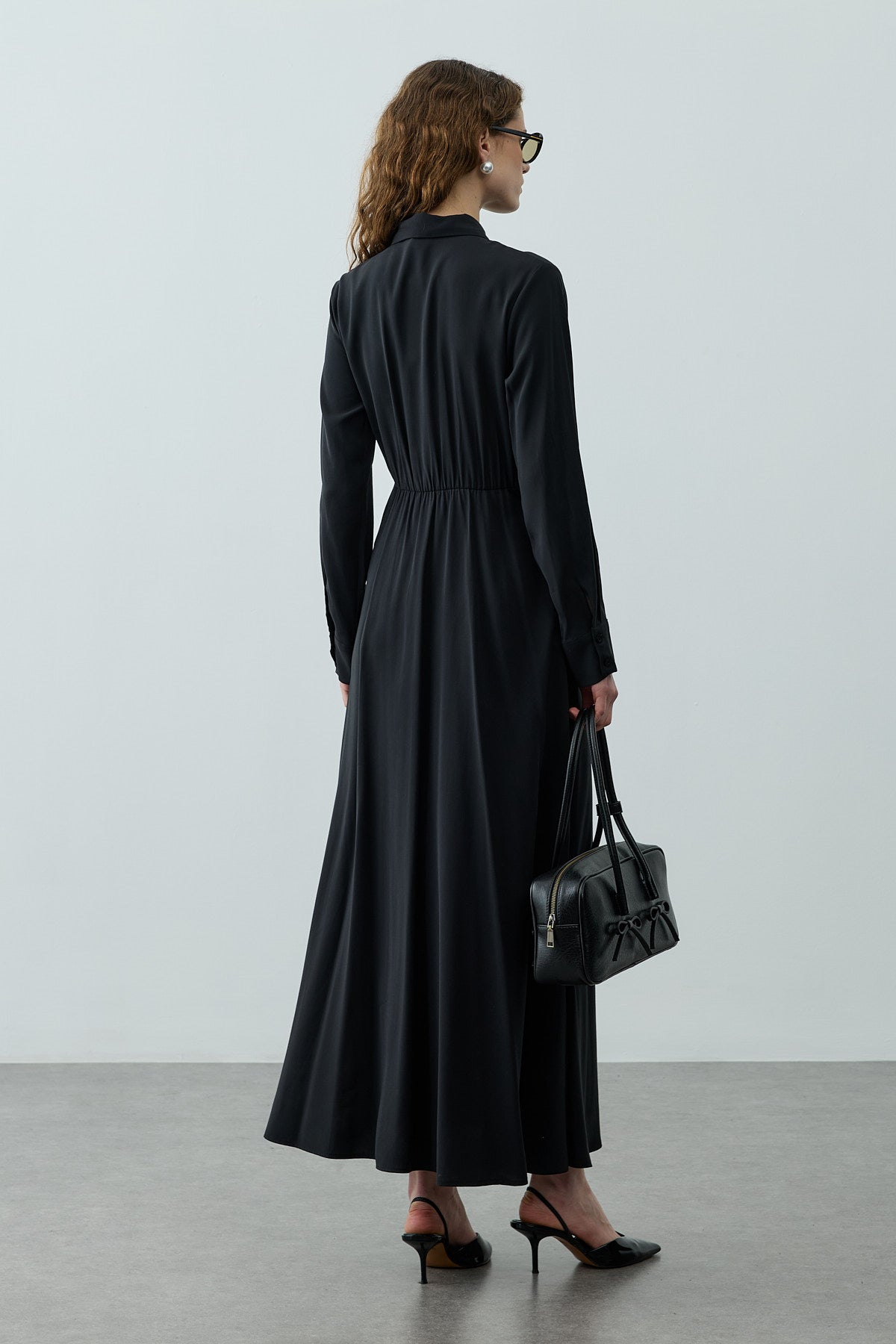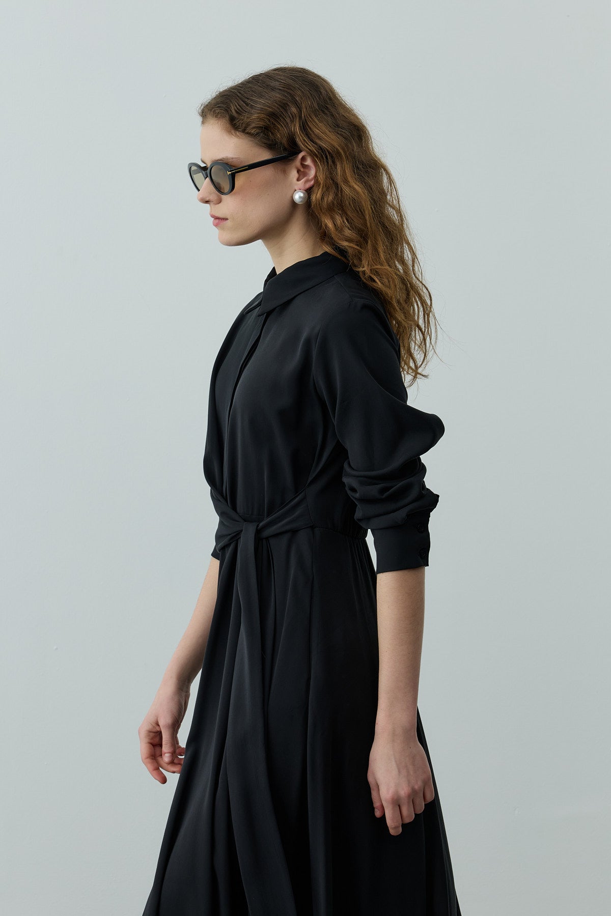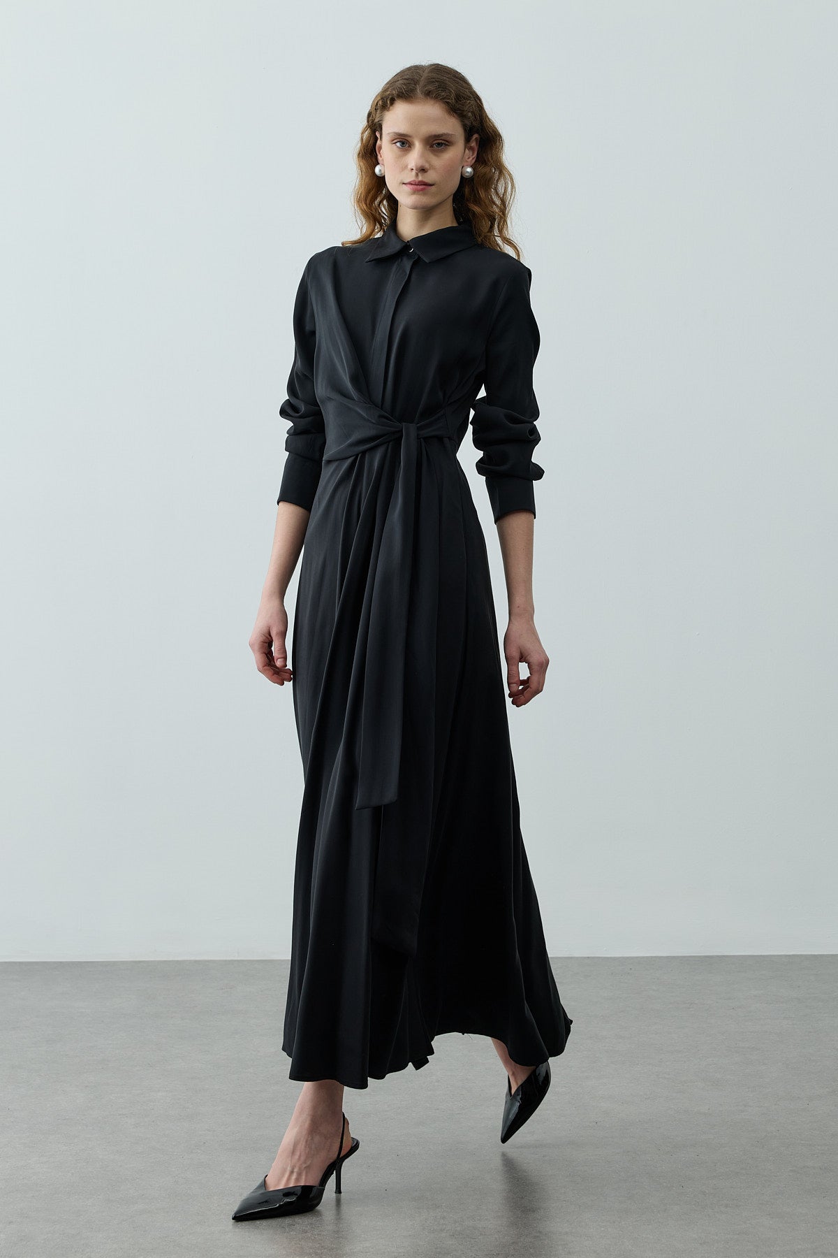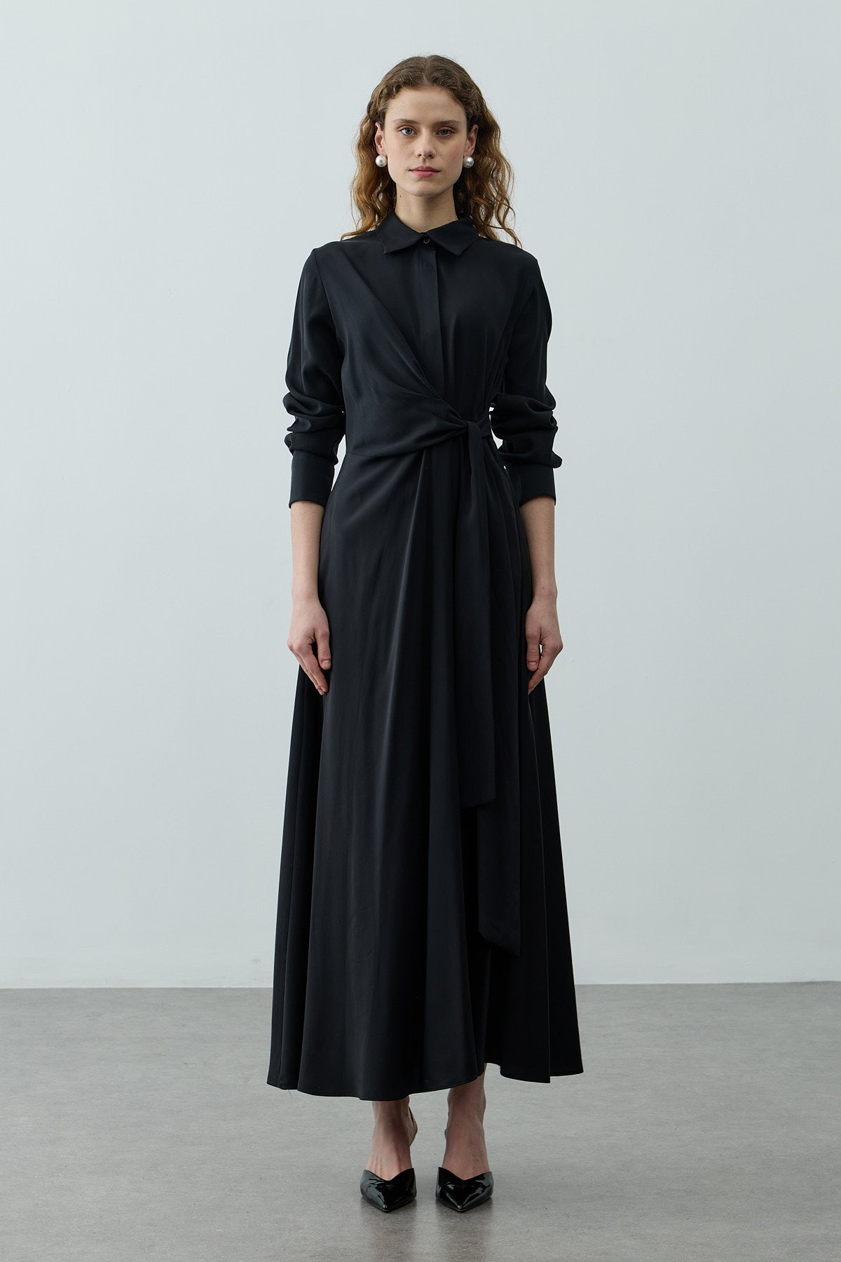 Kruvaze Bağlamalı Elbise Siyah